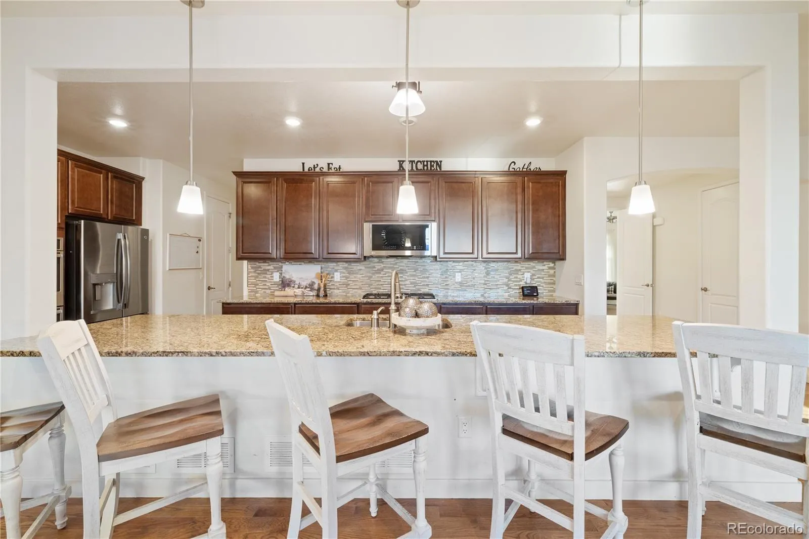 Beautiful 6-bedroom home in Lewis Pointe! Features a spacious kitchen with island, double ovens, and stainless appliances. Open layout with hardwood floors, gas fireplace, and access to a landscaped backyard with covered deck. Upstairs includes a loft, laundry, and generous primary suite with 5-piece bath. Main level includes a private suite with kitchenette—ideal for guests or office. Full unfinished basement for extra space or future expansion.