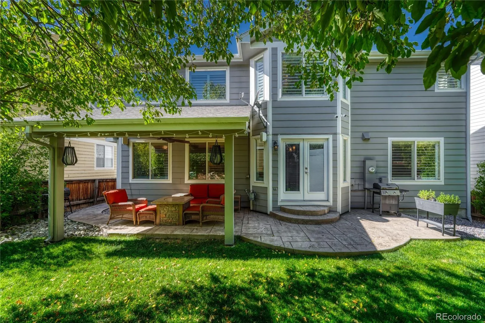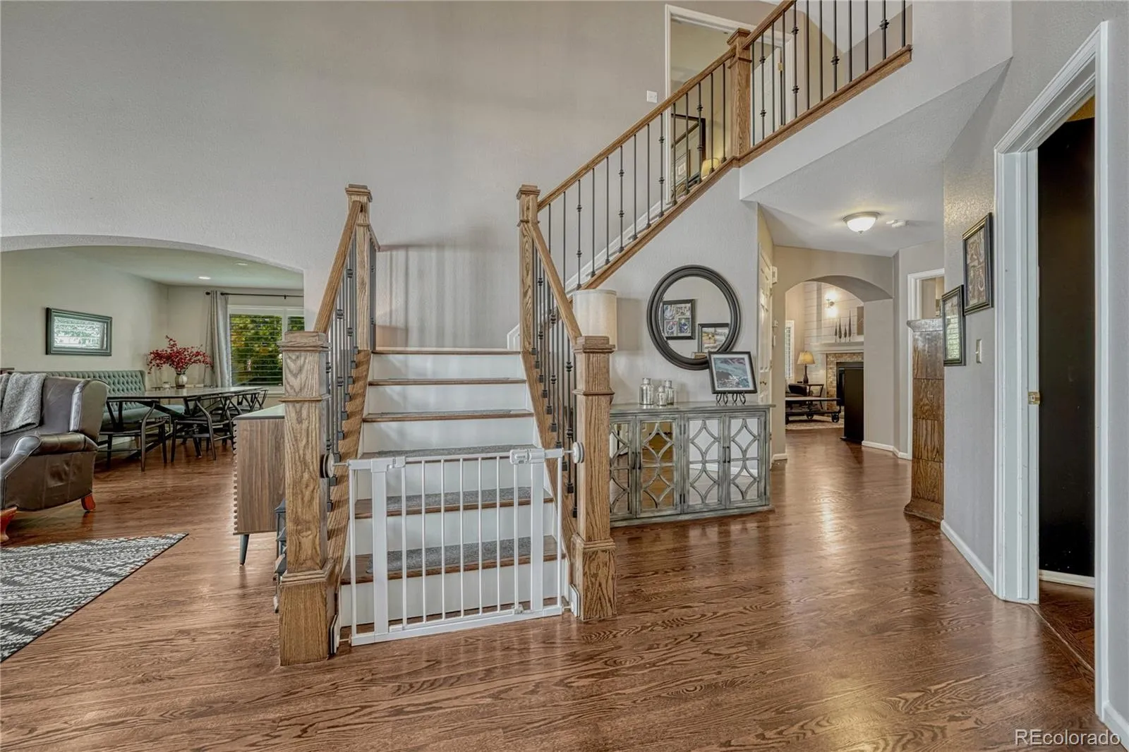 Welcome to this spacious 6-bedroom, 5-bathroom home in the desirable Indigo Hill neighborhood of Highlands Ranch. With a 3-car garage, finished basement, and a host of thoughtful updates, this home offers both everyday comfort and space to entertain. The tastefully remodeled kitchen features an oversized island, quality cabinetry, and plenty of room to cook and gather. The dining room is highlighted by a built-in bar and beverage cooler, while plantation shutters and hardwood floors accent the main levels with timeless style.