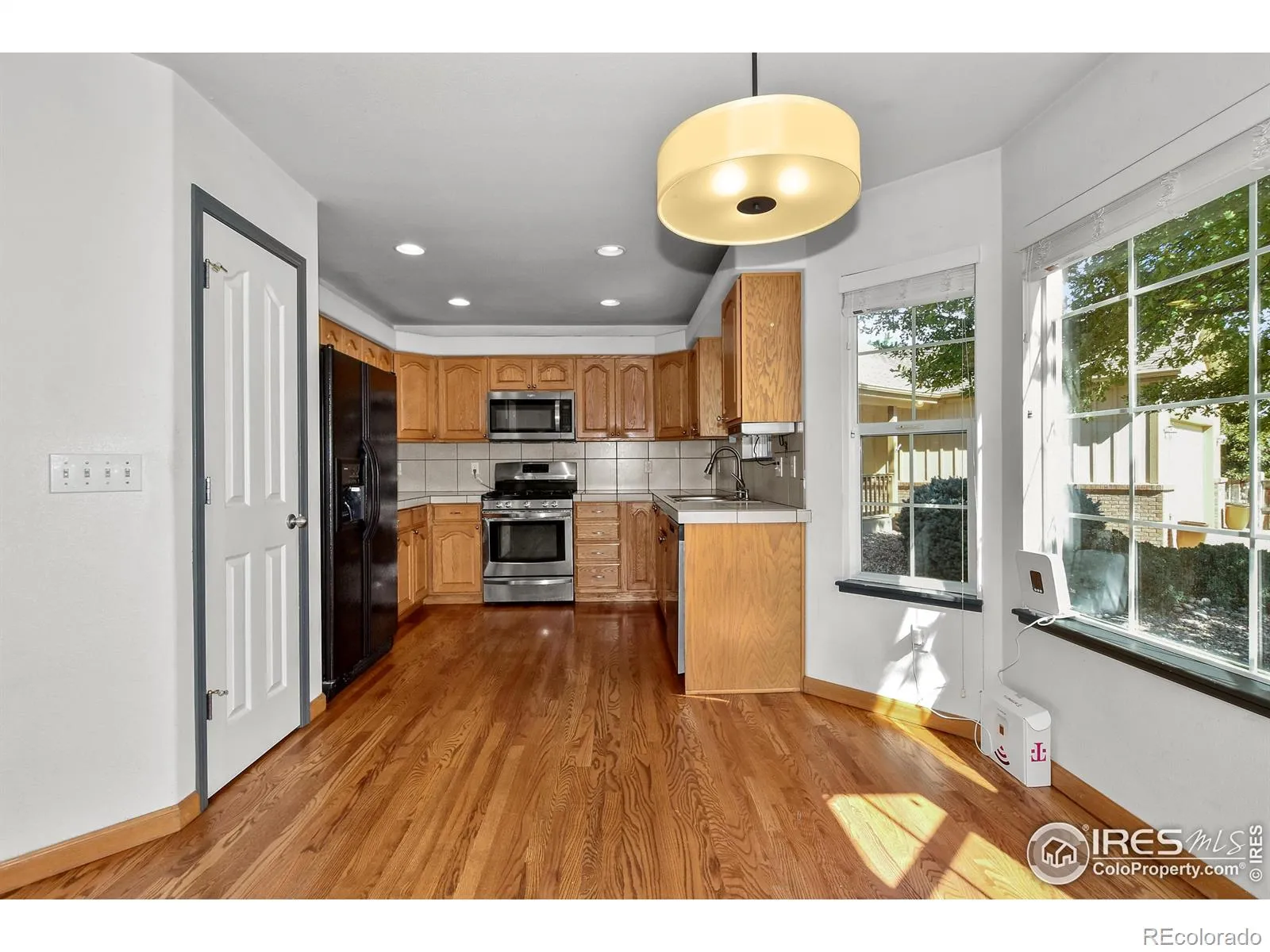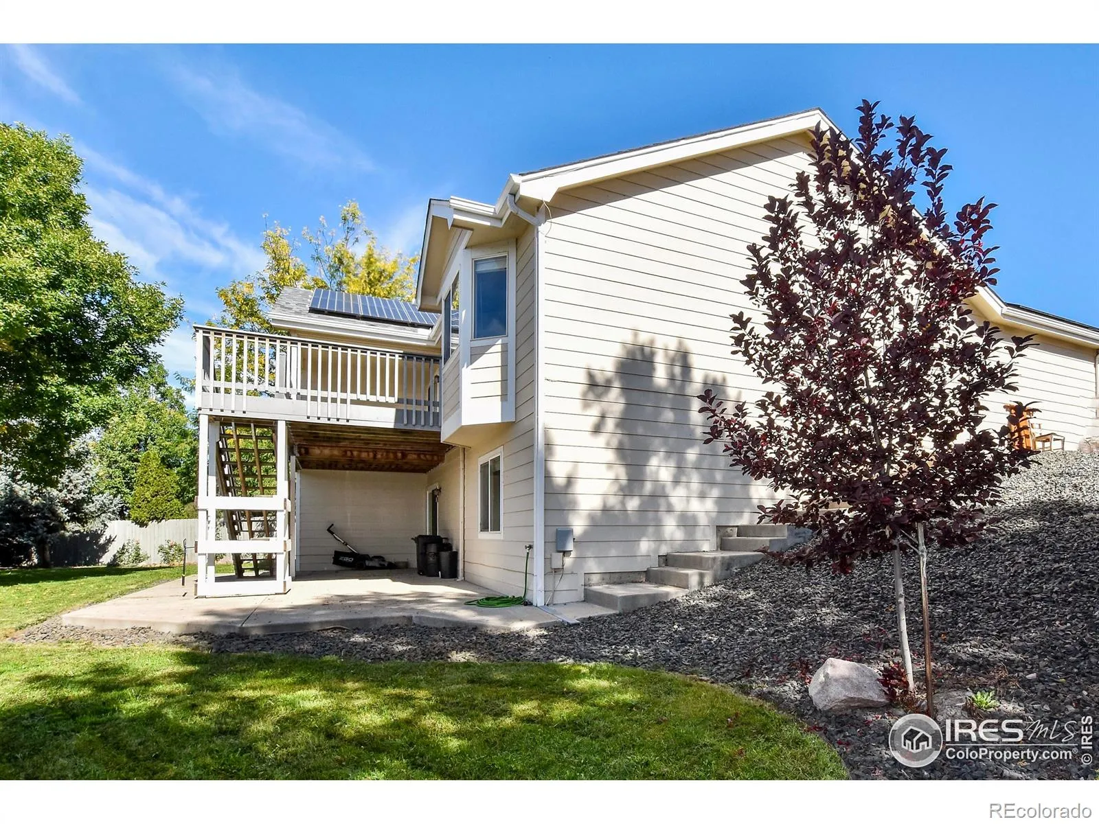 Fantastic Timber Ridge ranch w/finished walk-out bsmt! 5 bed, 3 bth, hardwood floor through kitchen, living & dining. Vaulted ceiling & gas fireplace make the living room an inviting space. Basement has large versatile rec space. Back yard is very private surrounded by mature trees. Partially covered multi-level deck & lower patio create nice outdoor living spaces. Seller will pay off solar at closing. Swing gate access to yard allows parking for small camper/boat to be hidden by fence
