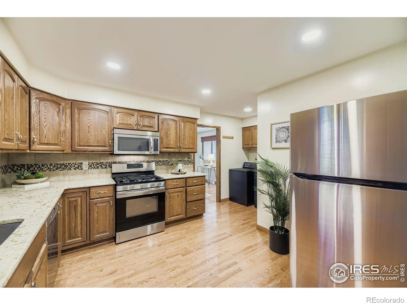 Welcome to this enchanting three-bedroom, two-bathroom ranch home in the coveted Bear Valley West neighborhood. From the moment you step inside, you’ll be captivated by the stunning hardwood floors that flow seamlessly throughout the open and bright layout, creating an inviting atmosphere perfect for daily living and entertaining. The heart of the home features a well-appointed kitchen with premium quartz countertops. The cozy gas fireplace is a natural gathering point, overlooking the backyard deck and opening to the kitchen area. It is ideal for hosting dinner parties or enjoying quiet evenings at home. Adjacent to the kitchen, the formal dining room flows effortlessly into the living room, where abundant windows bathe the space in natural light. Step outside to discover your own private oasis. The beautiful annual and perennial garden provides year-round color and interest, all nestled beneath mature shade trees that offer welcome relief during summer. The water feature and pond add to the tranquil ambiance. The automatic sprinkler system ensures effortless maintenance, allowing you to enjoy this peaceful sanctuary more than working in it. This home offers exceptional value with its fully paid solar panel system, providing significant savings on utility bills for years. The two-car attached garage includes a pre-wired 240-volt outlet, making it ready for your electric vehicle. The extra-large driveway provides ample room for more parking, a play area, or other activities. The basement presents a blank canvas with endless possibilities and ample storage space. Schedule your showing today!