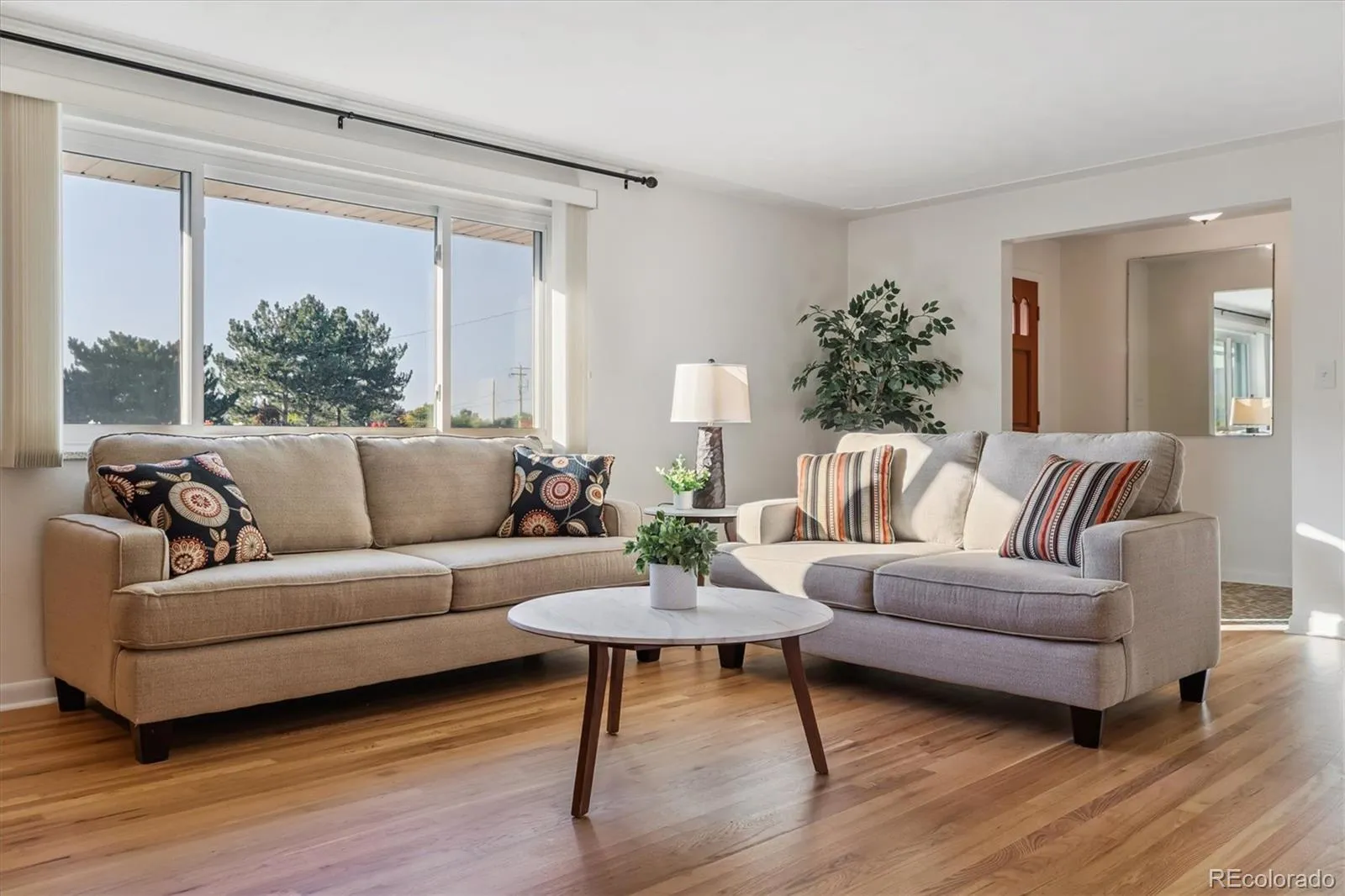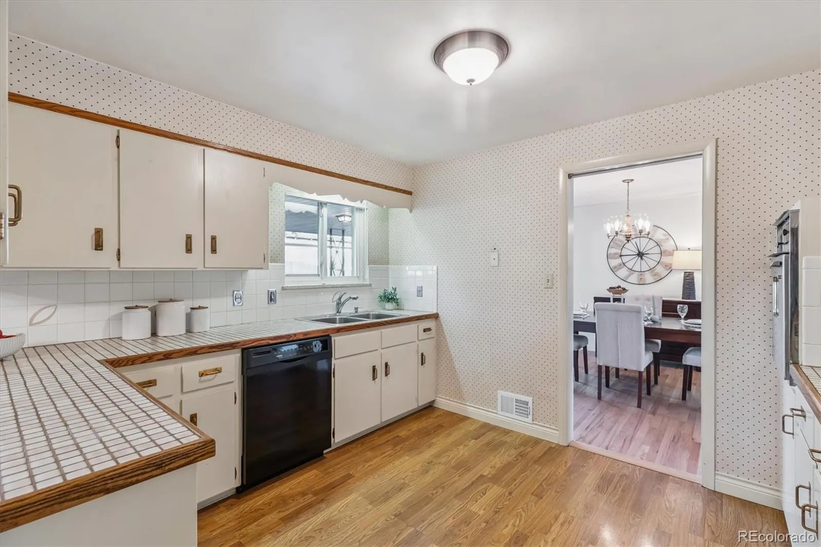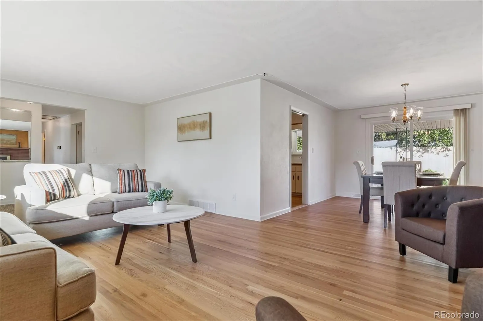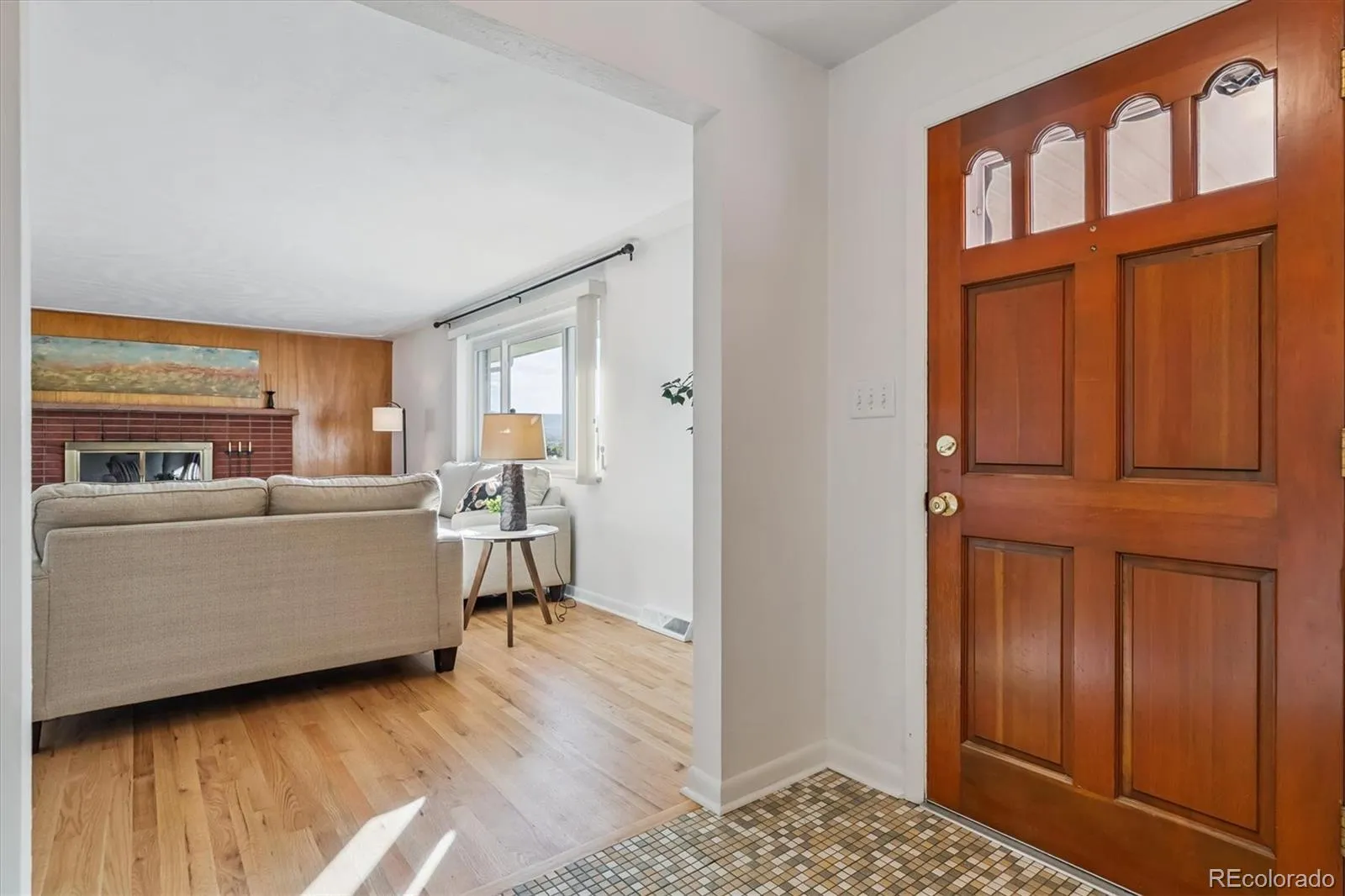 Classic one-owner red brick ranch on a .31-acre beautifully landscaped corner lot with mountain views! This home has original mid-century touches throughout and has been meticulously maintained! The main floor features original hardwood floors in the living room, dining room, and bedrooms. With over 1700 sqft on each level, the room sizes are generous! The living room has a wood burning fireplace and opens to the formal dining room, both with coved ceilings. The kitchen is adjacent to the dining room both with access to the backyard making entertaining a delight! The spacious primary bedroom has a vintage green 3/4 en-suite bath. 2 additional nice-sized bedrooms and a vintage black & white full bath complete the main floor layout. The partially finished full basement has a family room with wood burning fireplace, a game room with included pool table, workshop, and the laundry/mechanical room with washer, dryer, double basin utility sink, rough-in bathroom plumbing, and tons or storage space. Gas forced air heat, central air conditioning, and attic fan. Vinyl windows. New Roof & gutters in 2017. Freshly painted interior. Relax after a long day under the covered patio in the east-facing backyard that is perfect on those hot Colorado summer days! New privacy fencing. Front & back yard sprinkler system. Oversized 2 car attached garage and tons of extra parking on the extra-long driveway. Experience all that Applewood has to offer! Shop and dine in Gold’s Marketplace, Applewood Village, Colorado Mills, and Denver West. Enjoy indoor recreational activities at the Wheat Ridge Rec Center. Spend time outdoors at nearby Crown Hill Park, or one of the many parks in Applewood and Wheat Ridge. Ever-growing Clear Creek Crossing is home to the new Lutheran Hospital, Lifetime Fitness, and a future food hall & biergarten. Commuting is easy with convenient highway access.