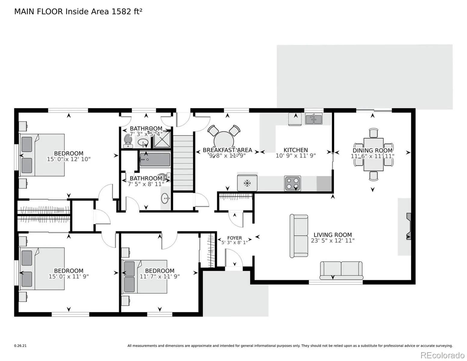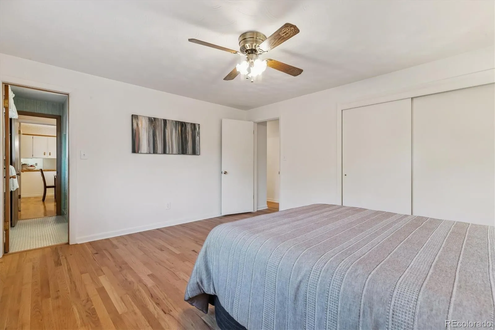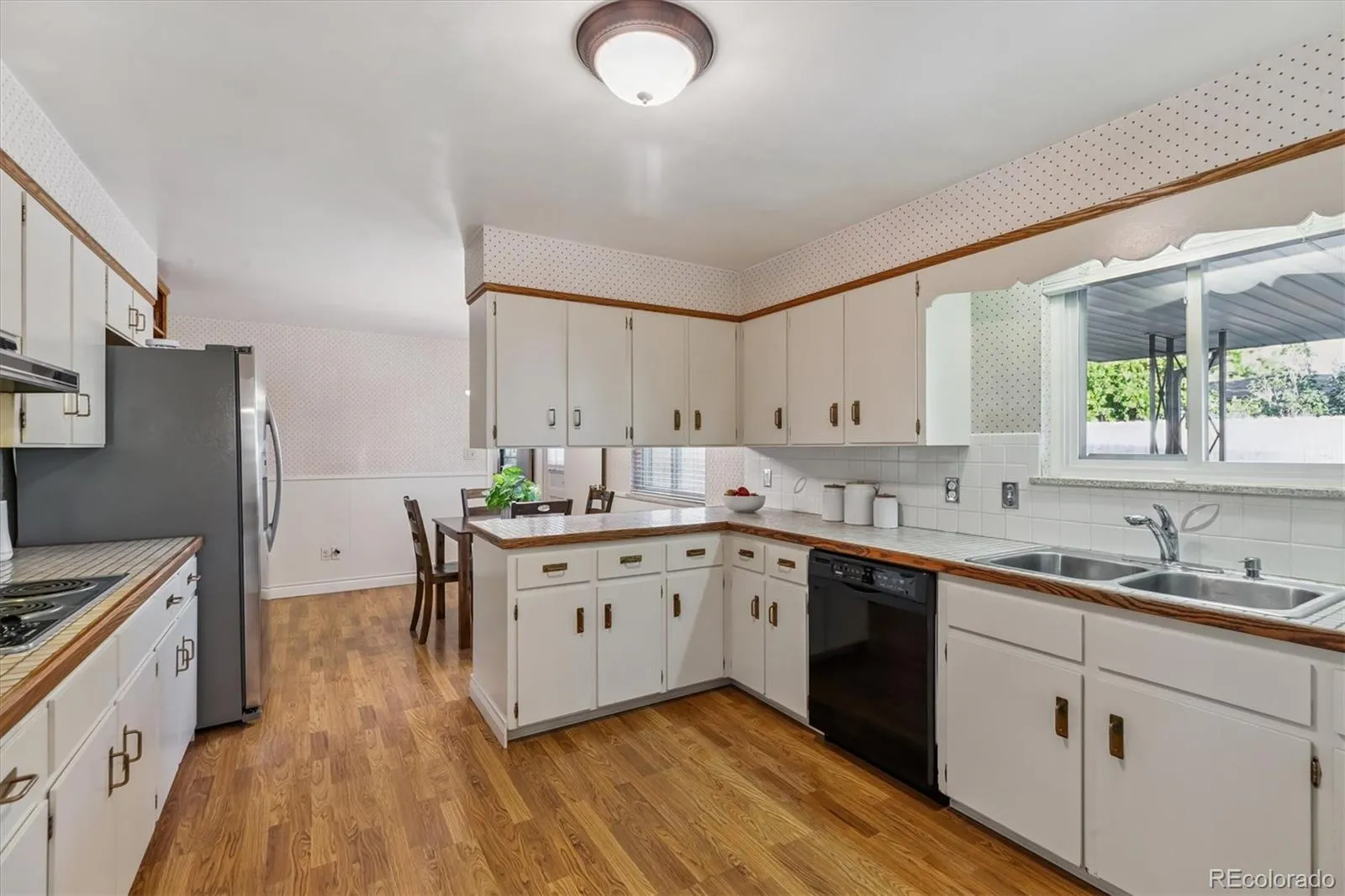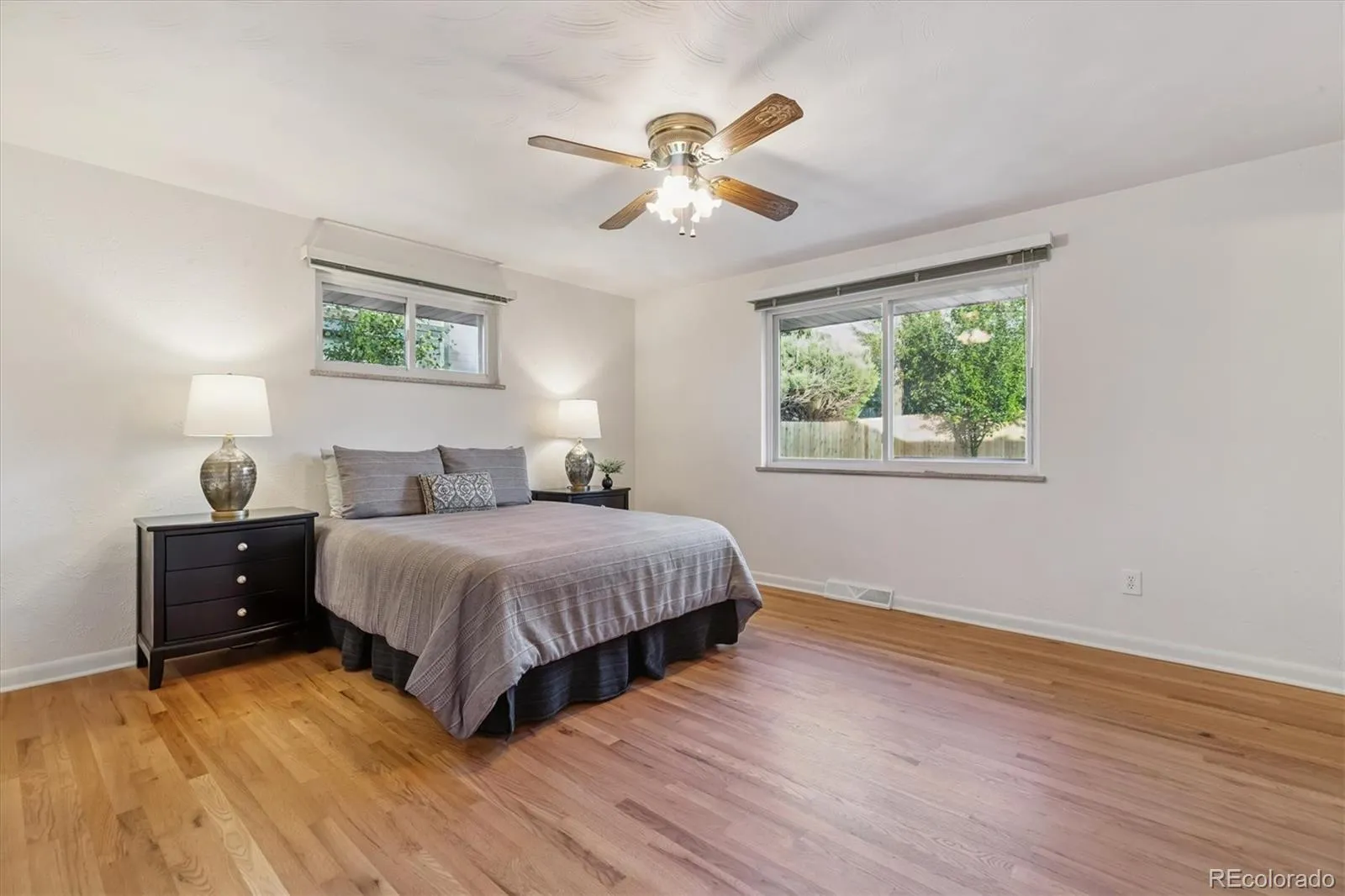 Classic one-owner red brick ranch on a .31-acre beautifully landscaped corner lot with mountain views! This home has original mid-century touches throughout and has been meticulously maintained! The main floor features original hardwood floors in the living room, dining room, and bedrooms. With over 1700 sqft on each level, the room sizes are generous! The living room has a wood burning fireplace and opens to the formal dining room, both with coved ceilings. The kitchen is adjacent to the dining room both with access to the backyard making entertaining a delight! The spacious primary bedroom has a vintage green 3/4 en-suite bath. 2 additional nice-sized bedrooms and a vintage black & white full bath complete the main floor layout. The partially finished full basement has a family room with wood burning fireplace, a game room with included pool table, workshop, and the laundry/mechanical room with washer, dryer, double basin utility sink, rough-in bathroom plumbing, and tons or storage space. Gas forced air heat, central air conditioning, and attic fan. Vinyl windows. New Roof & gutters in 2017. Freshly painted interior. Relax after a long day under the covered patio in the east-facing backyard that is perfect on those hot Colorado summer days! New privacy fencing. Front & back yard sprinkler system. Oversized 2 car attached garage and tons of extra parking on the extra-long driveway. Experience all that Applewood has to offer! Shop and dine in Gold’s Marketplace, Applewood Village, Colorado Mills, and Denver West. Enjoy indoor recreational activities at the Wheat Ridge Rec Center. Spend time outdoors at nearby Crown Hill Park, or one of the many parks in Applewood and Wheat Ridge. Ever-growing Clear Creek Crossing is home to the new Lutheran Hospital, Lifetime Fitness, and a future food hall & biergarten. Commuting is easy with convenient highway access.