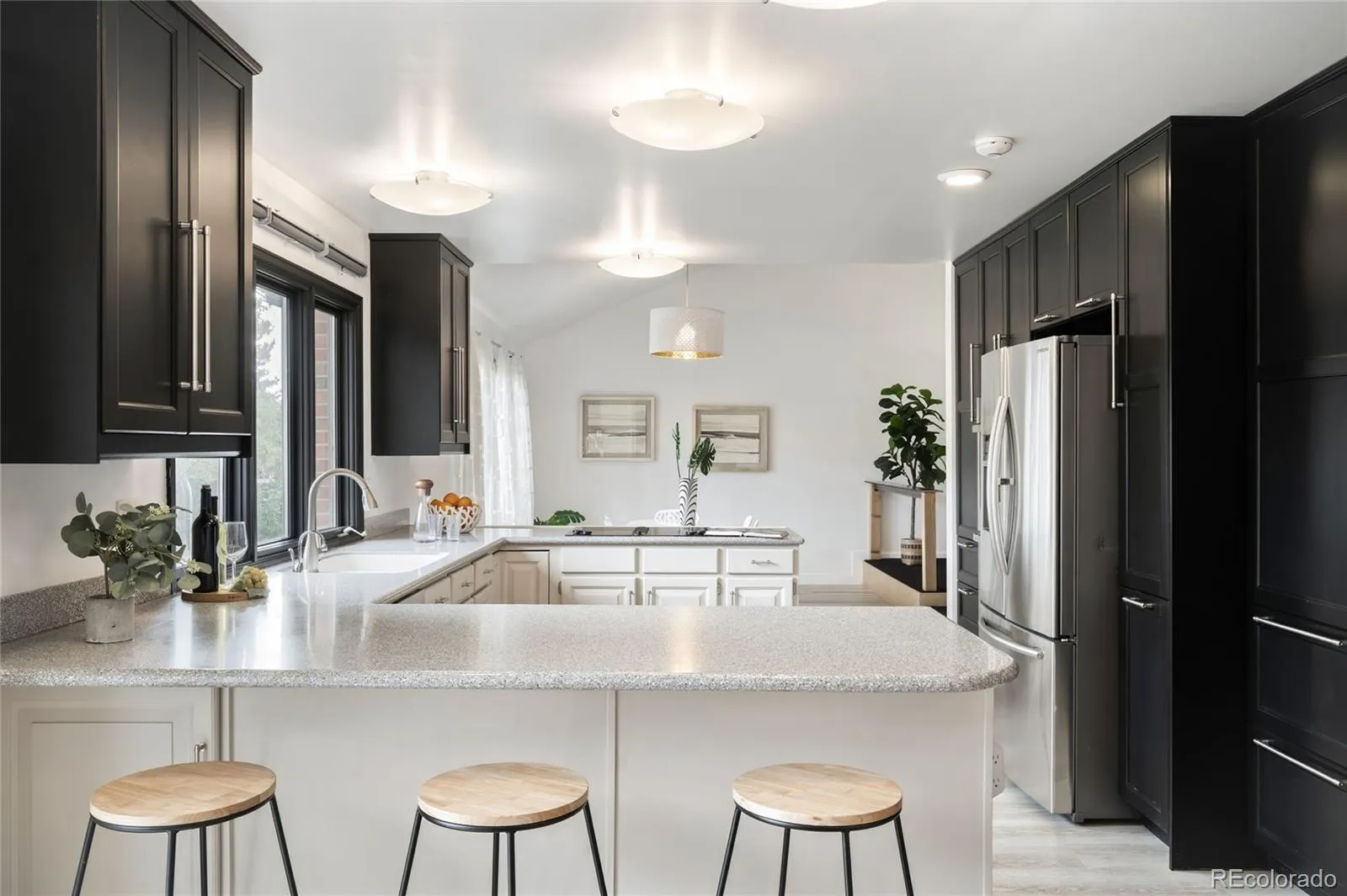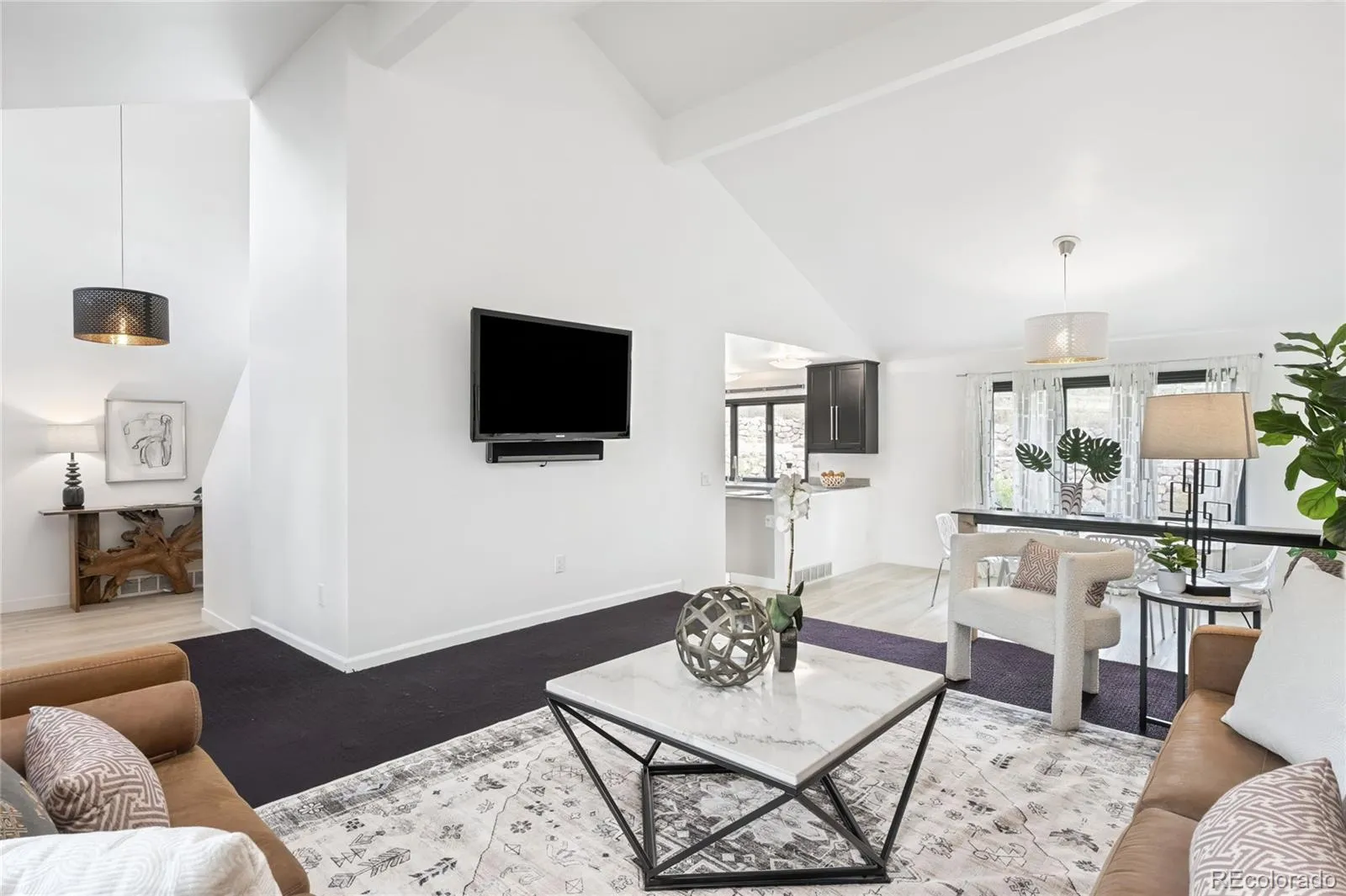 Tucked against open space and trails, this beautifully updated Hilltop at the Highlands residence blends modern upgrades with serene natural surroundings. A vaulted living room with skylights sets a warm tone, flowing into a bright dining area and a remodeled kitchen showcasing sleek cabinetry, stainless steel appliances and a peninsula with seating. A charming breakfast nook connects seamlessly to the private backyard, perfect for outdoor gatherings amid mature landscaping. Enjoy relaxing in a cozy den grounded by a tiled gas fireplace. The spa-like primary suite offers a true retreat with a steam shower, built-in closet system and direct access to a private deck. Three additional bedrooms and updated baths provide comfort and versatility, while the finished basement boasts a spacious rec room and large storage area. With new flooring, refined finishes and thoughtful design throughout, this home combines everyday ease with timeless sophistication in a coveted Centennial neighborhood.