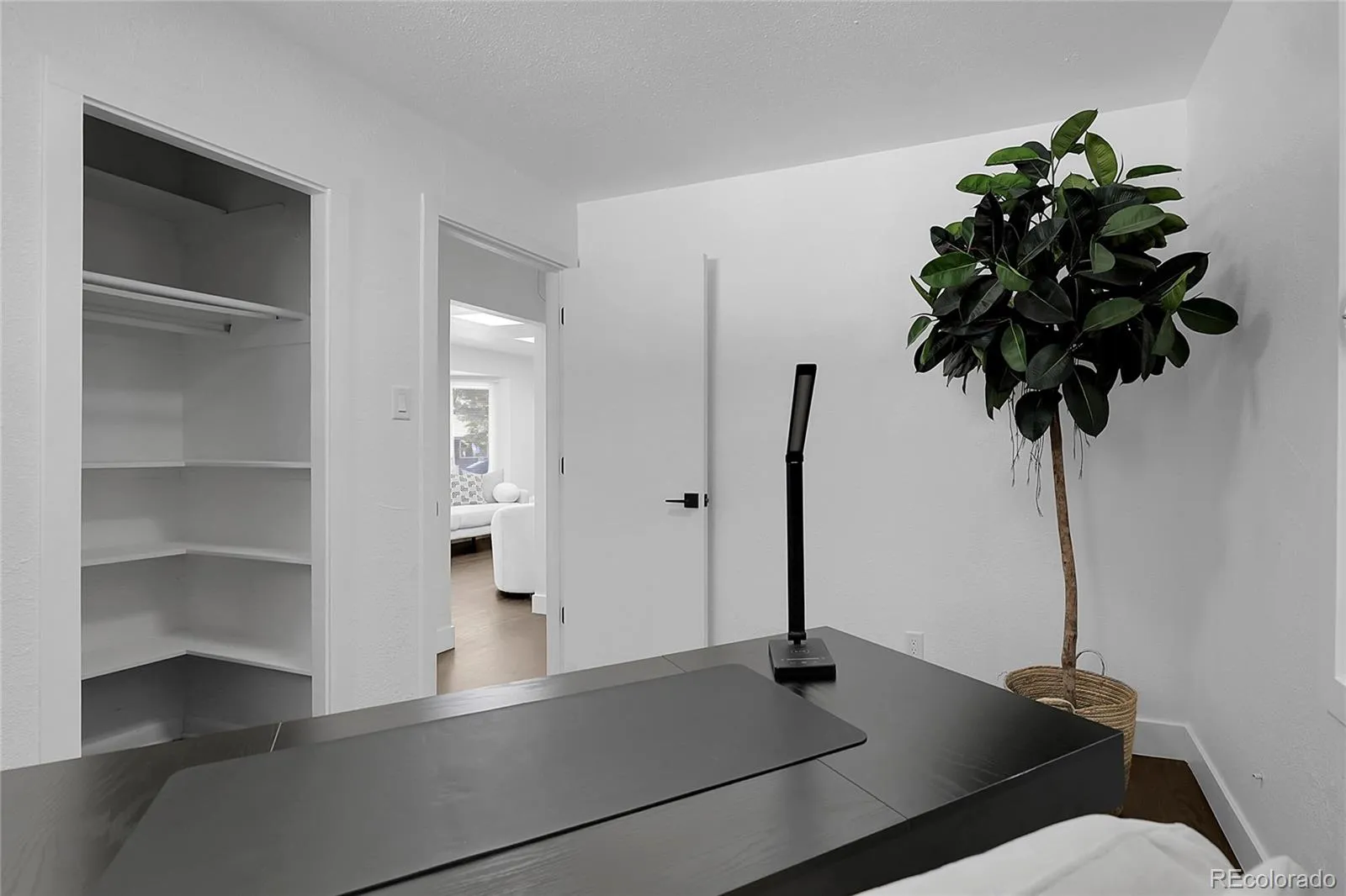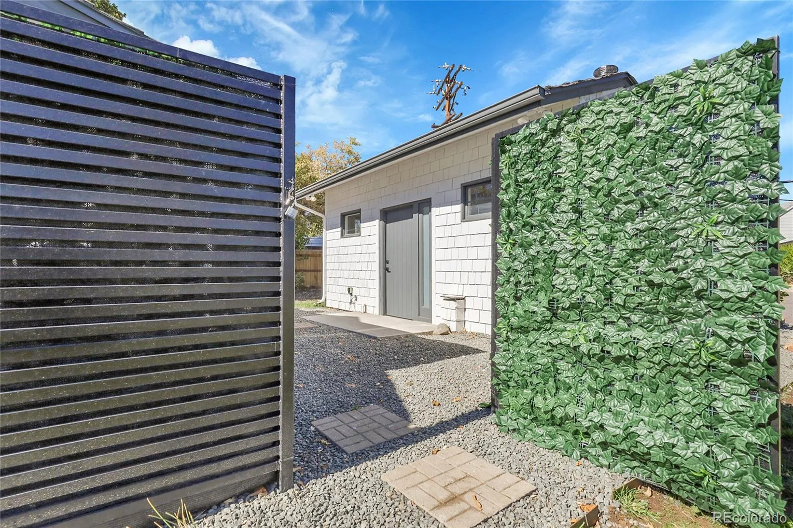The detached ADU has been thoughtfully remodeled with a modern kitchen including quartz countertops, refrigerator, hot plate stove, a ¾ bath, and a spacious living area—ideal for adding a Murphy Bed suitable for a studio apartment.