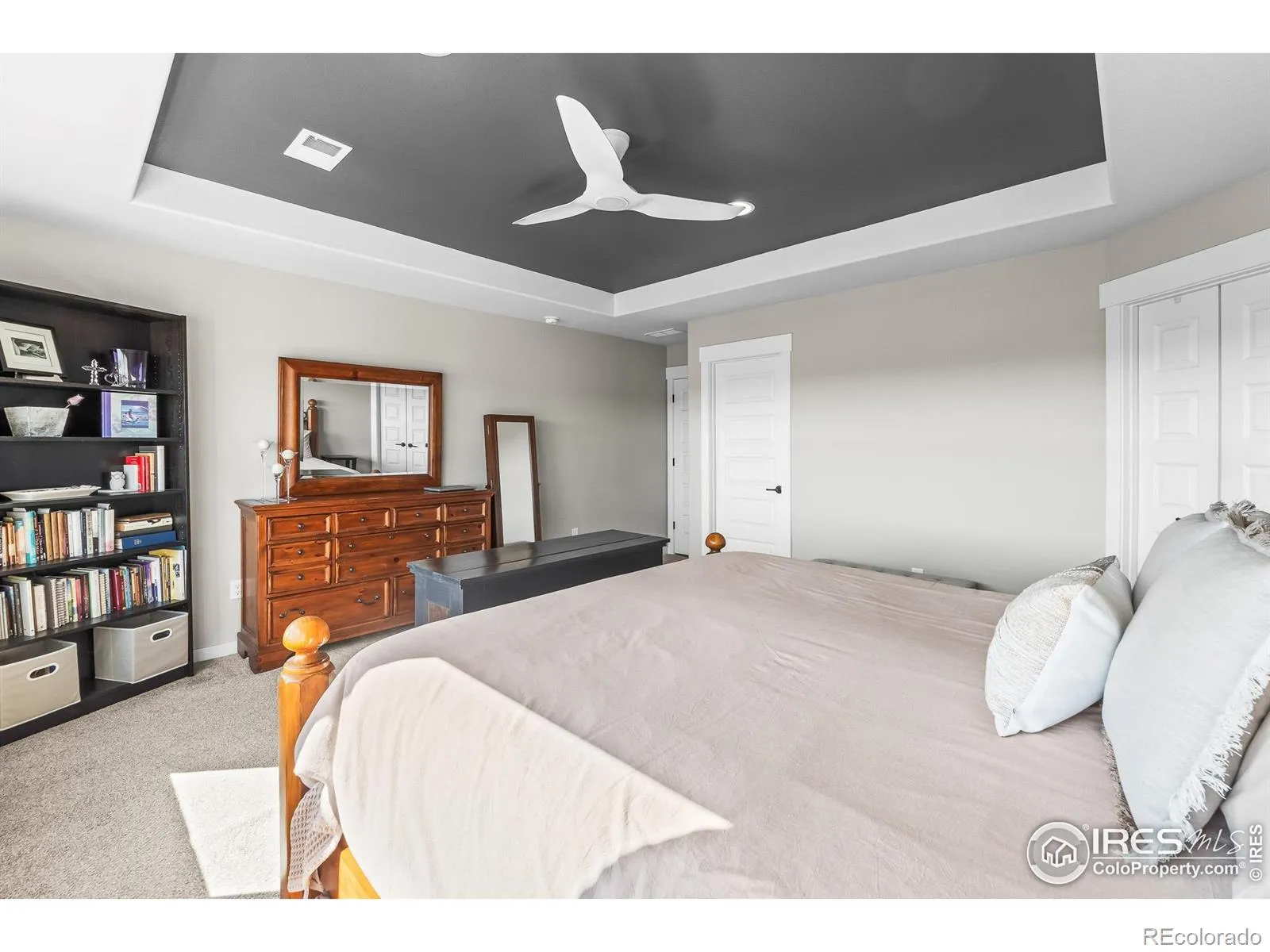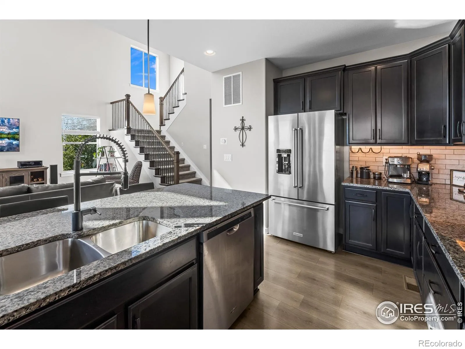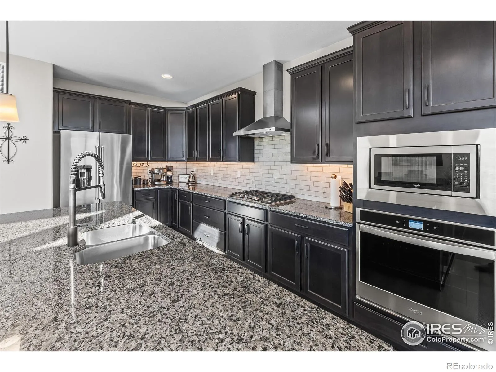 From the moment you enter the front door of this 2-story, 4-bd, 4-ba home, you will note the open concept design, which seamlessly connects the living, dining, & kitchen spaces. Breathtaking PANORAMIC views of the snow-capped Rocky Mountains from ALL 3 levels of this home will have you sold. The gourmet kitchen is complete with stainless steel appliances, a gas stove, granite counters, soft-close cabinets, an expansive island, hard surface flooring & a spacious walk-in pantry. The living room highlights floor-to-ceiling windows that bathe the space in natural light, surround sound speakers creating an immersive audio experience, & an overhead Haiku smart ceiling fan that optimizes airflow for complete comfort. An office with French doors, views to the front of the home & mudroom sitting conveniently next to the garage, completes the main floor! Upstairs, the split floor plan gives the primary suite privacy. This suite also features a tray ceiling, Haiku fan, double walk-in closets, and an ensuite with custom tile, a walk-in shower & oversized soaking tub designed for ultimate relaxation. The upstairs also boasts 2 additional bedrooms, a full bathroom, & an oversized loft with wood floor, Barnwood tray ceiling, Haiku fan, & a picture window showcasing the mountains, perfect for a 2nd office or workout area. Not in the mood to go out? Head to your walkout basement featuring a large rec room, a “hidden” speakeasy, w/ custom bar & Kegerator. A 4th bedroom & storage room complete this space. The 4-car garage has epoxy floors, & ample storage. The almost-quarter-acre fully fenced backyard, on auto drip, backs to HOA open space & includes raised beds ready for your gardening pleasure, outdoor speakers, & even a hot tub! Paid solar panels, keep bills to a minimum. This neighborhood has a pool, clubhouse & is close to trails, lakes, & the TPC golf course. List of features in the documents section.