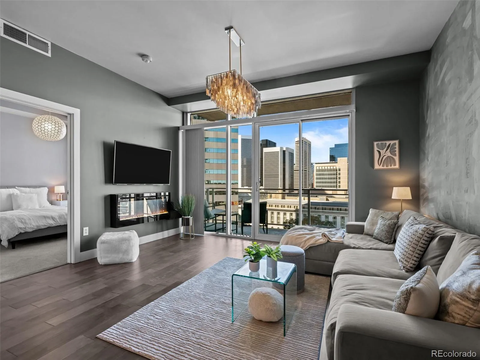 VIEWS! VIEWS! VIEWS! and LOCATION! LOCATION! LOCATION! This 1-bedroom residence at the centrally-located One Lincoln Park condominium community features dramatic city views with Downtown Denver’s soaring skyscrapers set against a backdrop of the majestic Rocky Mountains. After a long day of working or shopping, retreat to your own balcony and relax as the sun sets behind the mountains and paints the sky with soothing pastel colors. This home has 818 square feet of living area indoors, cleverly arranged to provide maximum comfort. The eat-in kitchen boasts slab granite counters + island, newer sleek stainless steel appliances, plus plenty of storage and work space. The open floor plan means that you can entertain your dinner guests while you’re preparing dinner — or convene for a cocktail and then stroll to one of Downtown Denver’s many outstanding restaurants. The primary suite includes a light and bright bedroom with direct city views. The en-suite bathroom features dual sinks – a rarity in a 1-bedroom condo – along with a bathtub, an oversized shower, and a spacious walk-in closet. The condo has other storage areas, including a spacious laundry room, tucked away behind the kitchen. Also included: contemporary light fixtures, washer + dryer, 1 assigned parking space in the attached garage near the elevators + 1 storage unit in the garage. Furniture and furnishings are available for an additional fee – making this property a turnkey-ready residence or a fantastic investment property. Be sure to ask your broker for a list of the owner’s improvements. Residents of One Lincoln Park enjoy a large 7th-floor outdoor gathering space with infinity pool, hot tub, and barbecues, as well as a fitness center, owner’s lounge, a guest suite residents can reserve at a reasonable rate, and more! Experience luxury downtown living with Denver’s best restaurants, clubs, concerts, performances, sports, and festivals – all just a few steps away from your new home at One Lincoln Park.
