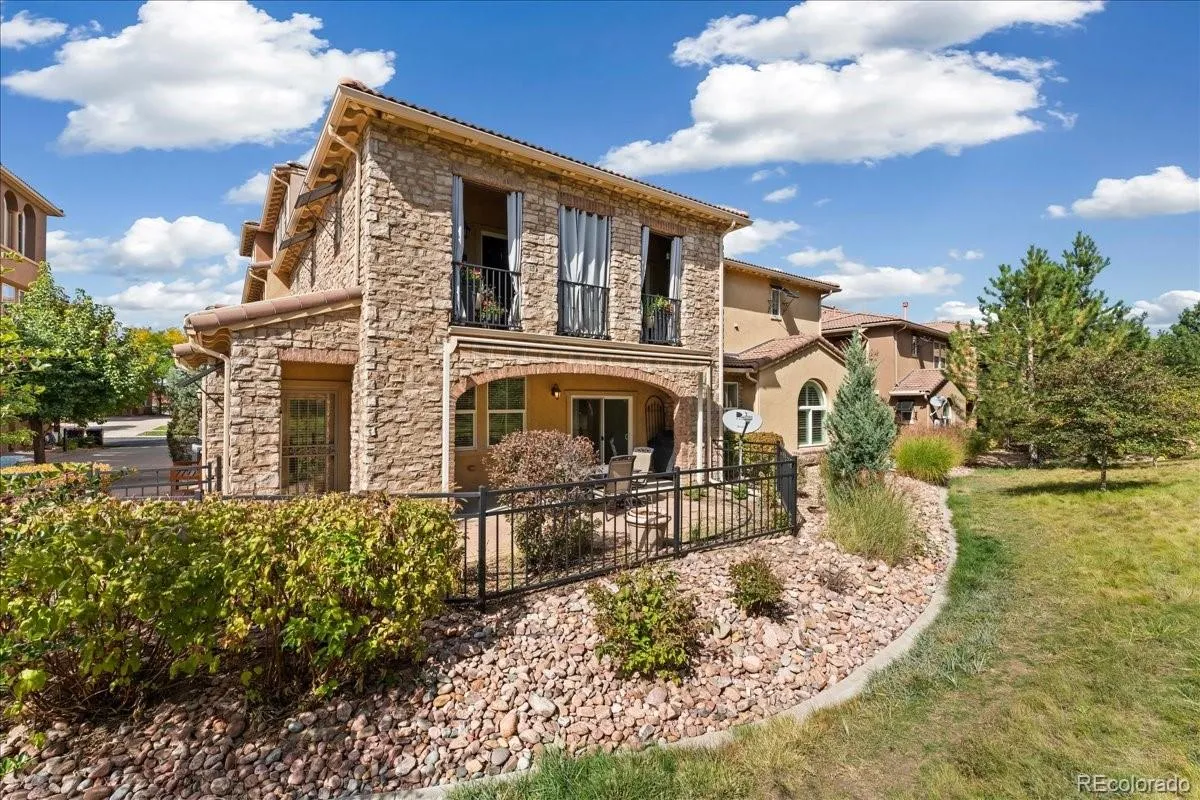 Luxurious one-level living at its finest awaits in this townhome with mountain views in the community, perfectly situated in a prime Highlands Ranch location. This highly desirable main floor end unit offers privacy, tranquility, and convenience all in one. A secluded fenced patio with a garden area and an electric retractable awning creates the perfect outdoor retreat, while the quiet neighborhood is enhanced by neighbors who look out for one another. Inside, the open layout welcomes you with a cozy gas fireplace, a den plus a living room, and direct access to the expansive brick patio from both spaces. The chef’s kitchen is beautifully designed with warm wood cherry cabinetry, upgraded stainless steel appliances, a pantry with sliding drawers, and a convenient door leading directly to the garage. Two spacious bedrooms provide comfort, with the primary suite featuring plush carpeting, a large walk-in closet, and a fantastic 5-piece en-suite bath. Additional highlights include newer furnace and hot water heater, custom kitchen cabinets and drawers, epoxy garage floor with abundant built-in storage, and surround sound system with mounted speakers in the family room. Minutes from King Soopers, shops, dining, and major roads, this move-in-ready gem offers the perfect blend of comfort and location.