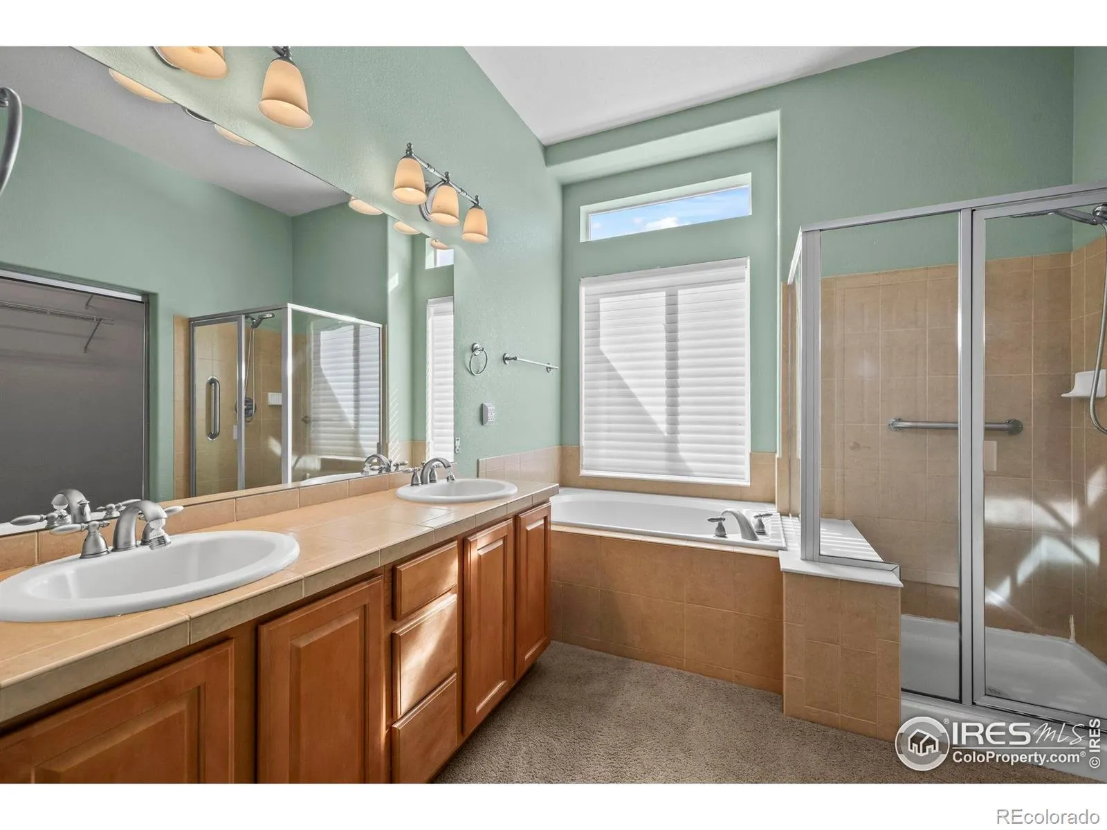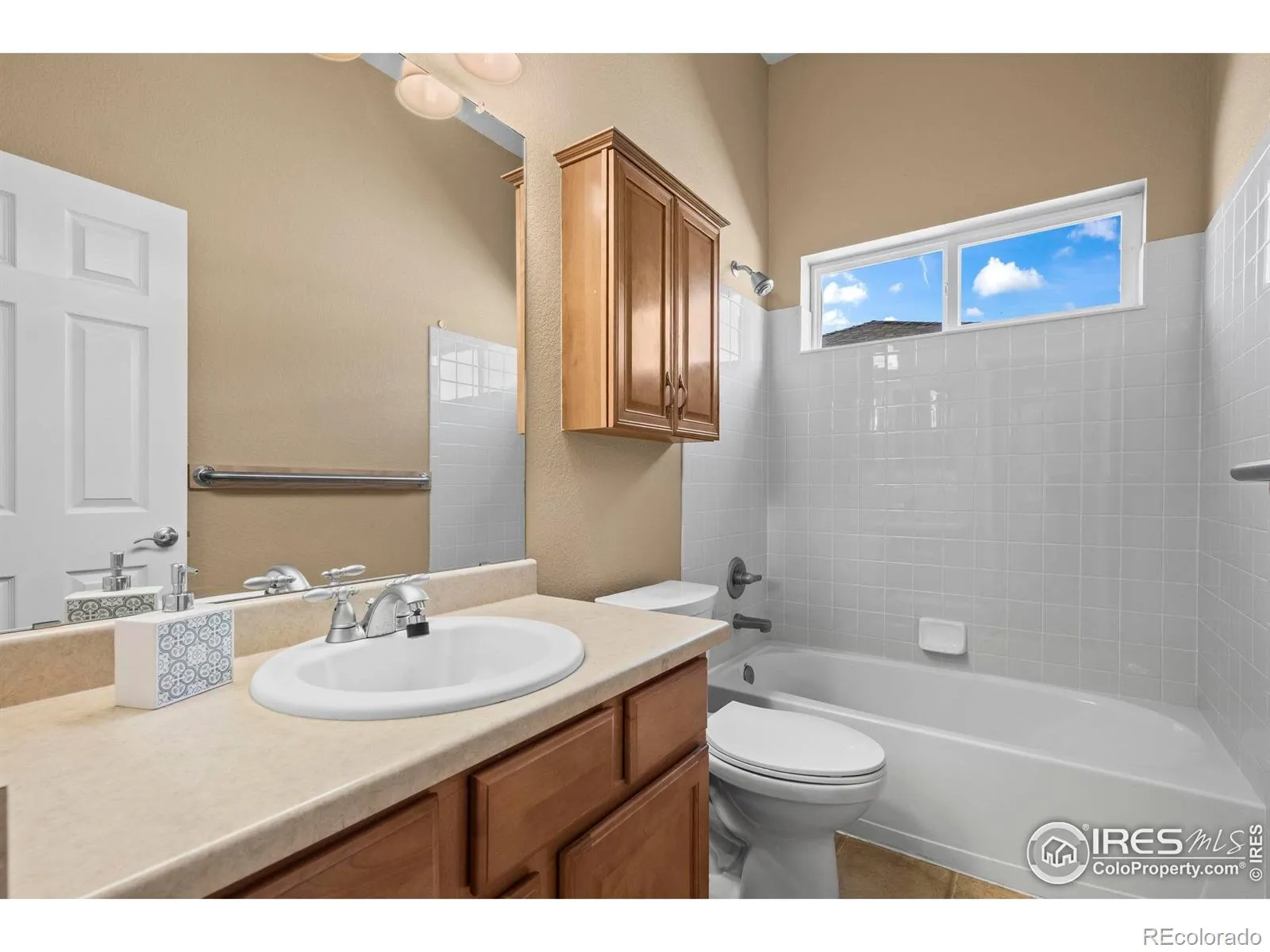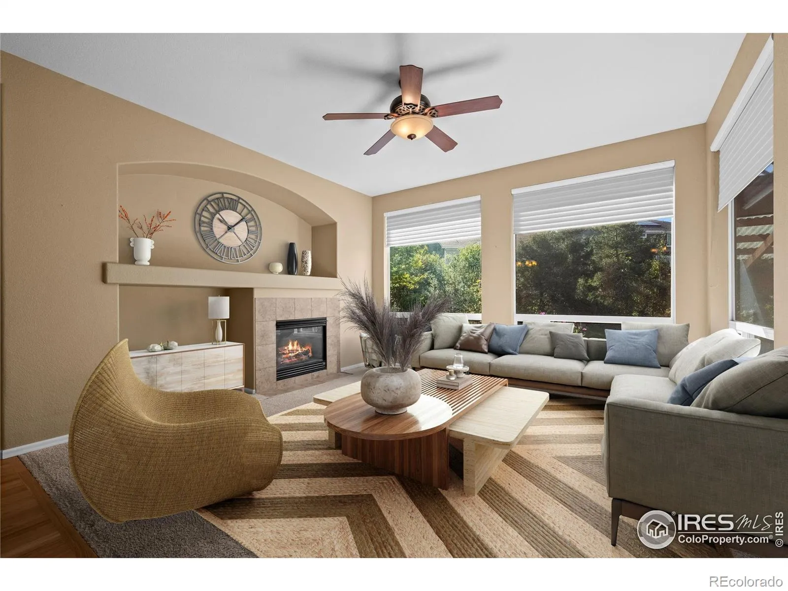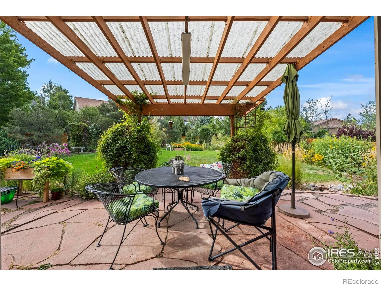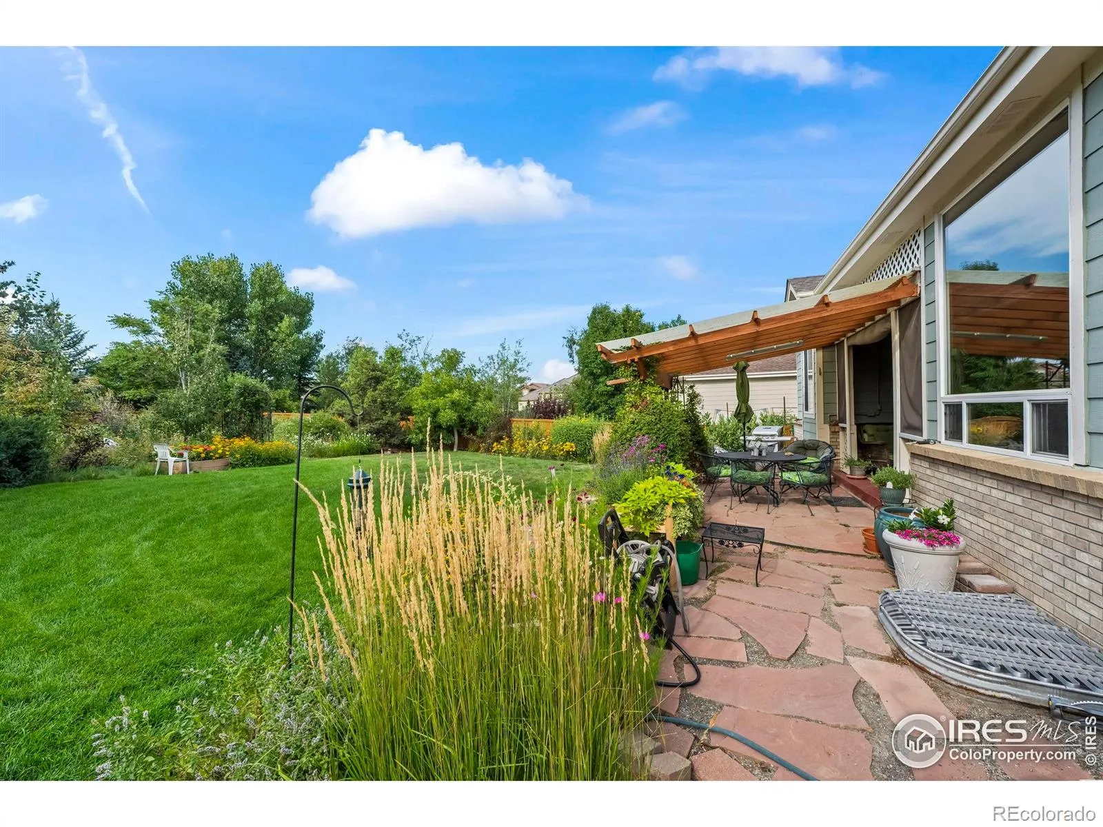 Welcome home to this ranch-style home with a three-car garage sitting on one of the largest lots in the neighborhood! Amazing private, park-like backyard with mature landscaping, a covered porch, and a flagstone patio with pergola. Inside, the open floor plan is filled with natural light and features hardwood floors, a gas fireplace in the great room, and a functional kitchen with pantry, island and Corian countertops. The main level includes a spacious primary suite with five-piece bath and walk-in closet, a second bedroom and full bath, a home office, and convenient laundry.The finished basement provides even more living space with a large rec room, workshop, 3/4 bath, and two additional bedrooms with egress windows. The home offers solar that is paid off. Situated in the heart of desirable Vista Ridge community with award winning golf course, pools, parks and pickleball and tennis courts. Combining comfort, functionality, and outdoor beauty, this home is a rare find! Schedule your private showing today! *Seller offering a credit for paint/flooring*