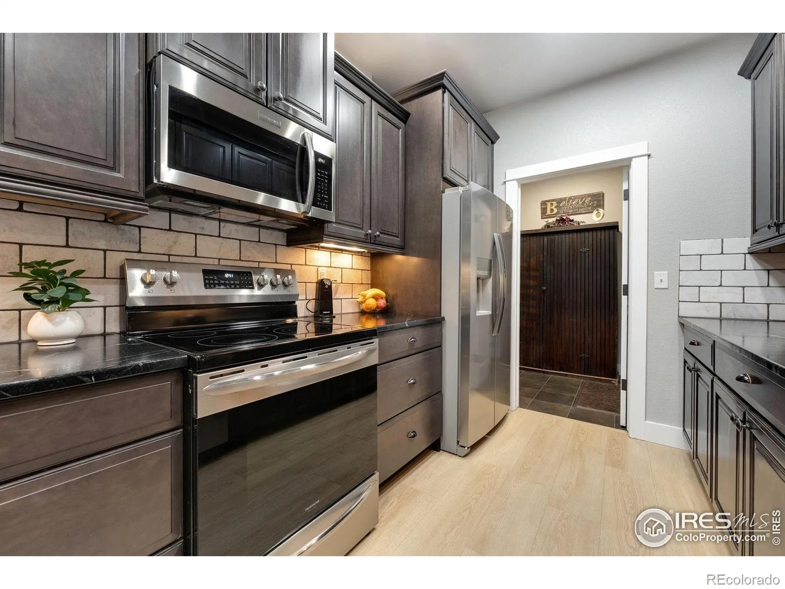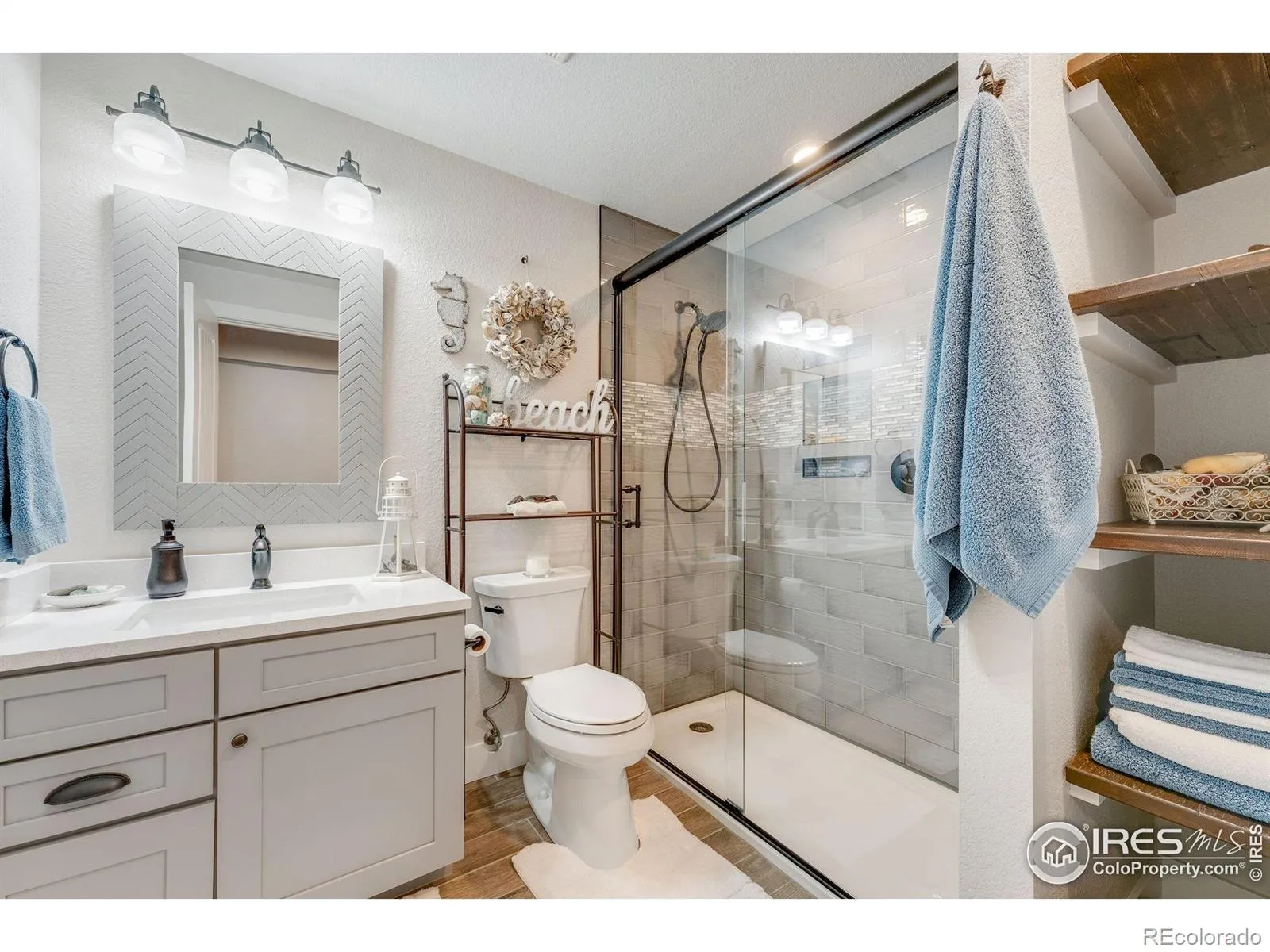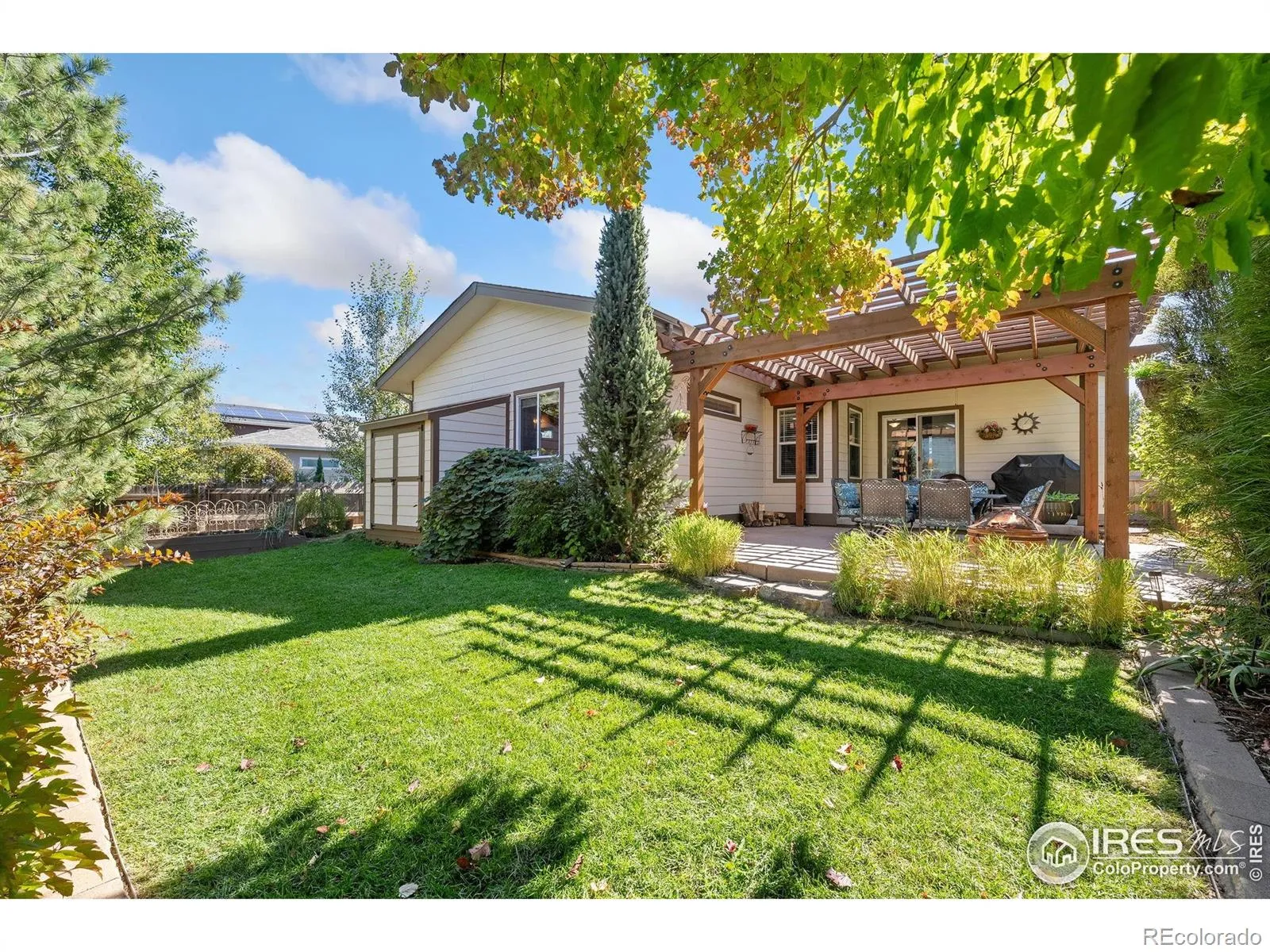 Welcome to this deceptively spacious ranch-style home, centrally located in the heart of Fort Collins. Step inside to discover a beautifully updated main floor featuring luxury vinyl plank flooring, elegant soapstone countertops, high ceilings and an open-concept layout that’s perfect for both relaxing and entertaining. The primary suite offers a walk-in closet and a stunning bathroom with custom tilework. Two additional bedrooms, another full bath and a convenient main-level laundry room complete the first floor. Just off the living room, escape to your private backyard oasis with mature landscaping and a charming pergola-ideal for outdoor gatherings or quiet mornings. The finished basement expands your living space with a large family room, a versatile fourth bedroom or office, a stylish wet bar, and a cozy theatre area. This home offers abundant storage with a spacious basement area and a convenient outdoor shed. Enjoy easy access to local favorites like Jessup Farm, King Soopers, scenic nature trails, and the neighborhood pool-all just minutes away.
