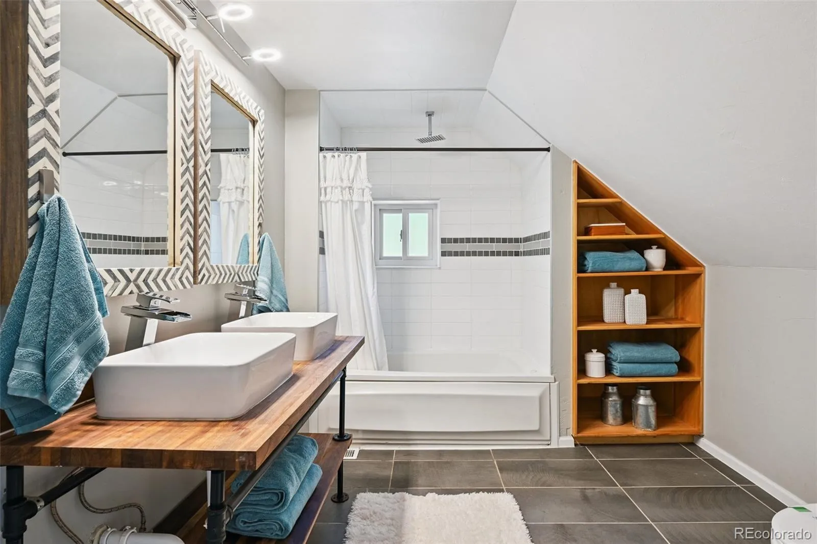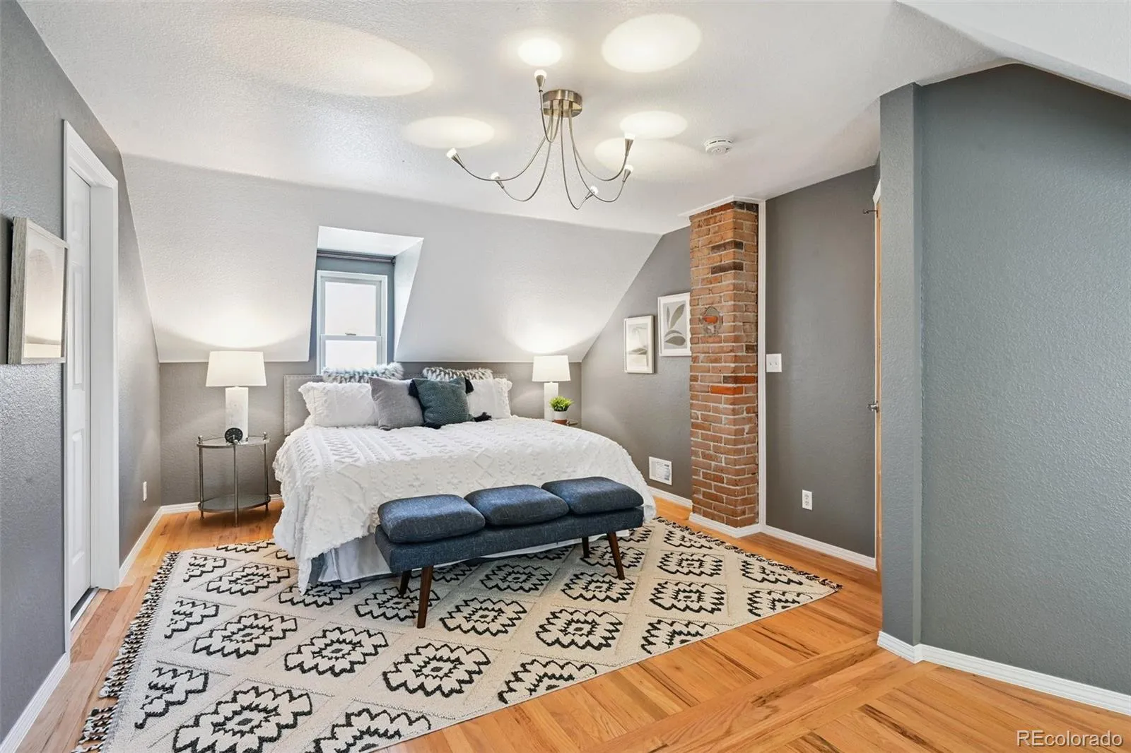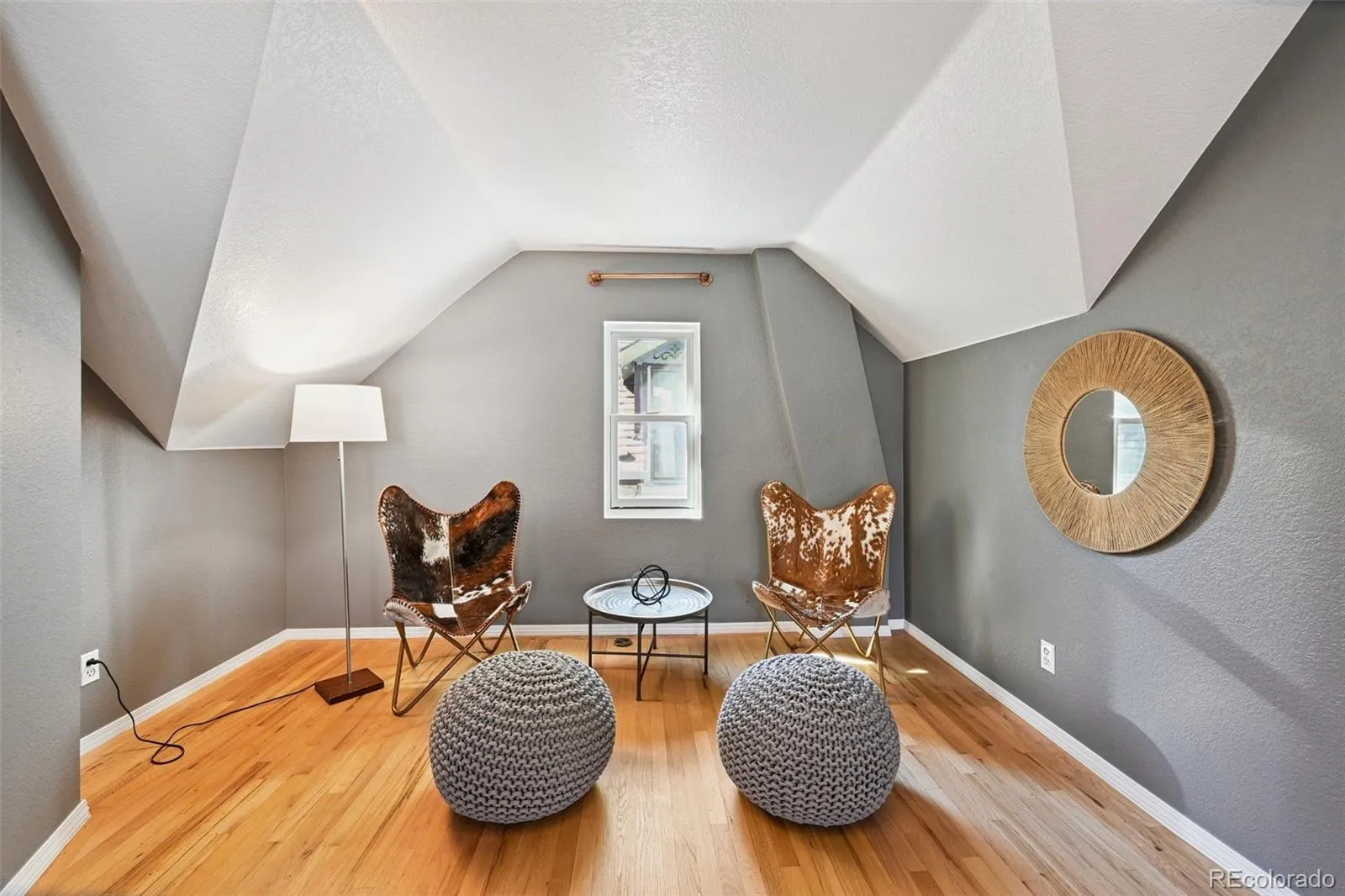 The main level offers an open floor plan ideal for modern living, with a spacious dining area and an oversized kitchen featuring stainless appliances, quartz countertops, new cabinets, and easy access to a large mudroom/flex space with laundry. A versatile office or bedroom sits just off a well-appointed ¾ bathroom, making it perfect for guests or remote work. Upstairs, discover two generous bedrooms, including a luxurious primary suite with a cozy reading nook, walk-in closet, and spa-like en-suite bath featuring a double vanity, soaking tub, and custom built-in shelving. The secondary bedroom opens to a raised east-facing sun deck, for an abundance of morning light. Outdoors, the home continues to shine with a fully fenced yard, a covered front porch, and a fenced in backyard complete with a sprinkler system, offering a low-maintenance oasis for gardening and entertaining. Additional features include a detached one-car garage, off-street parking, central air, HVAC system (2018), tankless water heater, newer furnace, roof (less than 10 years old), and a reinforced cinder-block foundation. Positioned between the Five Points and the RiNo Arts District, this home puts you steps from Denver’s best dining, culture, light rail access, Coors Field, and more. This is more than just a home, it’s your chance to own a uniquely crafted and lovingly maintained piece of Denver history in one of the city’s most architecturally eclectic and exciting neighborhoods.
