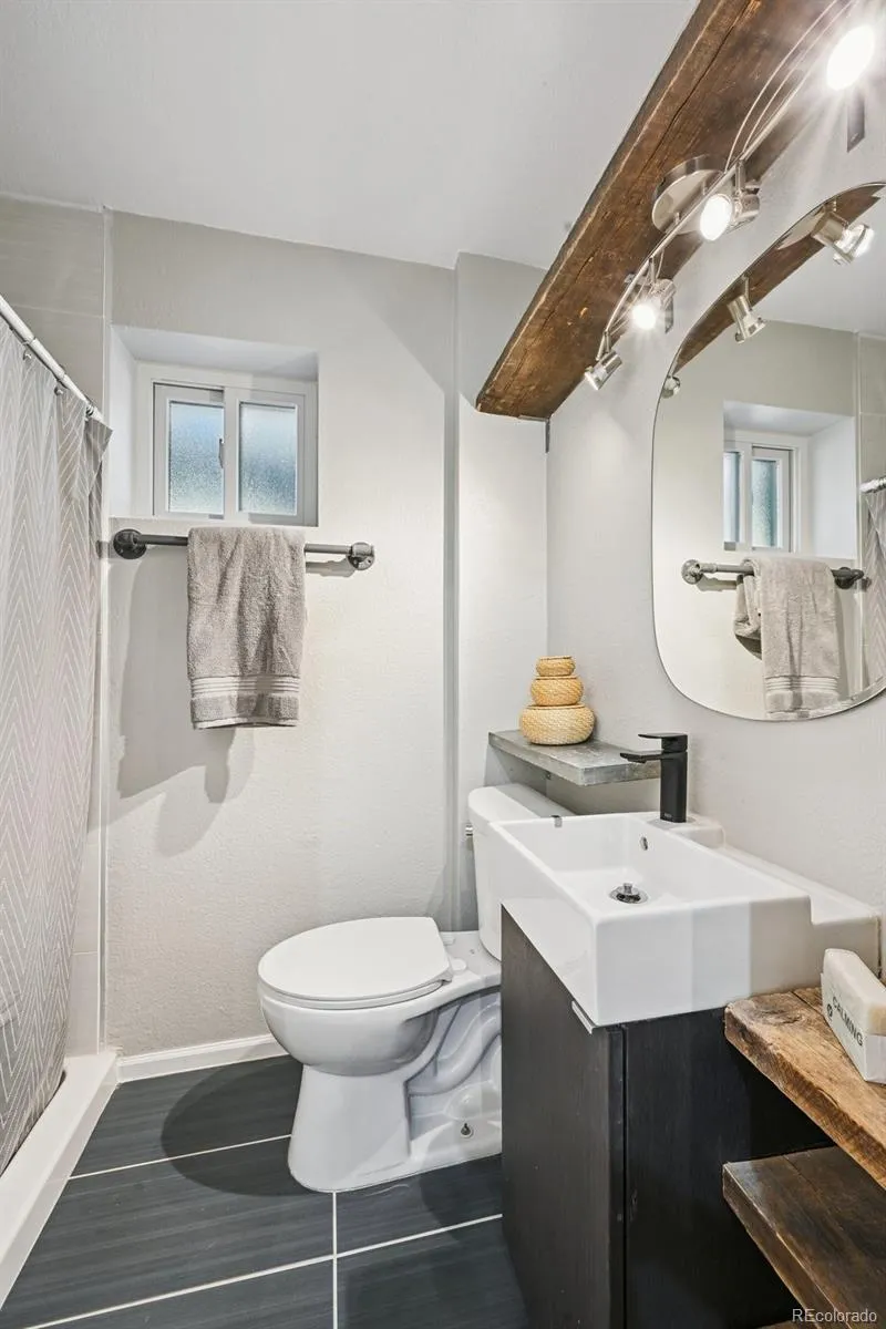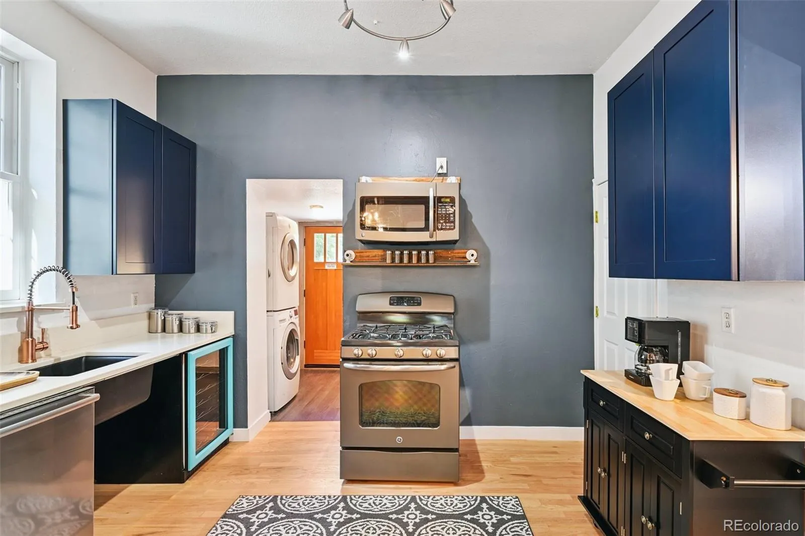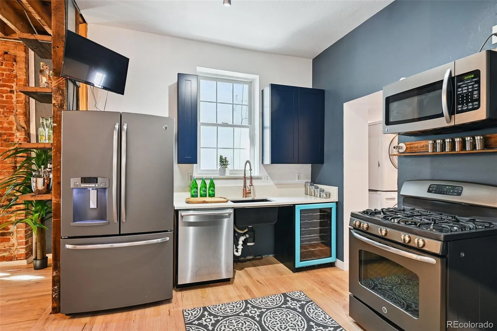 The main level offers an open floor plan ideal for modern living, with a spacious dining area and an oversized kitchen featuring stainless appliances, quartz countertops, new cabinets, and easy access to a large mudroom/flex space with laundry. A versatile office or bedroom sits just off a well-appointed ¾ bathroom, making it perfect for guests or remote work. Upstairs, discover two generous bedrooms, including a luxurious primary suite with a cozy reading nook, walk-in closet, and spa-like en-suite bath featuring a double vanity, soaking tub, and custom built-in shelving. The secondary bedroom opens to a raised east-facing sun deck, for an abundance of morning light. Outdoors, the home continues to shine with a fully fenced yard, a covered front porch, and a fenced in backyard complete with a sprinkler system, offering a low-maintenance oasis for gardening and entertaining. Additional features include a detached one-car garage, off-street parking, central air, HVAC system (2018), tankless water heater, newer furnace, roof (less than 10 years old), and a reinforced cinder-block foundation. Positioned between the Five Points and the RiNo Arts District, this home puts you steps from Denver’s best dining, culture, light rail access, Coors Field, and more. This is more than just a home, it’s your chance to own a uniquely crafted and lovingly maintained piece of Denver history in one of the city’s most architecturally eclectic and exciting neighborhoods.