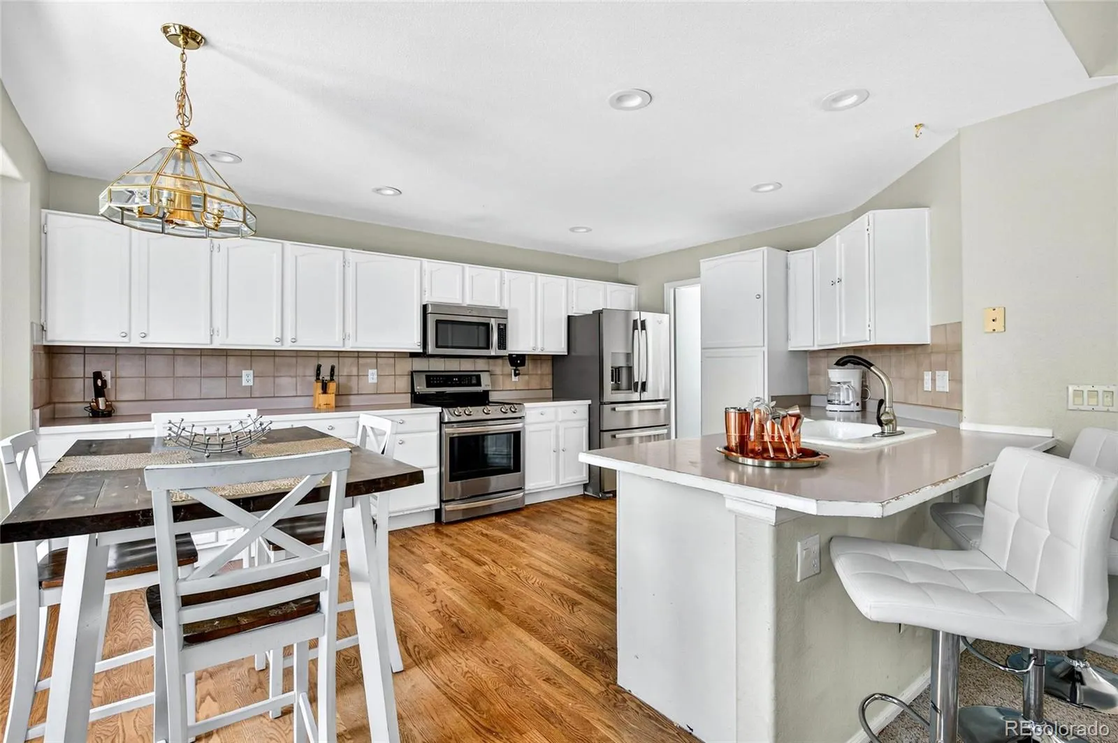 Welcome to this spacious five-bedroom, five-bathroom home in the desirable Spring Creek Meadows neighborhood, within the highly regarded Cherry Creek School District. As you step inside, you’ll be greeted by soaring ceilings, a light-filled layout, and spaces designed for both comfort and functionality. The living room is truly the heart of the home, with dramatic high ceilings and large windows that flood the space with natural light. A cozy fireplace adds warmth and creates an inviting place to gather or unwind at the end of the day. The main level also includes a dedicated office (or optional bedroom), formal dining space, and a bright kitchen with breakfast nook that flows seamlessly into the living areas. Upstairs, the primary suite is a true retreat with vaulted ceilings, a five-piece en suite bath with jetted tub, and a spacious walk-in closet. Two additional bedrooms and a full bathroom round out the upper level. The finished walkout basement offers endless possibilities, complete with two bedrooms, two bathrooms, and a bonus entertaining room with a bar area—perfect for movie nights, game days, or hosting guests. Enjoy the outdoors with a private fenced yard, deck, and patio surrounded by mature landscaping. With over 3,400 finished square feet, double-pane windows, central air, and mountain views, this light, bright home truly has it all. Don’t miss your chance to make it yours!