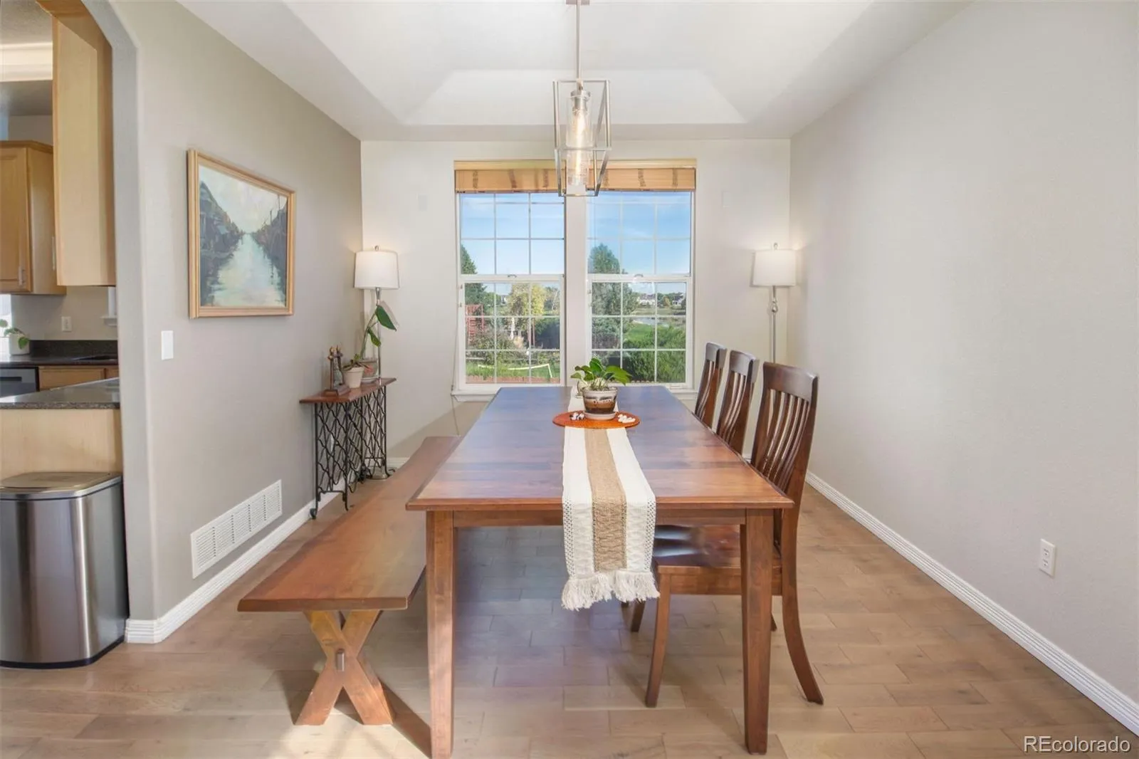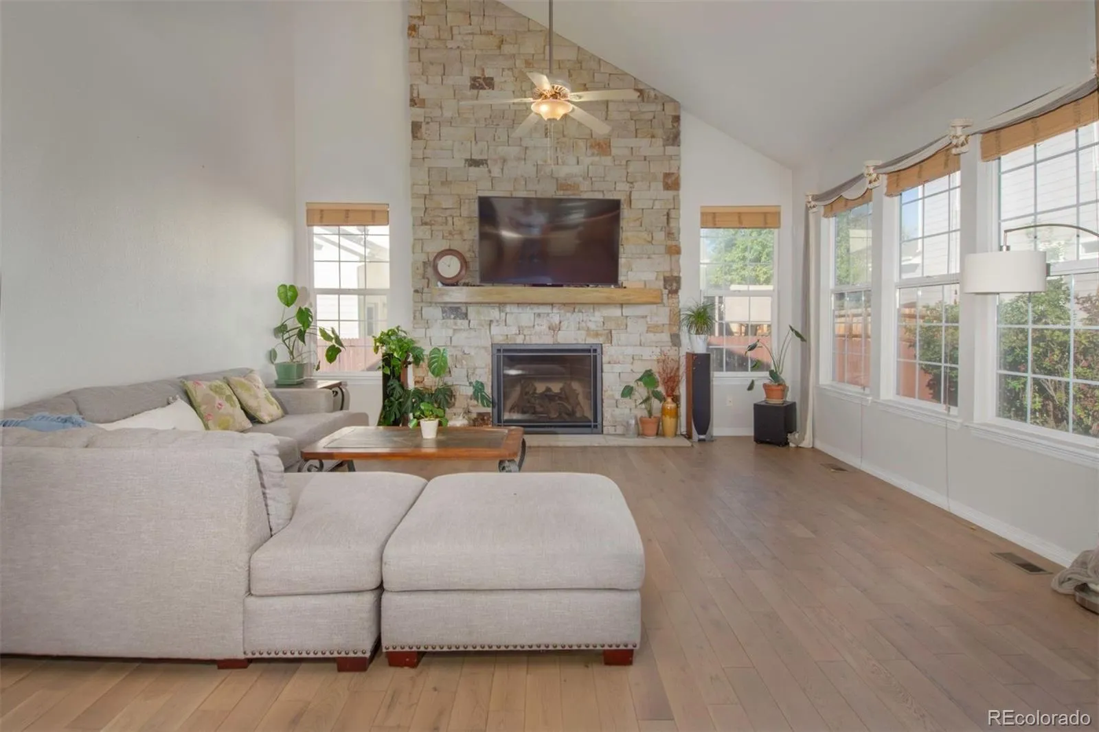 Experience golf course living at its finest! This beautiful and spacious 2-story home sits along the Ute Creek Golf Course, offering stunning golf and water views from many rooms. Step inside to find a warm and welcoming study with radiant heated floors, and an elegant formal living and dining room-perfect for entertaining. The updated kitchen features an island, granite countertops, stainless steel appliances including a stove with 1 1/2 ovens, pantry, and a sunny breakfast nook that opens to the inviting family room with soaring ceilings and a stone-surround gas fireplace. Enjoy seamless indoor-outdoor living with a sliding door leading to the patio, garden, and backyard. Beautiful wide-plank hardwood floors flow throughout, complemented by tile in the baths and laundry room, which includes cabinetry and a sink. Upstairs the luxurious primary suite offers a private retreat with cathedral ceilings and a cozy gas fireplace-your own serene escape. You’ll find two additional bedrooms plus a spacious 20×15 bonus/flex room, ideal for a home office, gym, or media space. A full unfinished basement provides endless possibilities. Enjoy peaceful mornings and quiet evenings from your own golf course haven.