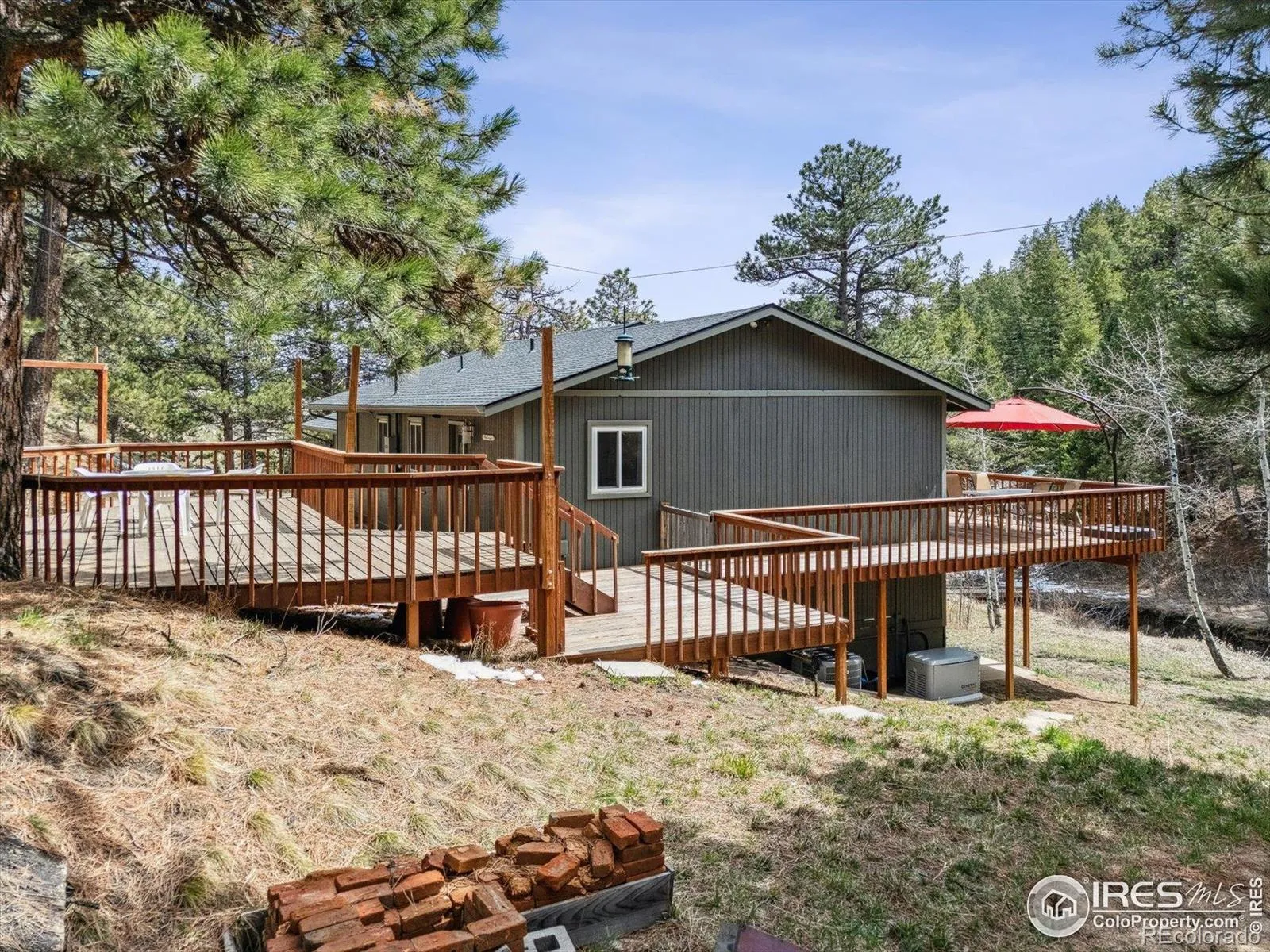 Discover peace and serenity in this beautifully updated home nestled on a breathtaking 2.06-acre lot with a seasonal stream & private trails, expansive decks & patios & luxury finishes & features throughout. Upon entering, you’re welcomed by an open floor plan, featuring a remodeled kitchen with new 42-inch cabinets, a designer tile backsplash, custom poured concrete countertops, & brand-new stainless-steel appliances. The kitchen flows seamlessly into the dining area and Great Room, where vaulted ceilings and sweeping views create an inviting atmosphere. The large main level primary suite offers an upgraded bathroom, complete with a lavish walk-in shower with a deluxe showerhead, multiple body sprays & a steam shower, a freestanding clawfoot tub, a dual sink vanity, & designer tile finishes. The main level is further enhanced by a chic powder bath with reclaimed wood accent wall, 2 additional bedrooms, extensive luxury vinyl flooring, new designer wrought iron railings, updated light fixtures, & fresh paint. The walk-out basement offers a spacious family room, a full bath with a quartz vanity, heated tile floors, & a built-in linen cabinet. It also includes a versatile bonus room perfect for an office or non-conforming bedroom & a large laundry room. Additional upgrades include a backup generator, reverse osmosis system at the kitchen sink, a newly installed well head, a whole-house water softener, a large storage area under the oversized two-car garage & more. Experience the tranquility of this mountain retreat, just 15 minutes from the city yet offering a serene escape that feels worlds away. The property boasts a seasonal stream with a charming bridge that leads to the owner made private trails within the 2.06 acre lot. Relish breathtaking sunrises and sunsets from the expansive decks that wrap around the front and back or unwind on the lower covered patio together offering over 700 square feet of outdoor space.