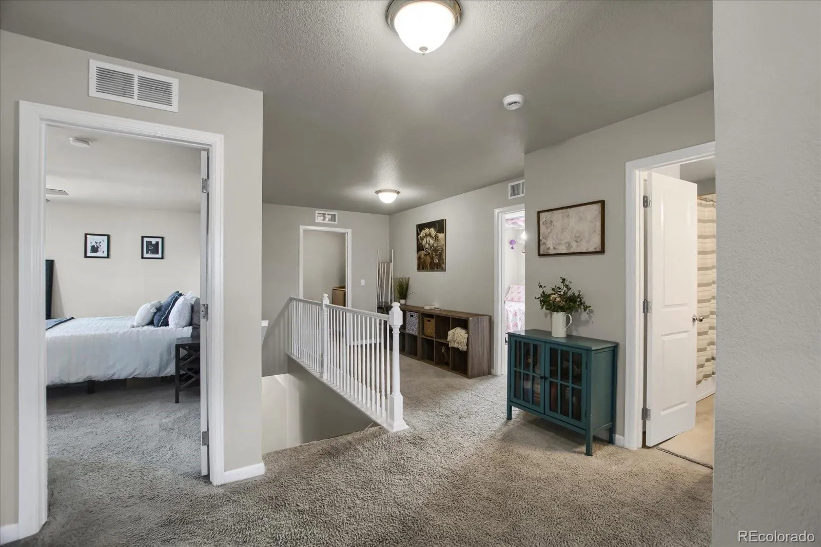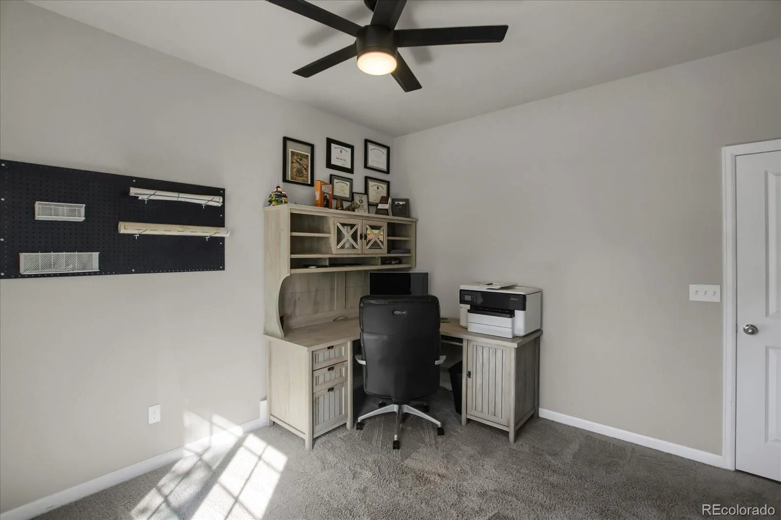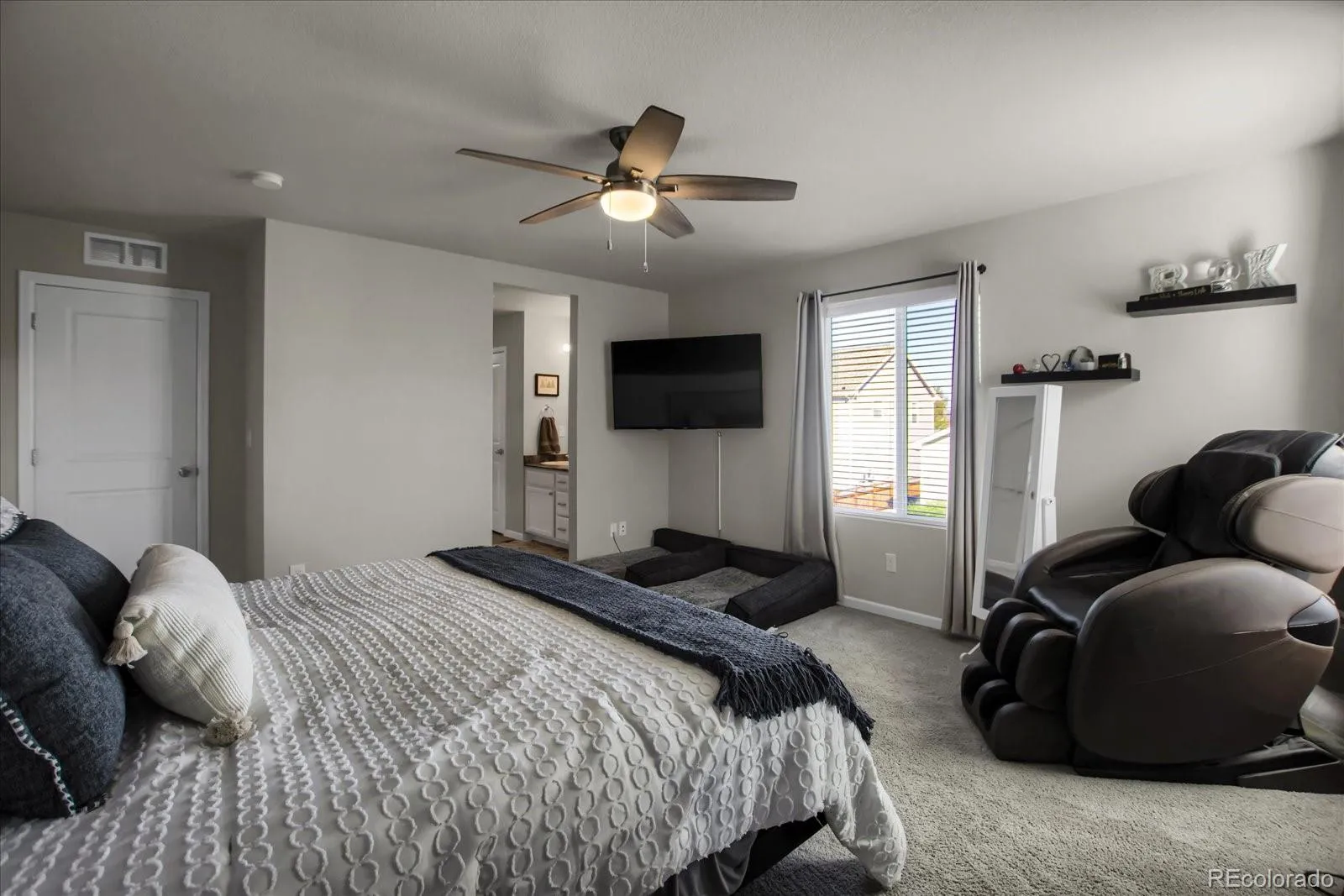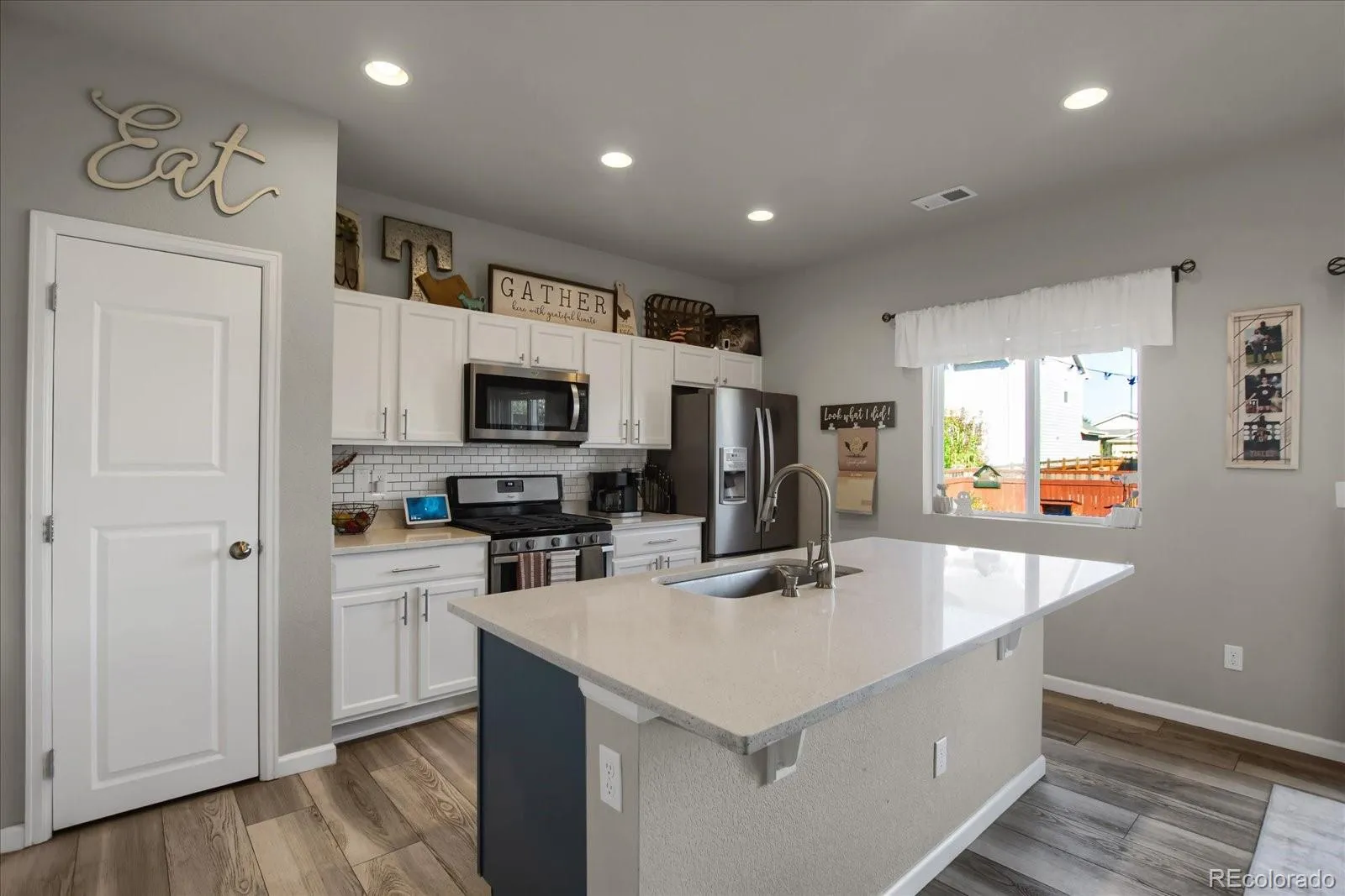 Welcome home to this beautiful and tastefully appointed home in ever-popular Wyndham Hill. The open floor plan allows convenience for everyday casual living as well as boastful entertaining. Beautiful white cabinets, quartz countertops, a tile backsplash and stainless steel appliances create a stylish, tasteful and functional kitchen with a massive island at the heart of it all. Modern lighting can be found throughout this like-new home. One bedroom and a full bathroom are conveniently located downstairs. The primary bedroom–including an en suite bathroom, 2 additional bedrooms an another full bath and the laundry room are all located upstairs. Completing the upstairs is the loft which can flex as an alternate living area, a gym, an office or just an area to relax. Built in shelving lines one wall of the loft. Curb appeal galore–the charming yard is fully fenced and comes with sprinklers in front and back. New roof in 2024. Convenient location, just minutes from I-25 for a quick commute to Denver, Boulder or Fort Collins. Just 5 minutes from the flavorful downtown of Erie. The neighborhood has a community pool, clubhouse, parks, playgrounds and trails. You are going to love living here!