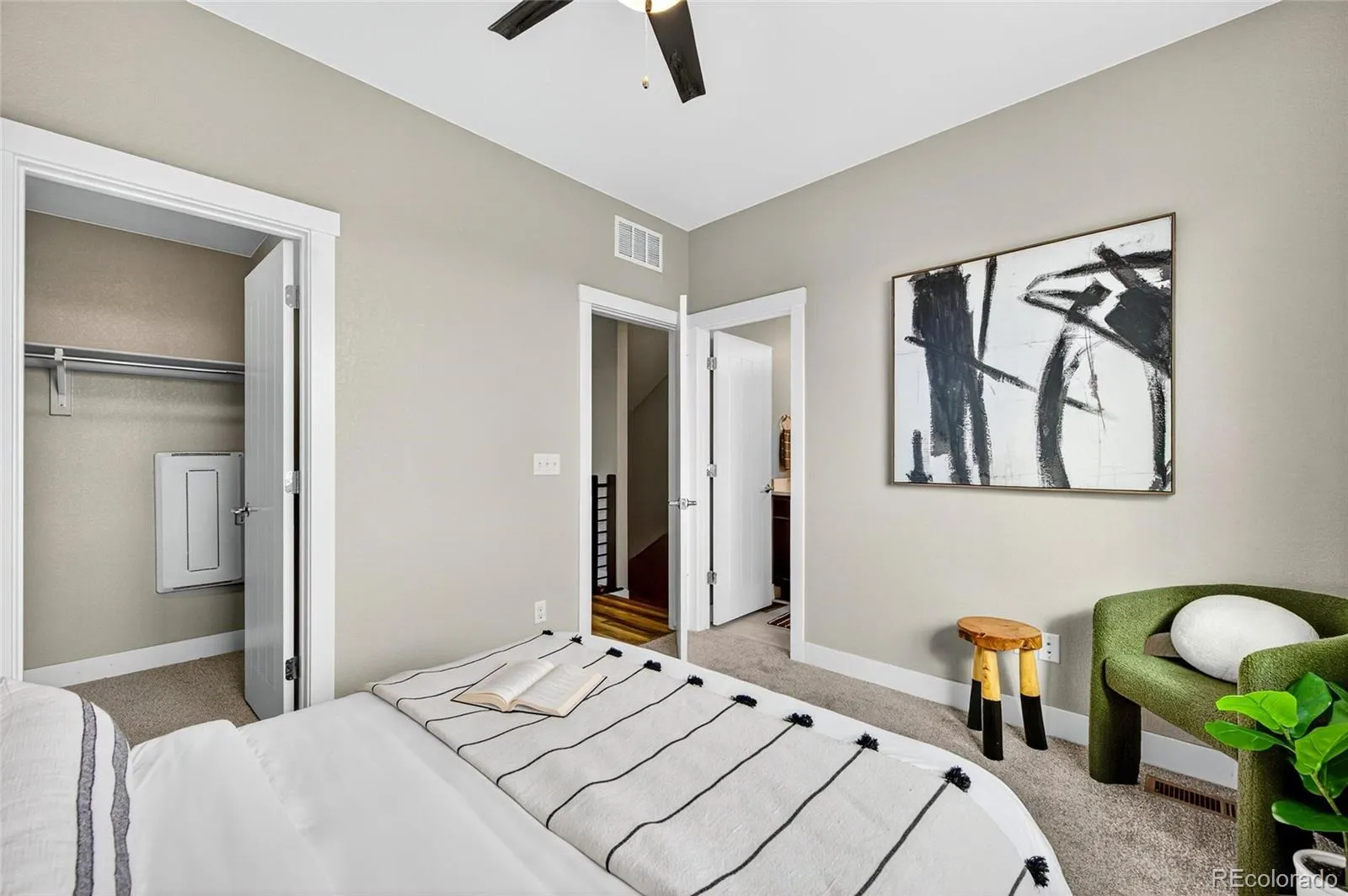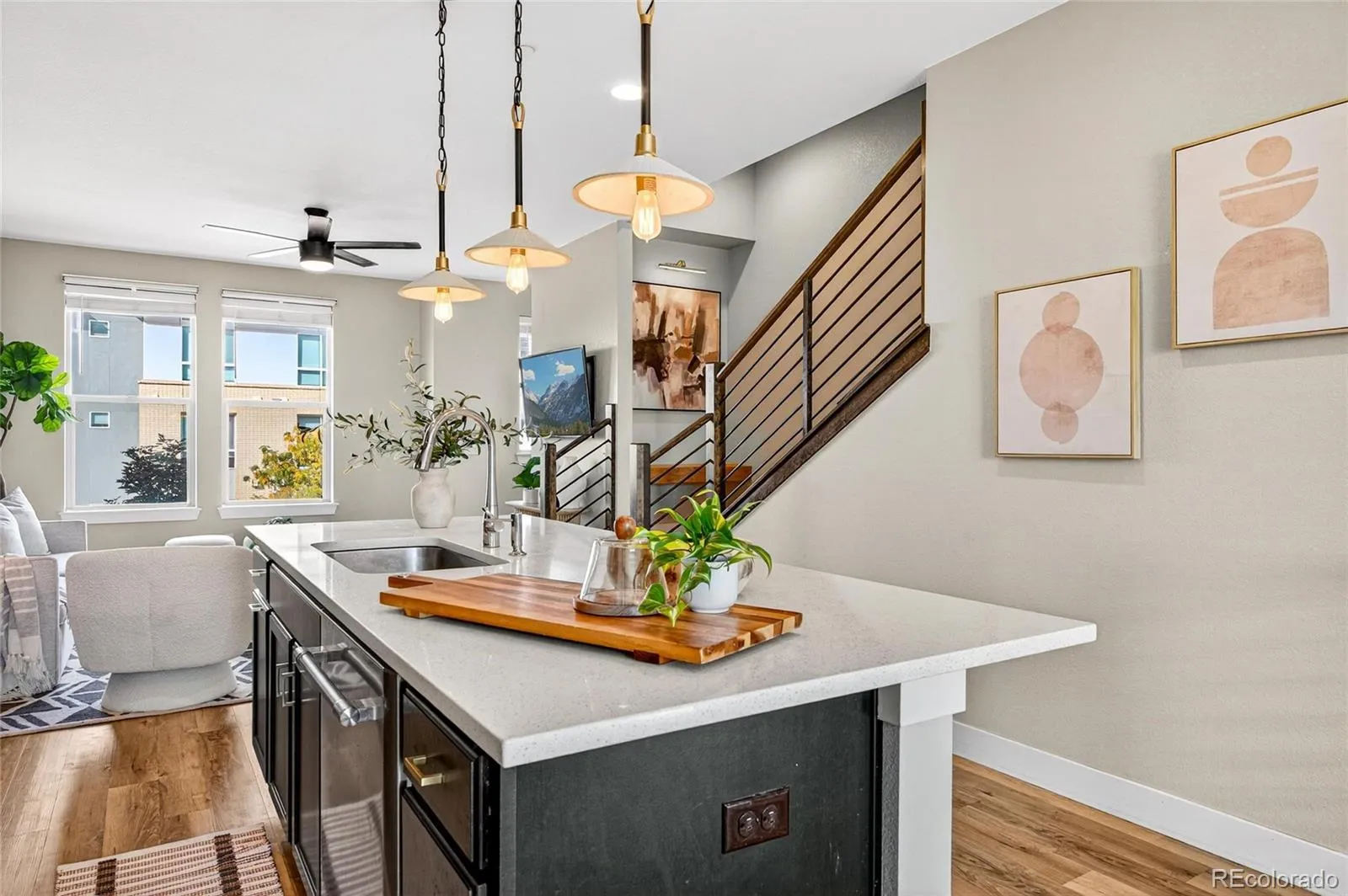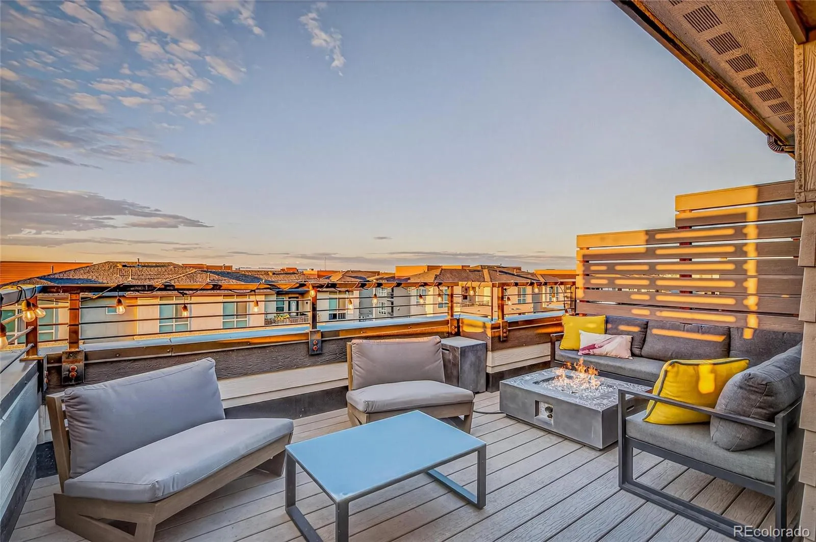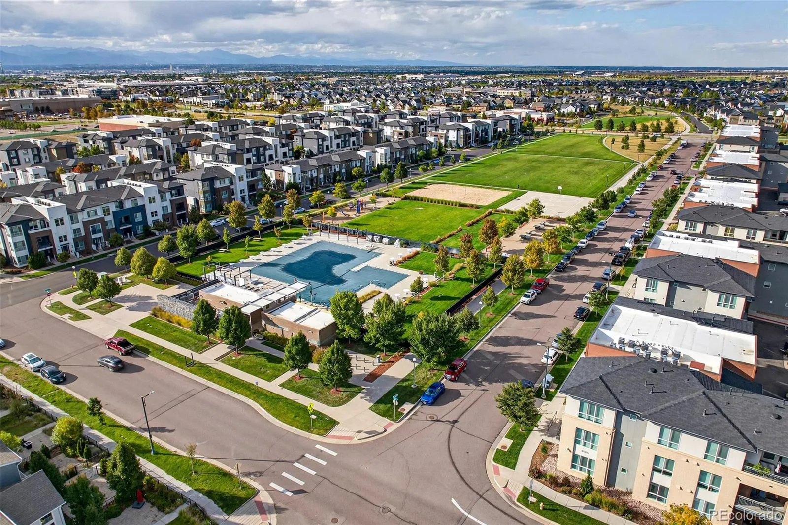 Welcome home to your urban retreat in Central Park with breathtaking rooftop views of both the city and the mountains! Inside, you’ll find thoughtful design and everyday ease collide in this two-bedroom, three-bathroom modern townhouse. Located just off the park, you’ll be greeted by a welcoming foyer and access to your two-car tandem garage, large enough to park your car and set up a home office, home gym or store all your Colorado toys. Upstairs, the main level features an open-concept design with an updated kitchen, separate dining space with a grilling deck, and a spacious living room anchored by a secret custom bar for effortless entertaining. A designer powder bath on this level makes even the practical moments feel elevated, while abundant natural light pours in from every angle. Upstairs, you’ll find that both your primary and guest bedrooms offer en suite full bathrooms with modern finishes, and your primary suite even has a Pinterest-worthy custom closet for your shoe collection. However, the real showstopper is waiting for you one more level up. The expansive rooftop deck has truly jaw-dropping 360 degree city and mountain views, and it’s partially covered so that you can enjoy sunsets all year-round and see just about every fireworks show in town. With this blend of style, functionality, and unbeatable access to the Light Rail, trails, parks, and neighborhood restaurants, this home doesn’t just check the boxes – it redefines what the new urban suburb lifestyle could really feel like. Not to mention, you’ll be walking distance to Colorado’s first Wayfair store in 2026!! Don’t miss your chance to see it today!