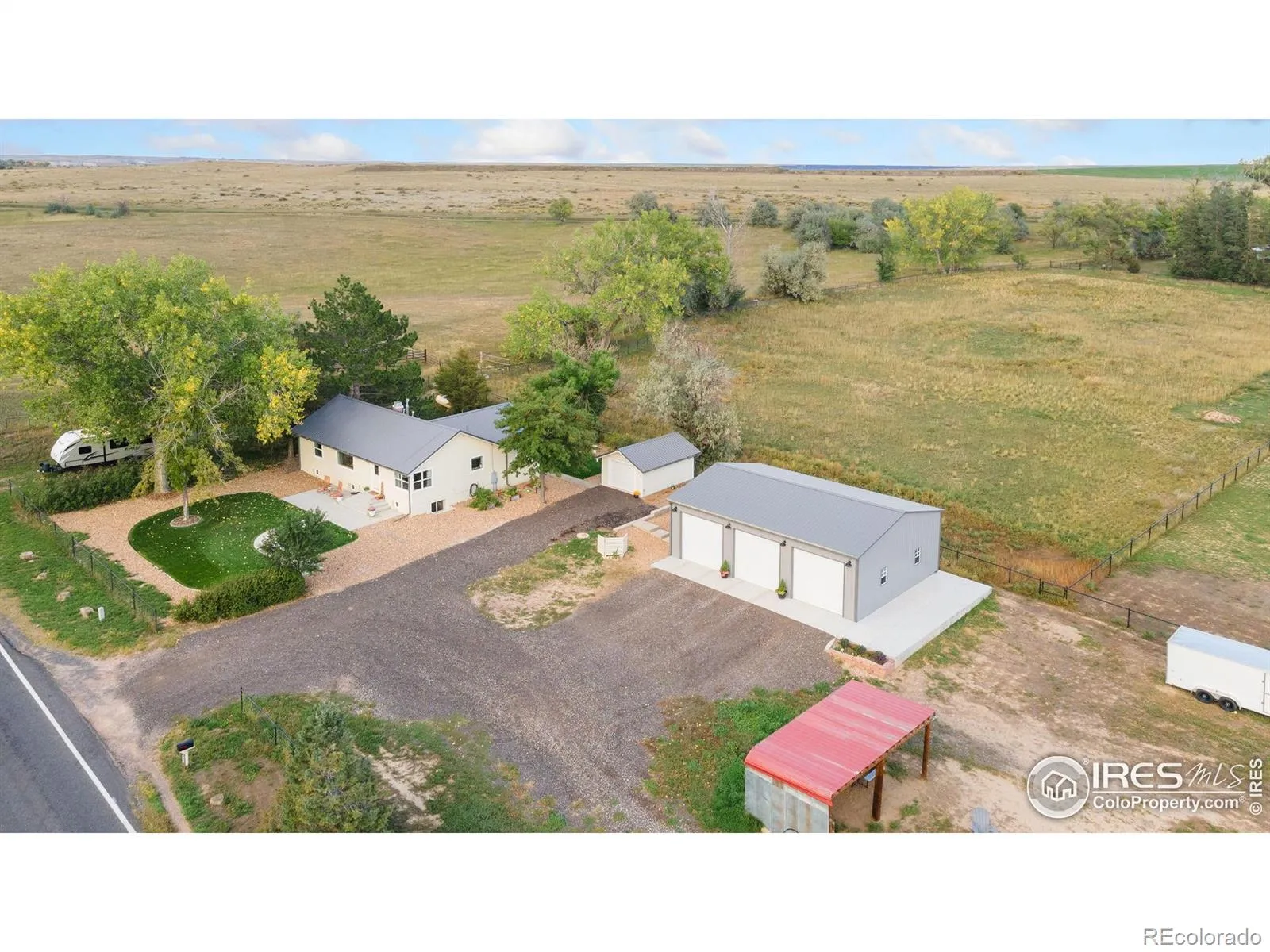 Welcome to 42068 County Road 15 – a beautifully remodeled ranch-style farmhouse that combines modern comfort with country charm on 1.27 acres. Conveniently located just minutes from both Fort Collins and Timnath, this property offers the serenity of rural living with easy access to nearby amenities. The home begins with a spacious front porch and opens into a bright, inviting living room that sets the tone for the rest of the thoughtfully updated interior. The eat-in kitchen is filled with natural light and stylish finishes. Adjacent to the kitchen is a versatile flex space that can function as a butler’s pantry, home office, or study to suit your needs. The main-floor primary suite includes a spacious en suite bathroom with a double vanity and a large walk-in shower. A second full bathroom completes the main level. The finished basement expands the living space with a large rec room, a comfortable family room, three additional bedrooms, and another full bathroom-perfect for flexible living arrangements. Outside, the property includes a new detached 3-car garage, a shed that could serve as an additional 1-car garage, and a loafing shed. The wide-open views of the mountains create a truly special setting. This is a rare opportunity to enjoy the best of both worlds-peaceful country surroundings with close proximity to Fort Collins and Timnath.