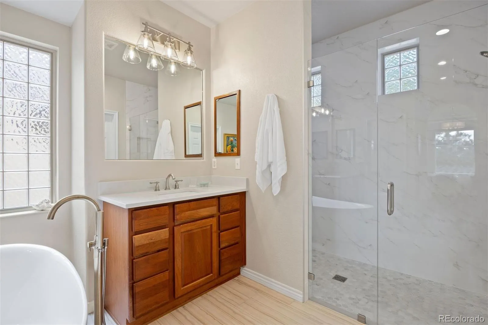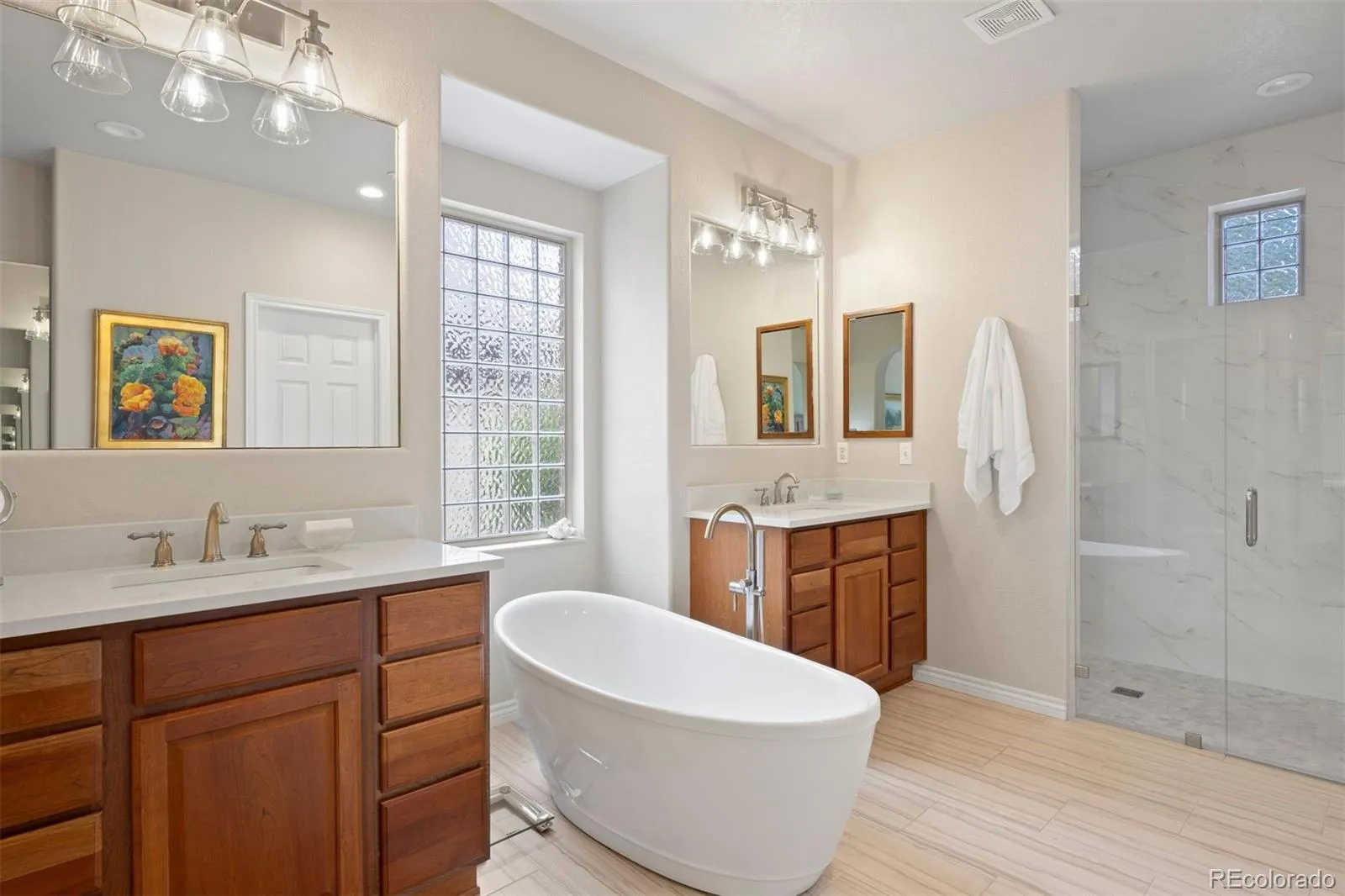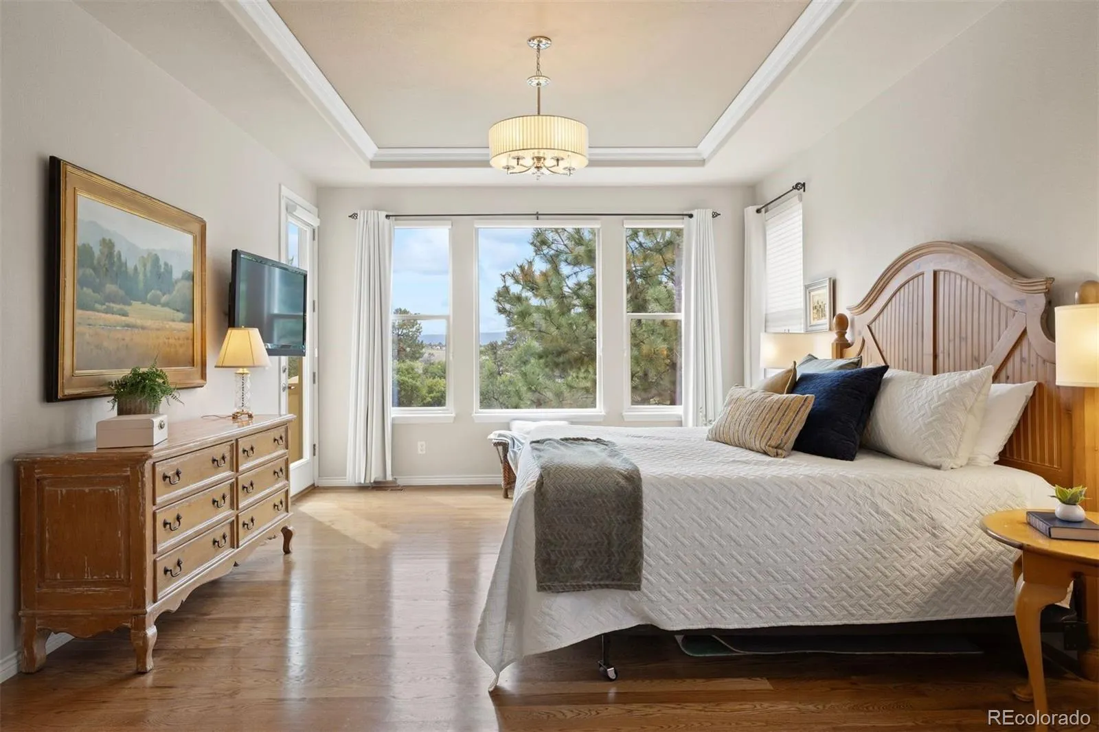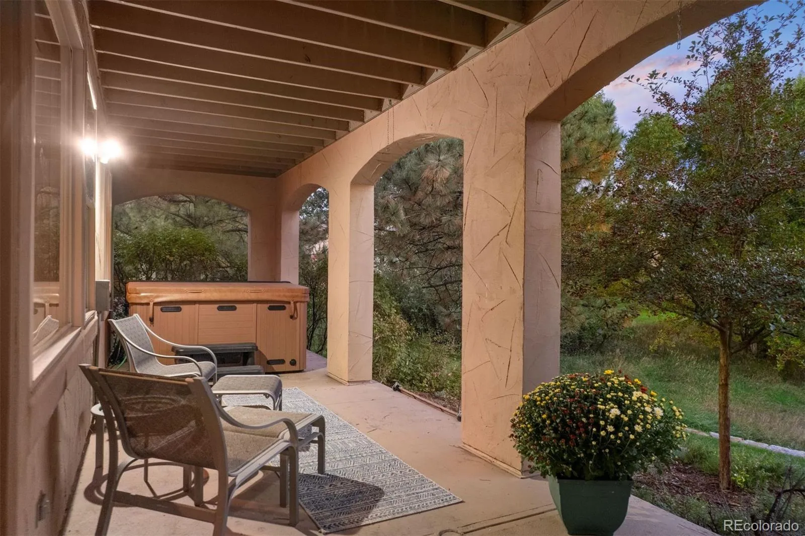 Located inside the coveted, gated Village at Castle Pines community, this residence is perfectly poised to capture the true essence of Colorado living. Showcasing mountain views from almost every room, backing to open space, and just a short walk to The Village restaurants and shops, the Canyons sports complex with tennis, pickle ball, pool, and event pavilion, and The Village Lakes private fitness center, this 3 bedroom | 3 bathroom property is hard to top. Welcoming your guests with a distinctive foyer, dramatic domed ceiling, and curved bar that creates a striking centerpiece for entertaining, this home immediately says “welcome”. An elegant dining room sits just beyond the foyer, and pairs seamlessly with an office off the entry. Featuring a high efficiency remote control fireplace and expansive windows that showcase the views beyond, the great room is the heart of this beautiful residence, and the kitchen, designed for maximum main level functionality, features warm wood cabinetry, granite counters, and a generously sized island. The primary suite is a serene retreat with rich white oak floors, and picture windows framing the inspiring vistas, while the extensively updated primary bath offers dual vanities, a freestanding soaking tub, and a glass-enclosed shower with a sleek tile surround. Moving outside, off the kitchen and connected to the primary bedroom, the private deck provides the perfect place to relax and watch sunsets over the mountains. A second bedroom with nearby full bath, a well-appointed laundry room, and a 3-car garage complete the main level. Downstairs, the walkout lower level extends the home’s livability with a spacious recreation room, additional guest bedroom with its own bath, and a vast unfinished space ideal for future expansion. With its timeless exterior, classic neutral interiors, 1-1/4″ double glazed insulated windows, and sweeping views at every turn, this residence offers a rare opportunity to live beautifully—inside and out.