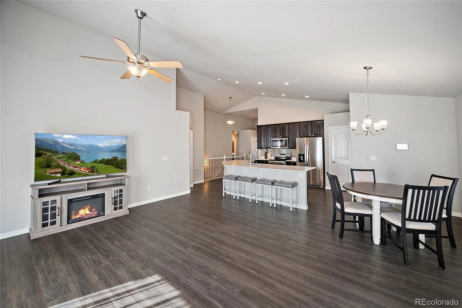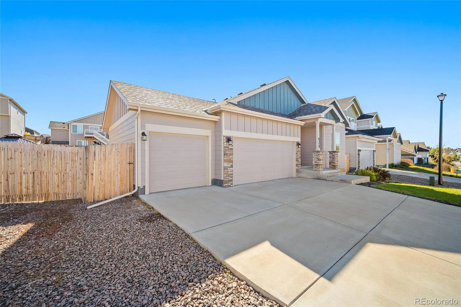 Welcome to this spacious single-family rancher in the desirable Lorson Ranch community. Built in 2019 and meticulously cared for, this home offers over 3,100 square feet of living space with main-level living and a fully finished basement. From the moment you step inside, you’re welcomed by an open-concept layout, vaulted ceilings, and abundant natural light that creates a bright and inviting atmosphere. The kitchen is the true heart of the home, featuring dark cabinets, light countertops, and an oversized island perfect for cooking, entertaining, or gathering. The living areas flow seamlessly, and with five bedrooms and three full bathrooms, there’s plenty of room for everyone. The spacious primary suite provides comfort and privacy, while the basement expands your possibilities with huge recreation rooms, tons of storage, and brand new carpet. Outside, the fenced backyard offers a blank canvas with space to make it your own, while the 3-car garage provides ample parking and storage. Located in Lorson Ranch, this well-kept community offers parks, open spaces, and trails, with quick access to shopping centers, military bases, and major highways. This home is the perfect blend of style, space, and convenience—ready for you to make it your own.