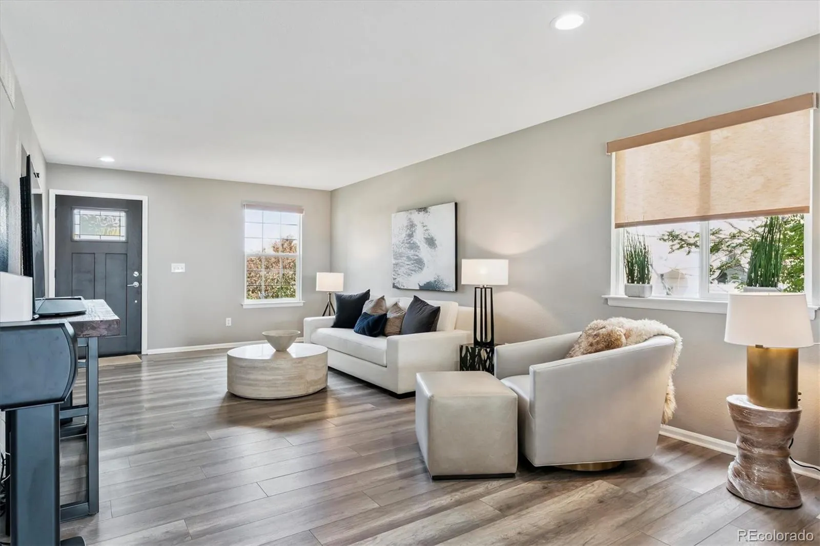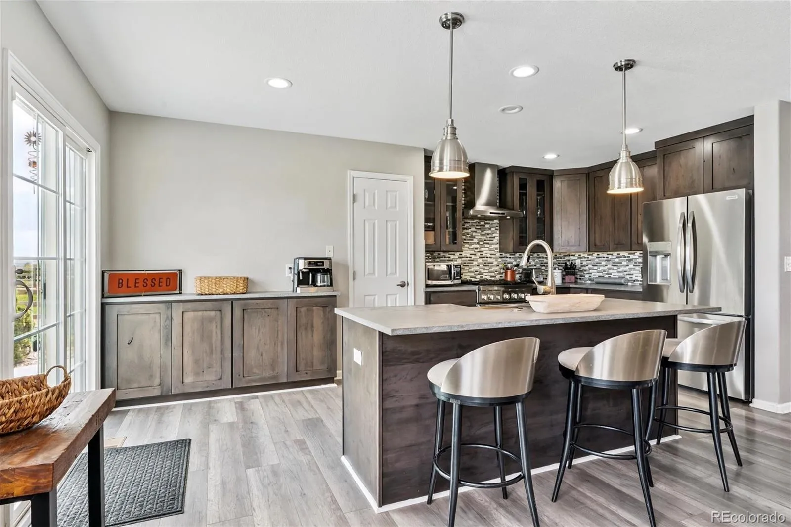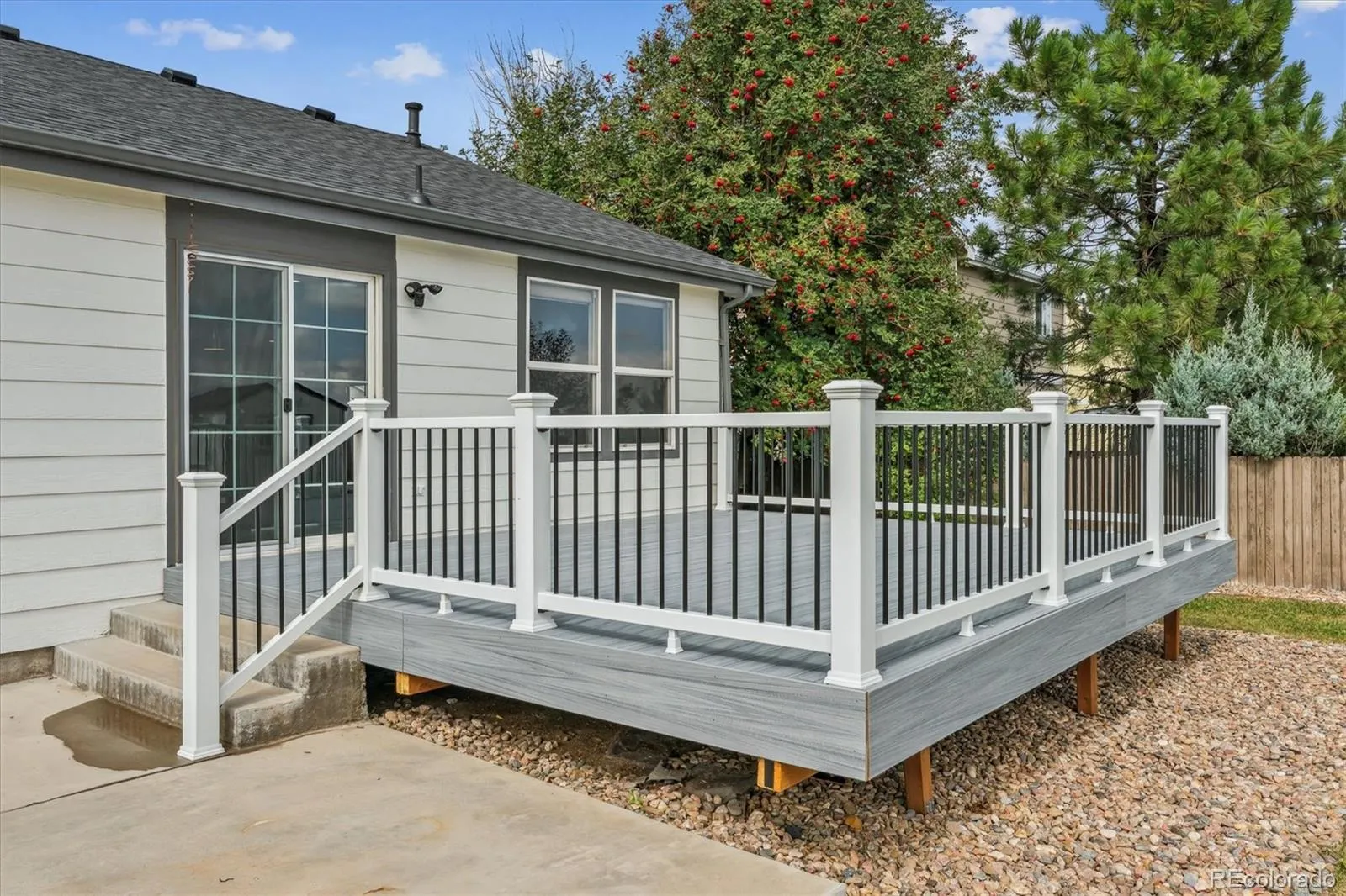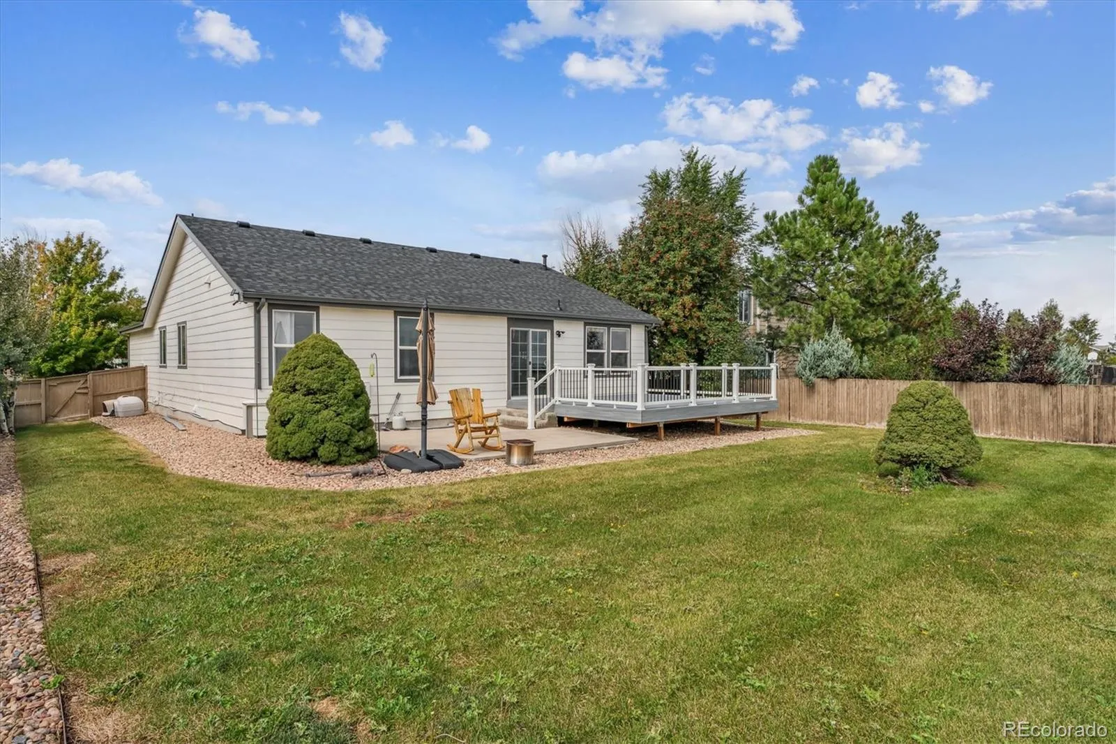 Home is where your heart is—and this one will steal it from sunrise to starlit night! Imagine starting your day with wide open views and ending it under endless Colorado skies, with 681 acres of dedicated open space right beyond your backyard. This stylish one-level home has been beautifully updated with warm, inviting colors and new luxury vinyl flooring that flows throughout the main level. The open layout brings together a bright great room, dining area, and remodeled kitchen featuring a Thermador gas range, stainless hood, farm sink, center island with barstool seating, and picture-perfect views through every window. There’s a main floor office for working from home, three total bedrooms including a primary suite with walk-in closet and five-piece bath, plus a laundry room complete with washer and dryer. Downstairs, the finished basement offers a flexible retreat for movie nights, workouts, or weekend guests with an additional bedroom and ¾ bath. Step outside to a brand new composite deck that’s ready for entertaining, a spacious yard for games, a handy shed for tools, and a 2-car attached garage. Close to schools and scenic trails, this is easy living with room to breathe and explore.