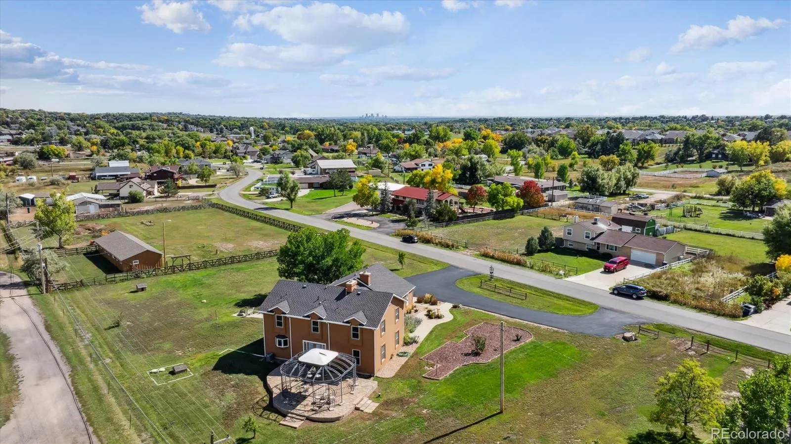 1.94-acre side-by-side double lot in west Arvada zoned A-2 that allows for horses and other animals. With ample fencing and a 4-stall barn with tack room, this property is a horse lover’s dream! The 2,862 sqft 2-story stucco home has a freshly painted interior and brand new carpeting. The main floor has hardwood floors throughout seamlessly joining all the generously sized rooms. The formal living room has a wood burning fireplace and adjoins the formal dining room. The family room has a wood burning fireplace and vaulted wood beam ceiling. The spacious kitchen has a breakfast nook with bay window, tons of cabinetry & countertop space, and stainless steel appliances including a Thermador gas cooktop. Rounding out the main floor is a half bath and the laundry room with utility sink. The upper level features the primary bedroom suite with walk-in closet and 5-piece bath with jetted tub, 3 additional bedrooms, a full bath with double sinks, and a walk-in hall closet. 2 furnaces. A/C for upper level only. Enjoy multiple outdoor living spaces including the flagstone patio with iron gazebo off the dining room and the covered patio that walks out to the firepit off the family room. Oversized 864 sqft, 3 car attached garage and plenty of extra parking in the circle drive. The property is serviced by 2 wells and septic. Conveniently located to all that Arvada has to offer such as the Arvada Indoor Equestrian Center, Apex Center, multiple shopping & dining options, Jeffco schools, and highway access to Downtown Denver or the mountains.