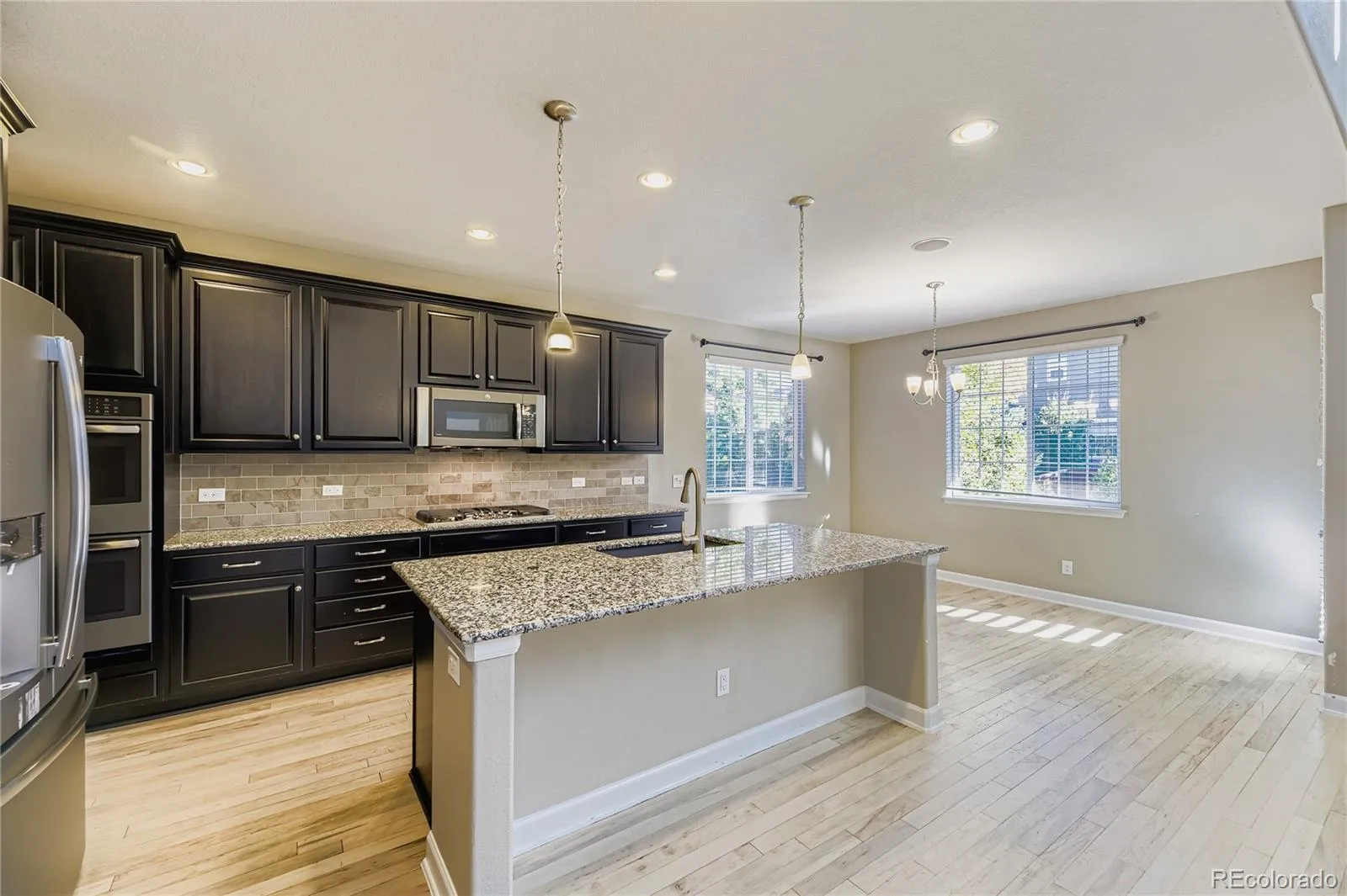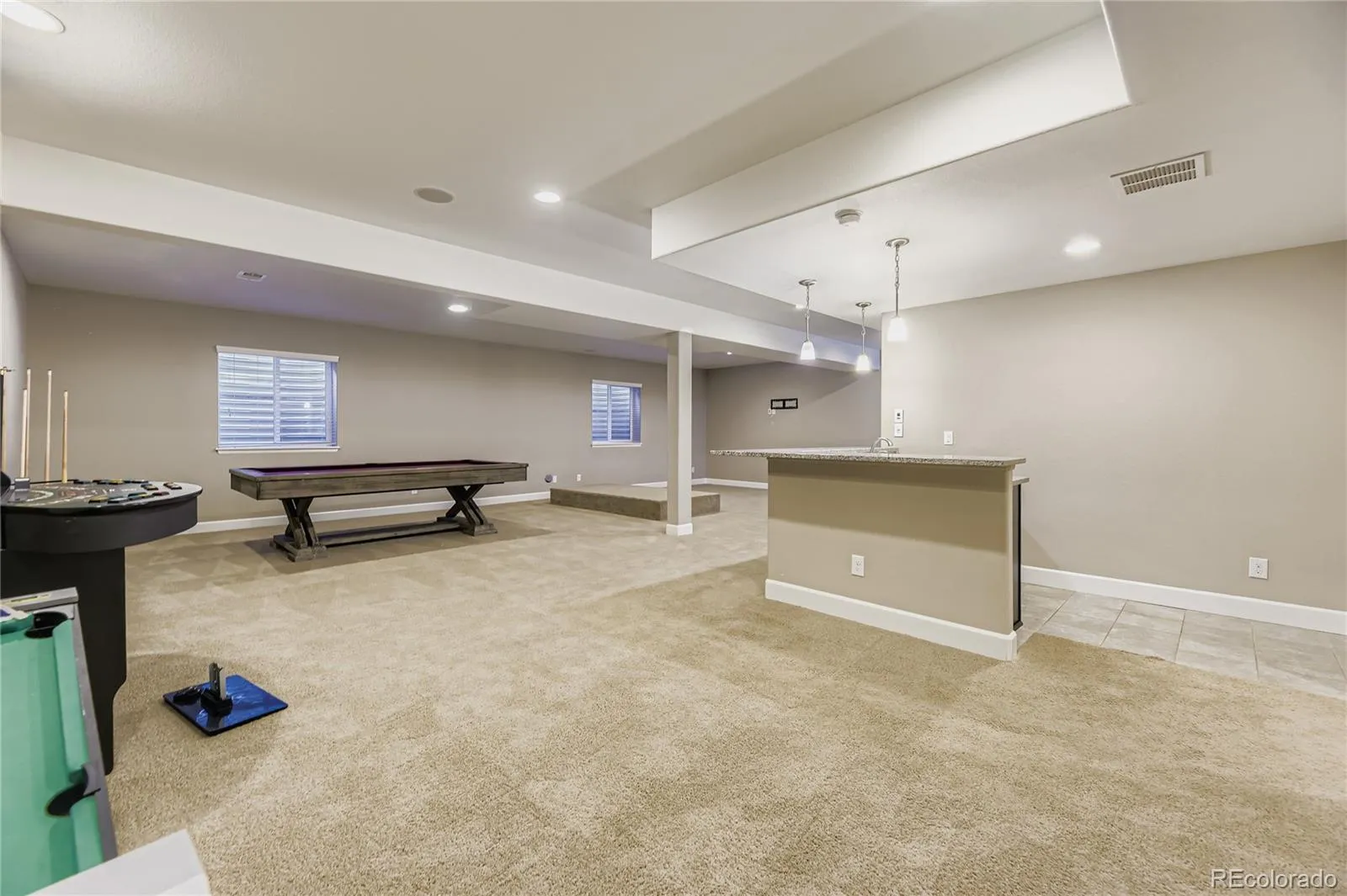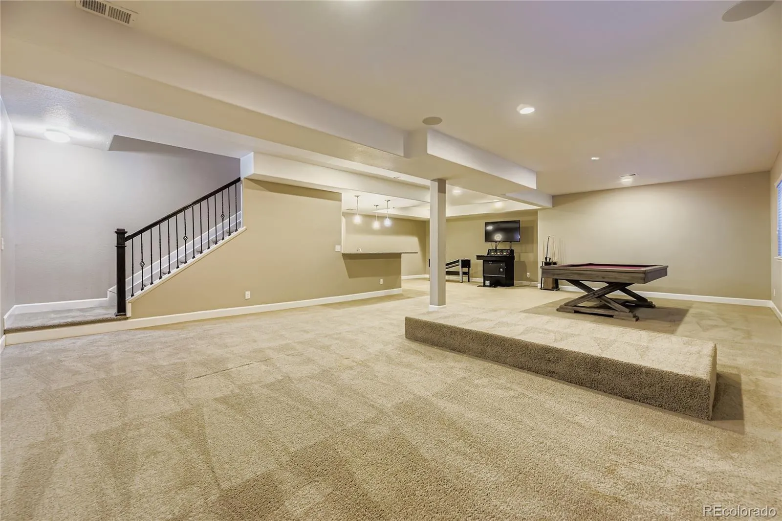 Beautiful Richmond-built two-story home with a full finished basement in the desirable Stepping Stone neighborhood! Wood floors flow throughout the main level, where the heart of the home shines in the spacious kitchen featuring a large island, double ovens, gas cooktop, granite countertops, walk-in pantry, and a butler’s pantry with wine/refreshment refrigerator. Enjoy both formal and casual dining areas for everyday living or entertaining. The inviting living room boasts vaulted ceilings and a cozy gas fireplace, while the front office offers custom built-ins—perfect for work or study. The main-floor laundry room includes great storage and a utility sink. The luxurious main-floor primary suite has a beautiful five-piece en-suite bath with double vanities and a large walk-in closet with custom organizers. Upstairs, a versatile loft connects two secondary bedrooms and a full bath, ideal for a private retreat, play area, or media space. The finished basement is designed for entertaining, with a large open living area ready for a theater setup, wet bar with wine fridge, pool table area, guest bedroom, and a ¾ bath. Large egress windows let in plenty of natural light, and there’s still room to expand in the unfinished utility area. The backyard feels private with a spacious patio, hot tub, exterior speakers, and setup for a television—perfect for relaxing or watching fall football. Oversized finished garage with EV charging station and 12’ ceilings. Enjoy the community pool, clubhouse, parks, and trails nearby. This is a beautiful home that just needs a little shine, and the price reflects the opportunity!