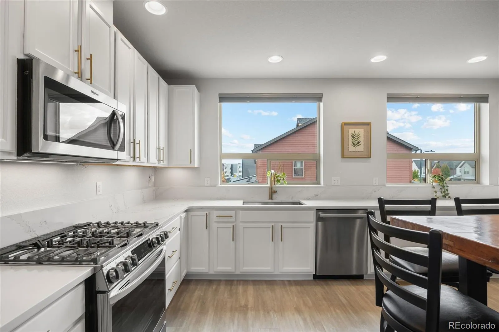 Welcome to 9110 E. 52nd Street—an updated townhome in the heart of Northfield! This 2bed/3bath bath home offers newly painted cabinets, fixtures and hardware in the kitchen and upstairs bathrooms, plus new countertops and appliances. The kitchen provides tons of counter space + storage with windows that flood the space with natural light. The spacious dining/living room leads you directly out to the patio – which is the perfect space to relax all year round! Upstairs you will find the primary bedroom that features vaulted ceilings, mountain views and a walk in closet. The secondary bedroom makes for an ideal guest room and/or home office. Laundry is conveniently located on the second floor as well! Don’t forget to check out the 2-car attached garage and additional storage on the first level. This location puts you just steps from trails, parks, restaurants, coffee shops, and all the amenities Central Park has to offer. This is low-maintenance living in one of Denver’s most vibrant communities!