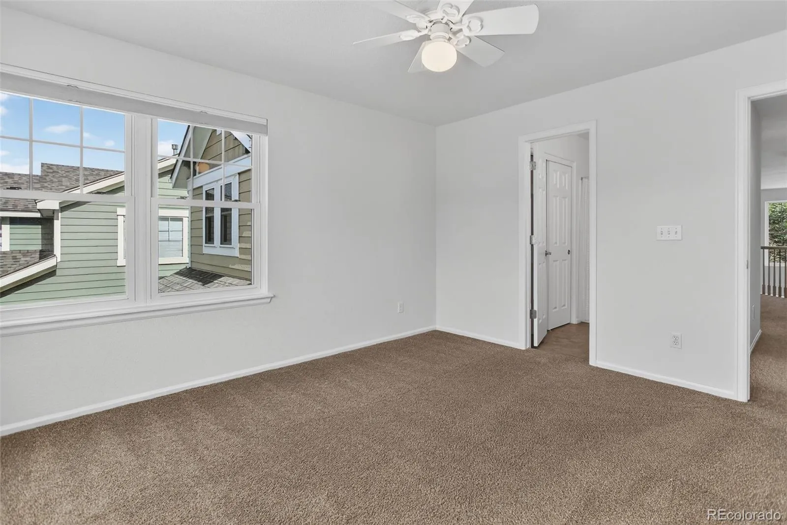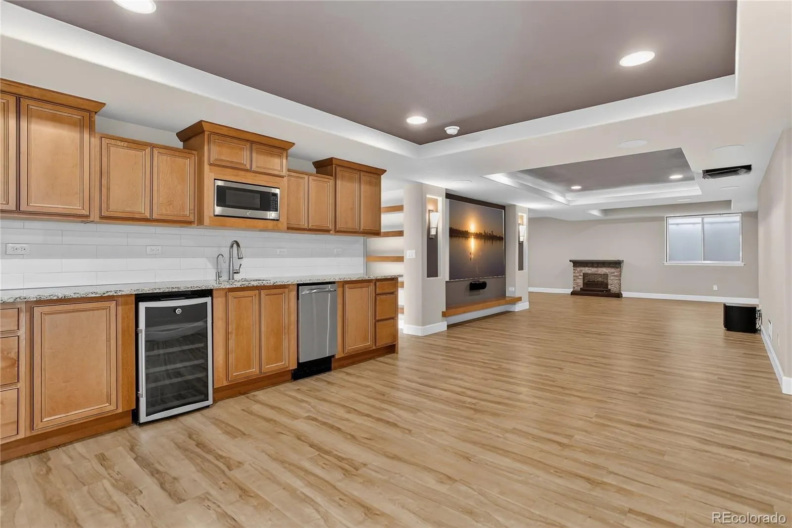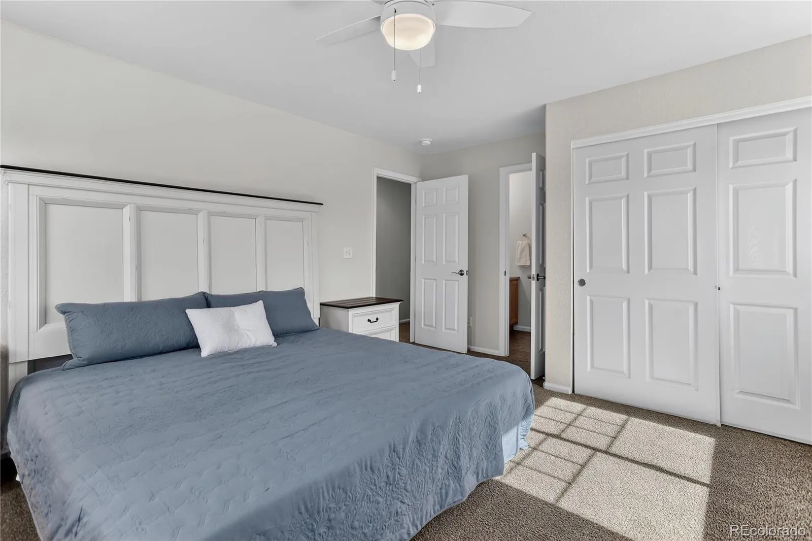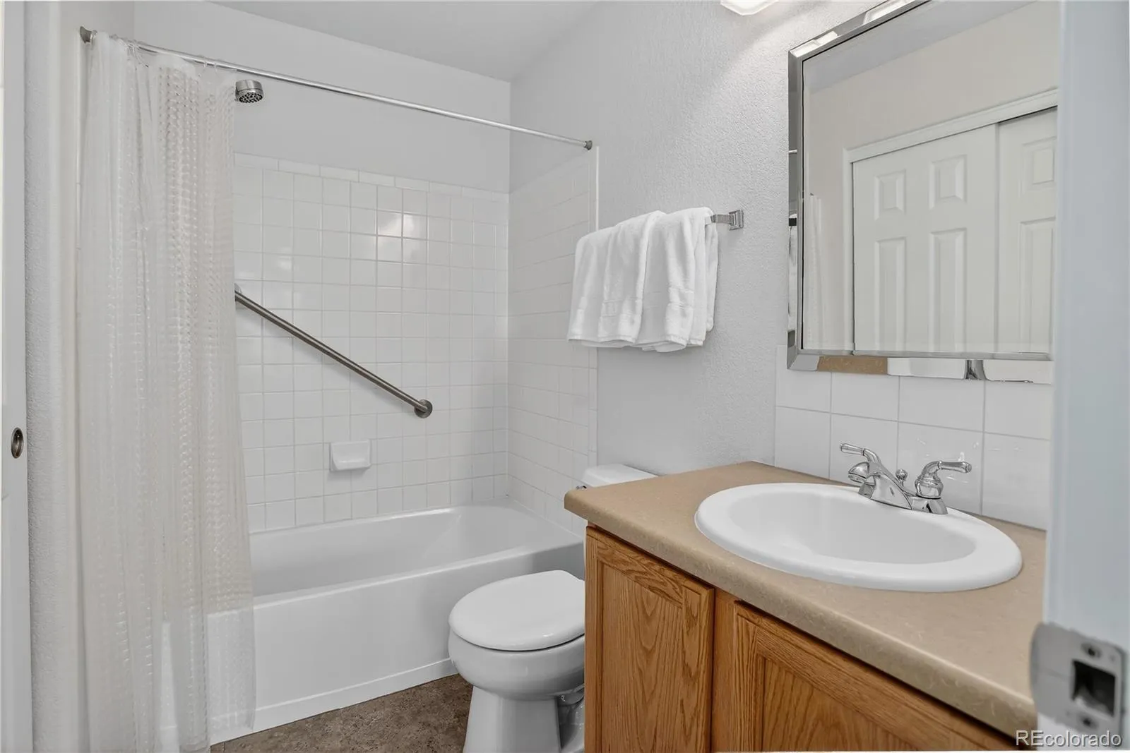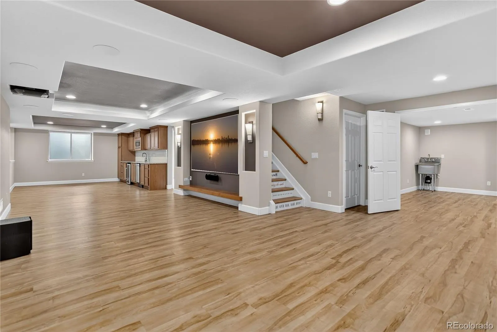 The ideal floor plan offers four bedrooms upstairs—two guest rooms sharing a full bath, one with a private ensuite, plus an additional conforming bedroom in the finished basement. The main floor office with glass French doors provides the perfect setting for remote work or study. The finished basement is designed for entertaining and relaxation, featuring a spacious rec room with a home theater and wet bar, a ¾ bath, and a versatile bonus room, plumbed with a utility sink—ideal for a hobby space, gym, or future bedroom addition. Enjoy outdoor living at its finest on the custom covered patio, complete with a spa and the beautifully landscaped yard is filled with mature trees and lush greenery. This peaceful oasis invites you to enjoy Colorado’s four seasons! Enjoy the fully owned solar panels for energy efficiency and low utility bills. This home blends designer quality, functional luxury, and unbeatable location, this Stonegate gem is it!