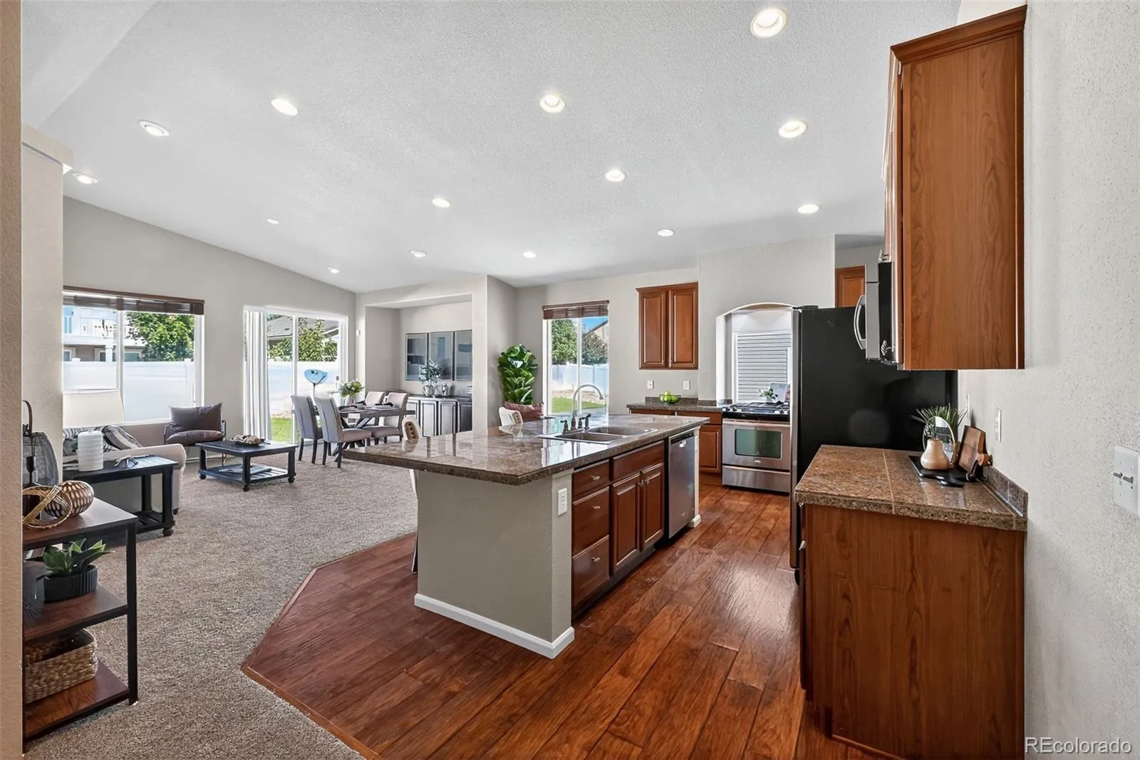 Welcome to this spacious 4-bedroom, 3-bath home offering desirable main-level living and over 3,100 sq ft of comfort and style. Featuring an open-concept floor plan, this home is perfect for both everyday living and entertaining. Upgrades include a new tile roof (2019), new carpet, and a new water heater (2023). The well-equipped kitchen comes with all appliances included, while the living areas provide an easy flow and plenty of natural light. Enjoy the convenience of abundant storage, an exterior shed, and a thoughtful layout designed with functionality in mind. Located just minutes from Fort Carson and I-25, this home offers quick access to shopping, dining, and commuting. Truly move-in ready—don’t miss your chance to call this beautiful Cumberland Green home your own!