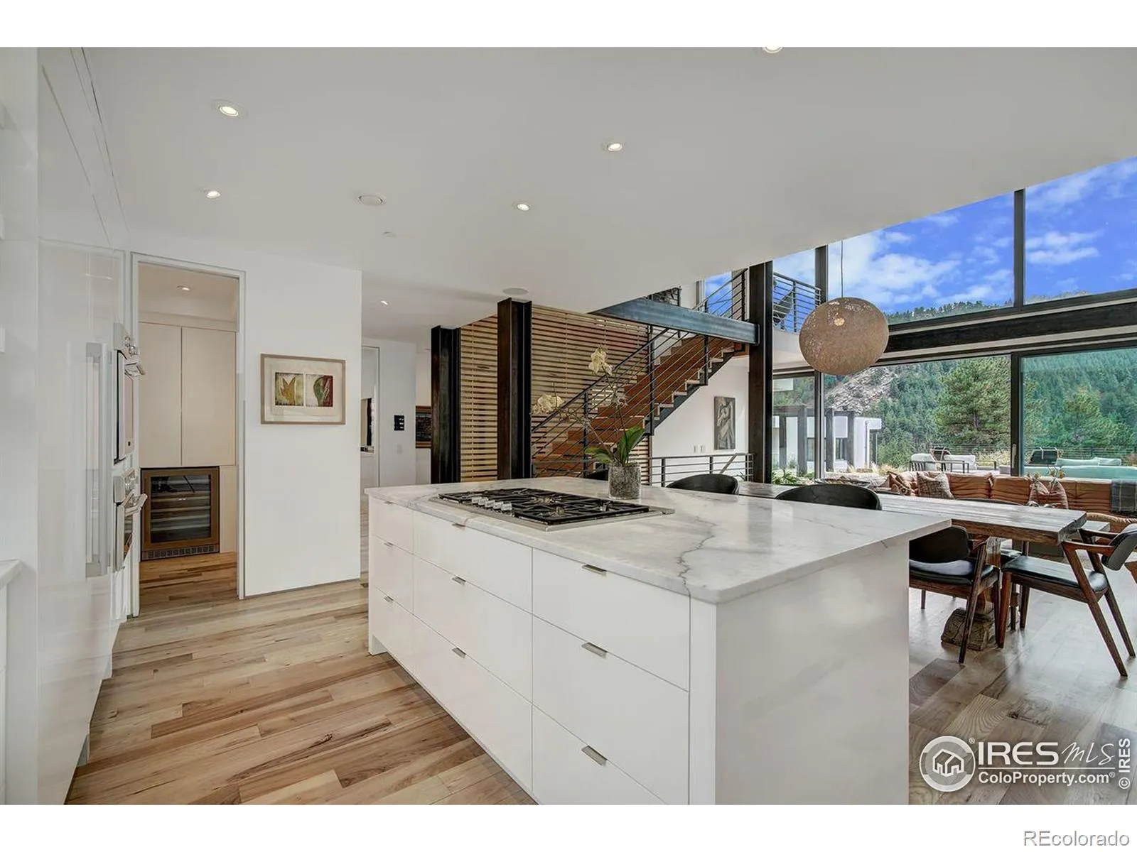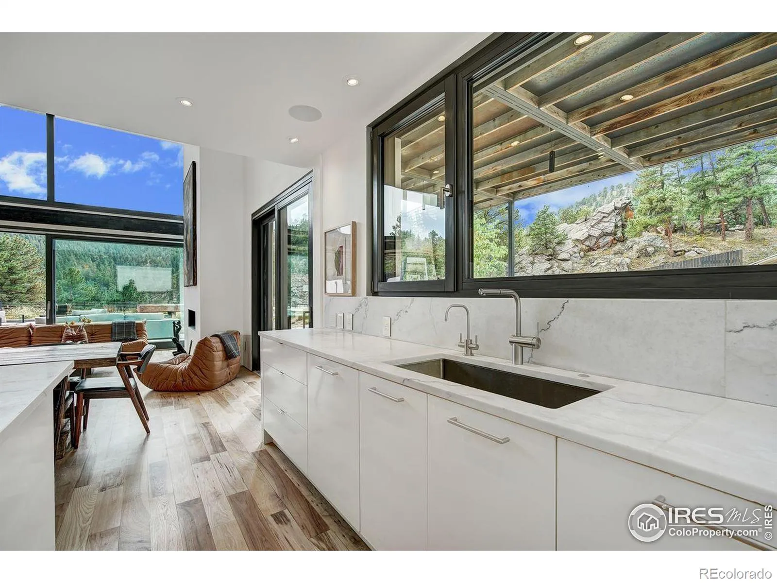 Welcome to Lion Point, an ultra-luxury mountain estate where contemporary design meets unparalleled privacy and sustainability, just 10 minutes from iconic Pearl Street. Set on 14.77 acres of pristine land, this exceptional property offers breathtaking south-facing views, dramatic rock outcroppings, and a 1,000-year-old Ponderosa Pine, blending nature’s beauty with modern elegance. Designed with German Passivhaus principles, the estate boasts superior energy efficiency with insulated walls, triple-pane windows, airtight construction, and a 9.96 kW solar array, reducing its ecological footprint while maintaining peak performance. The main residence features 6 spacious bedrooms, 4.5 bathrooms and an open-concept chef’s kitchen outfitted with Thermador appliances, custom lacquer cabinetry, and Yule marble countertops, perfect for intimate or large group entertaining. The great room offers soaring ceilings and floor-to-ceiling windows, showcasing the stunning mountain landscape. A private media room elevates the entertainment experience, while the opulent master suite includes a spa-like bath, walk-in closet, and dedicated office space. Throughout the home, sustainable materials like formaldehyde-free insulation and low-VOC finishes create a healthy indoor environment. Savant smart home technology controls lighting, climate, security, and audio. Outdoors, enjoy the pristine emerald pool, custom copper hot tub, steam sauna, and fully equipped kitchen. The beautifully landscaped grounds feature automated irrigation, ambient lighting and 100% metal planter beds creating a peaceful retreat. In addition to the main house there’s a well-appointed ADU with an additional bedroom, bathroom and kitchen. Additional amenities include geothermal heating, radiant floors, fire-resistant exterior materials, and potential for expansion. Lion Point offers a one-of-a-kind sanctuary, combining luxury, sustainability, and modern design just moments from Boulder’s cultural and dining scene.