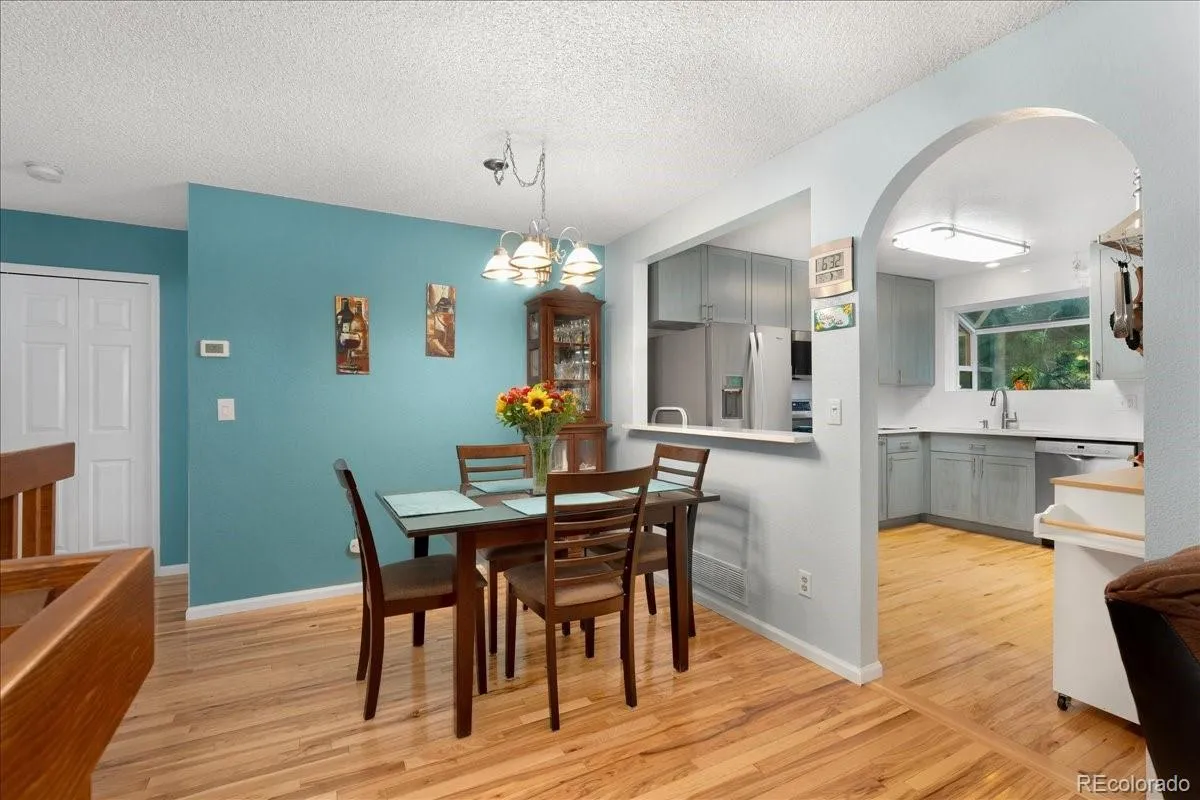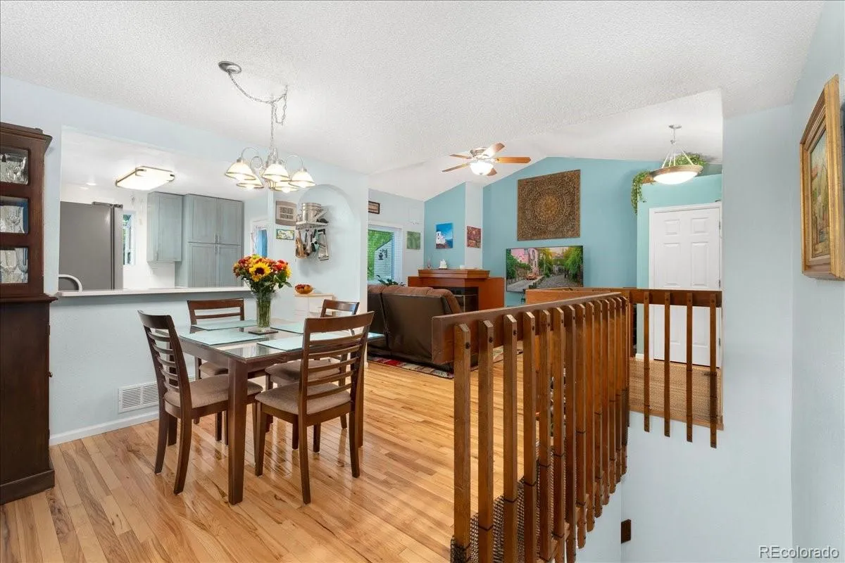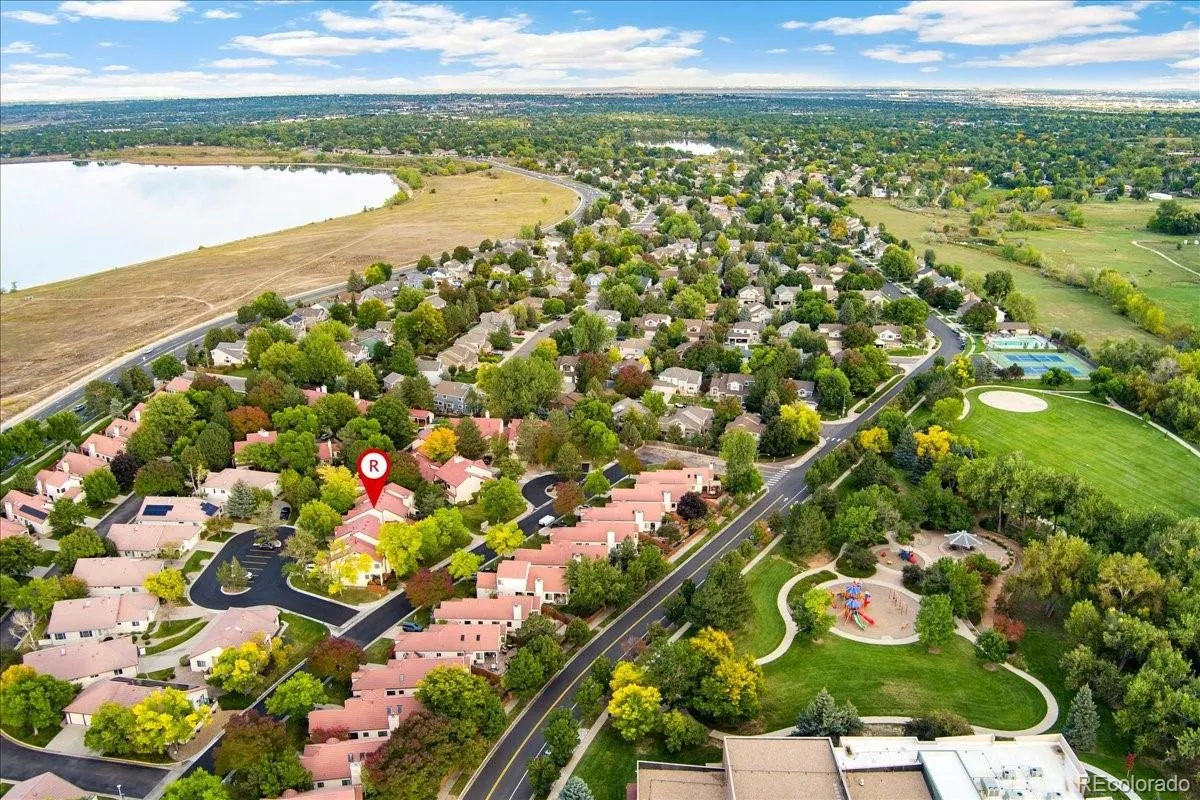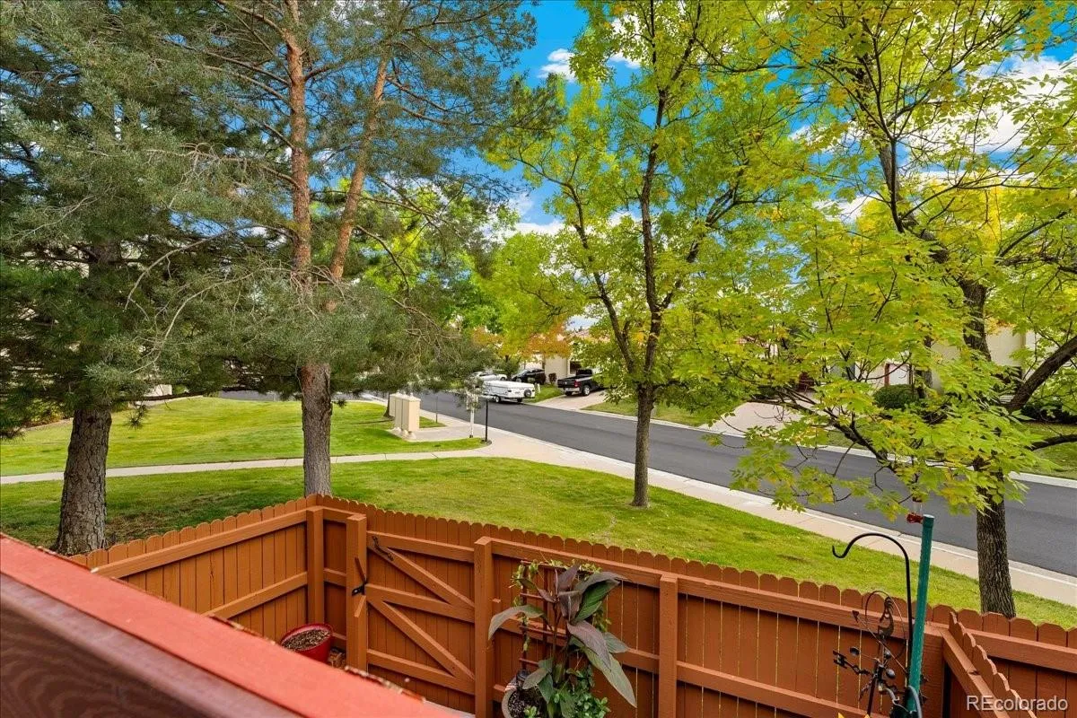 Welcome to this light-filled home in the heart of Arvada, where soaring ceilings and an open floorplan create a warm, inviting atmosphere. At the heart of the home is a fully remodeled chef’s kitchen with quartz countertops, chic tiled backsplash, upgraded drawers, stainless steel appliances, pullout pantry shelving, spice pullout, and a rolling prep island. Designed with both form and function in mind, this kitchen is a dream for anyone who loves to cook, entertain, or simply enjoy a well-appointed space. From here, step out to your private fenced yard and deck, framed by mature trees for added privacy, the perfect spot for morning coffee or evening cocktails. The living room features hardwood floors, a dramatic wood-burning fireplace, and abundant natural light, making it the perfect place to gather with family or friends. The main floor primary suite offers a ceiling fan and a spa-like en-suite with porcelain tile floors, double vanity, tiled shower with niche, and private water closet. A second bedroom and beautifully finished full bath with tiled surround provide comfort for family or guests. The finished basement, with an egress window, closet area, and a plumbing rough-in for a third bathroom, adds flexibility for a third bedroom, media room, gym, or hobby space. Washer and dryer are included for convenience. Additional upgrades bring peace of mind: new carpet, fresh paint, newer windows, and a fully insulated garage door. Recent community updates include a new roof (2024), exterior paint (2022), pool refinishing and equipment (2023), fence repairs and paint (2025), and street repaving (2025). Best of all, special assessments have already been fully paid by the sellers. This small, welcoming community is just steps from Standley Lake, Michael Northey Park, and the Dry Creek Trail, perfect for outdoor adventures. Friendly neighbors, thoughtful updates, and a quiet setting make this condo a truly inviting place to call home.