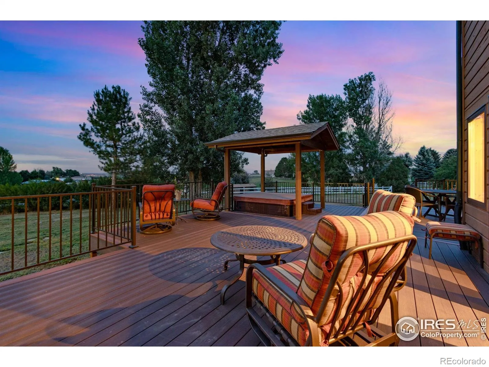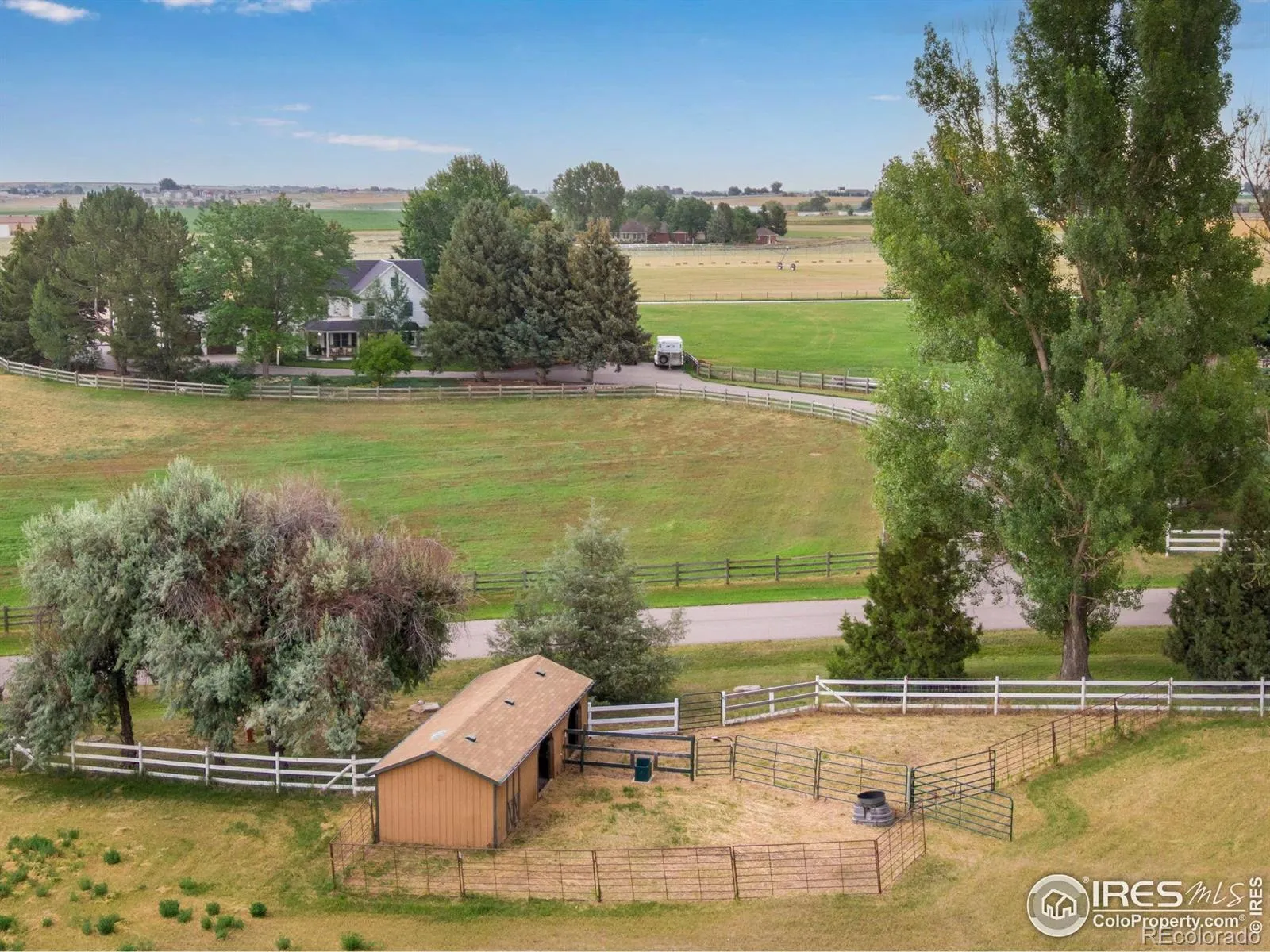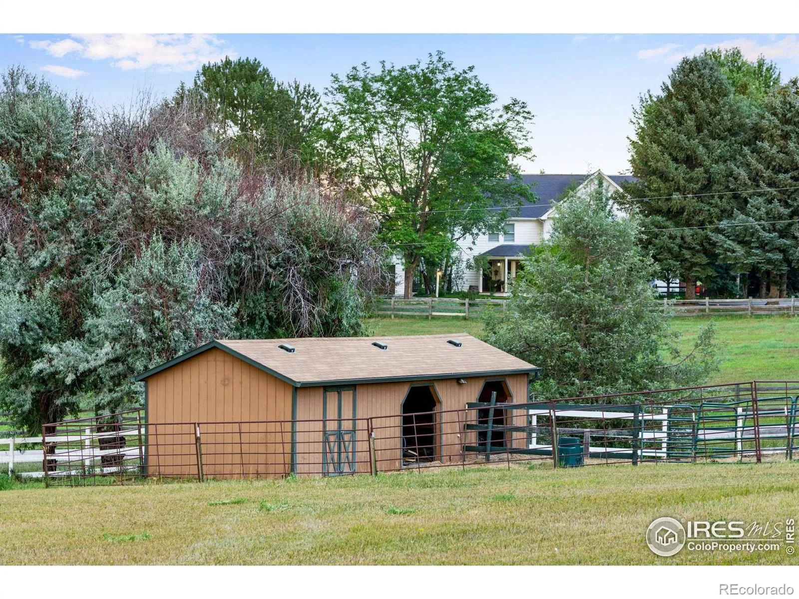 Rare opportunity! Beautiful small acreage in South Loveland perfectly set-up for horses! Situated on 3.3 private acres with mature trees, this 4179sqft 4 bed/3bath home includes a oversized attached garage + additional bay for tool/equipment storage, and a 412sqft detached workshop complete w/ heating and cooling, dust collection system, 220V and 90amp service + carport. Fully fenced pasture w/ 2 horse pens, 2 horse stalls + 422sqft barn, heated auto waterers, power and water. As you enter the home you are greeted with expansive 25′ vaulted ceilings w/ T&G and solid wood beams above, and Australian Cypress floors under your feet. Wonderfully updated kitchen features knotty alder cabinets w/ soft close, granite counter tops, induction cook top, new appliances, and pantry. (2) finished and temperature controlled sunrooms. (2) pellet stoves + (6) mini-split units provide plenty of heat and cooling throughout. Vaulted ceiling in primary bedroom w/ balcony. Finished basement includes additional storage and bedroom. Last, but NOT least, you will love the massive composite deck w/ covered hot tub (included)! Backup propane generator w/ dedicated tank also stays . Fantastic location w/ quick access to I25 from 402 and less than 10min to grocery stores, Home Depot and more!
