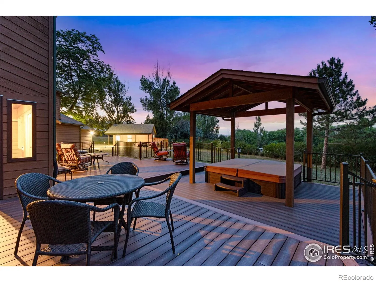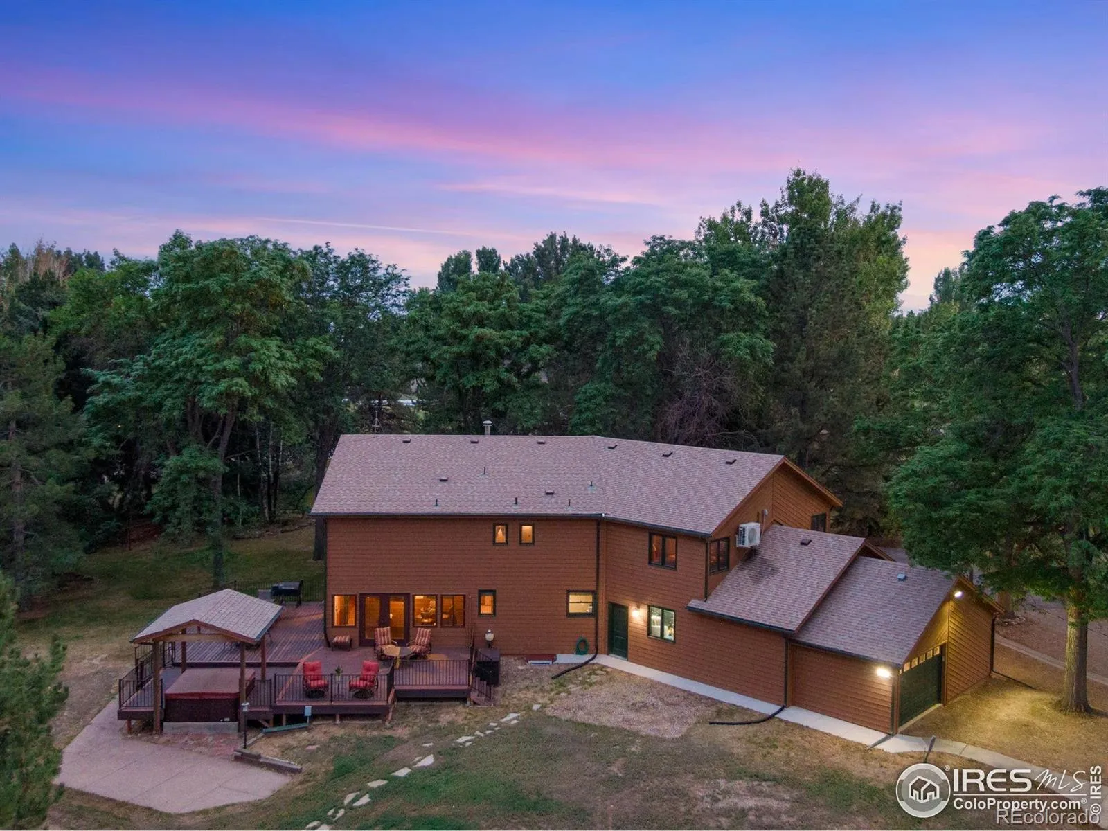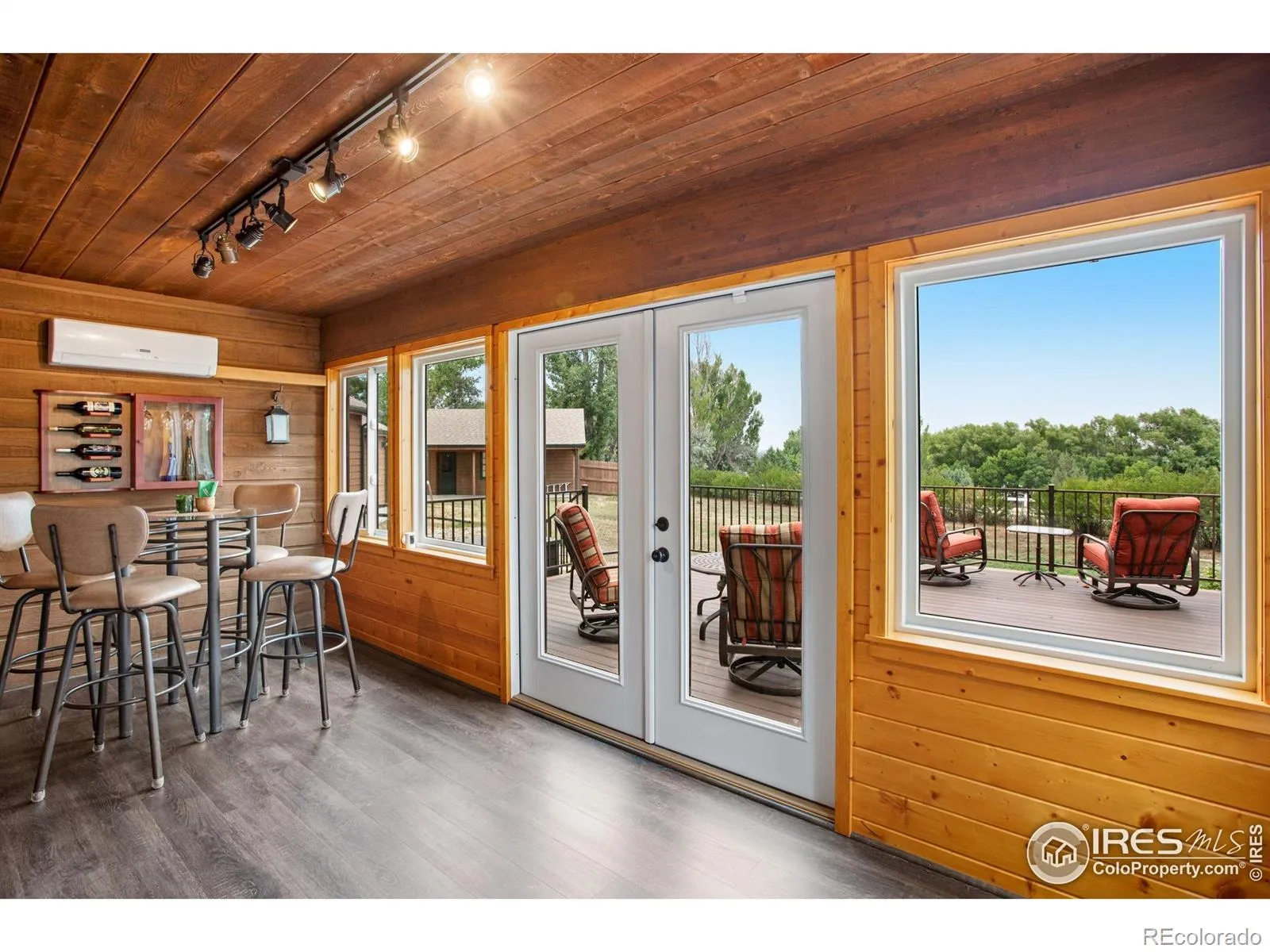 Rare opportunity! Beautiful small acreage in South Loveland perfectly set-up for horses! Situated on 3.3 private acres with mature trees, this 4179sqft 4 bed/3bath home includes a oversized attached garage + additional bay for tool/equipment storage, and a 412sqft detached workshop complete w/ heating and cooling, dust collection system, 220V and 90amp service + carport. Fully fenced pasture w/ 2 horse pens, 2 horse stalls + 422sqft barn, heated auto waterers, power and water. As you enter the home you are greeted with expansive 25′ vaulted ceilings w/ T&G and solid wood beams above, and Australian Cypress floors under your feet. Wonderfully updated kitchen features knotty alder cabinets w/ soft close, granite counter tops, induction cook top, new appliances, and pantry. (2) finished and temperature controlled sunrooms. (2) pellet stoves + (6) mini-split units provide plenty of heat and cooling throughout. Vaulted ceiling in primary bedroom w/ balcony. Finished basement includes additional storage and bedroom. Last, but NOT least, you will love the massive composite deck w/ covered hot tub (included)! Backup propane generator w/ dedicated tank also stays . Fantastic location w/ quick access to I25 from 402 and less than 10min to grocery stores, Home Depot and more!