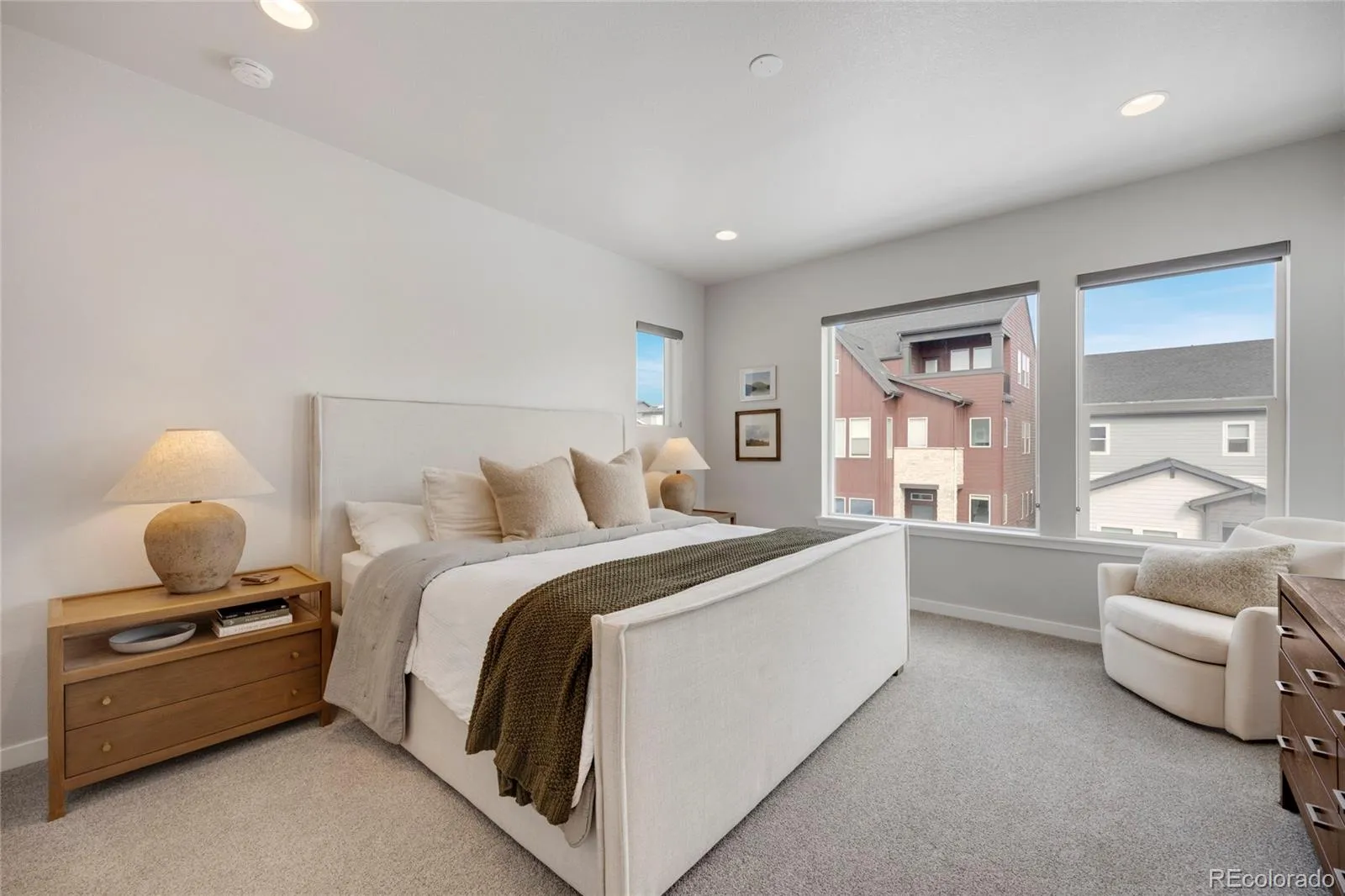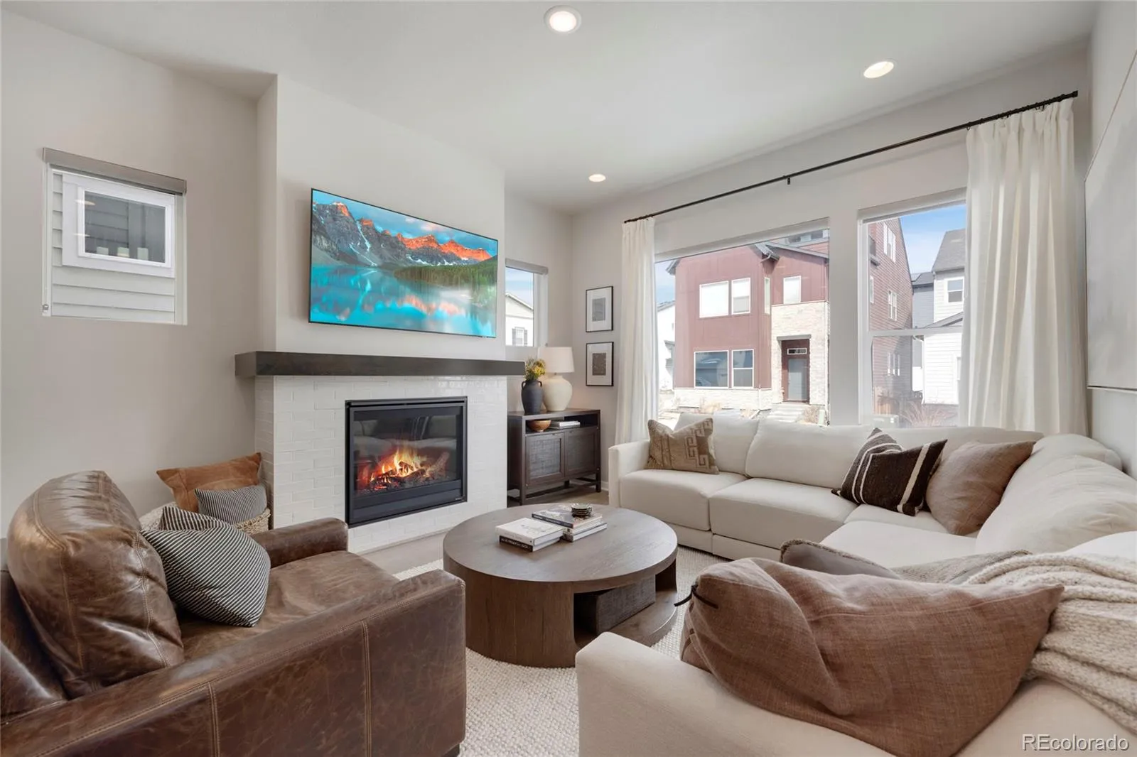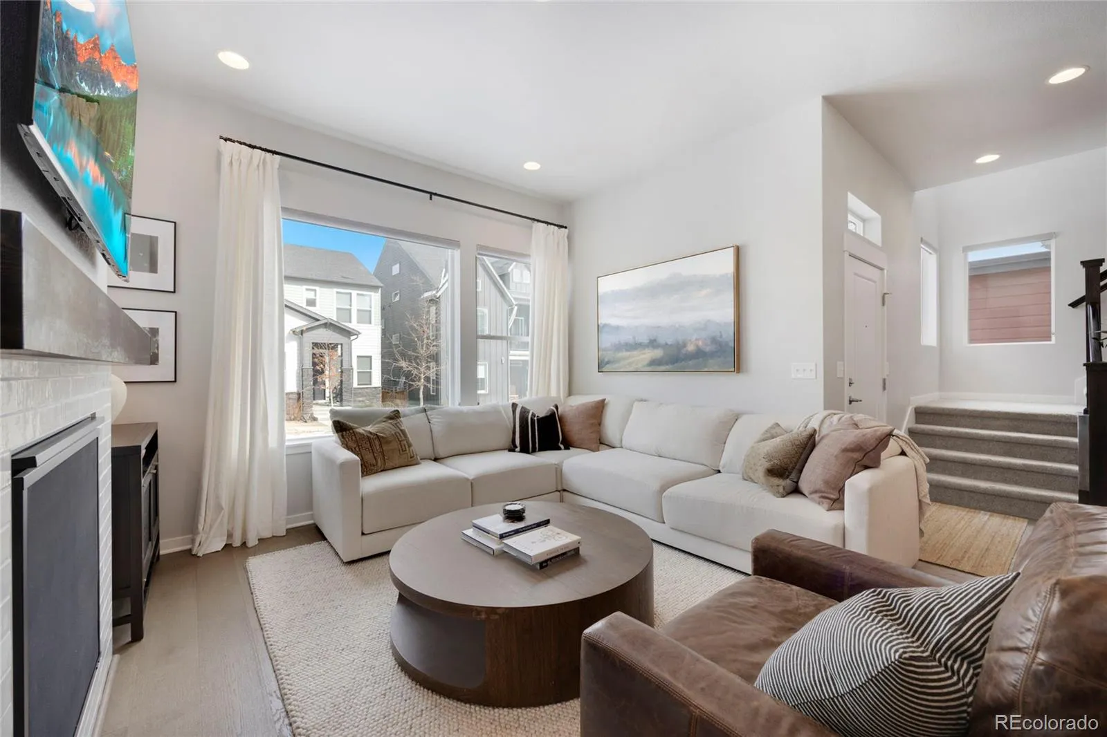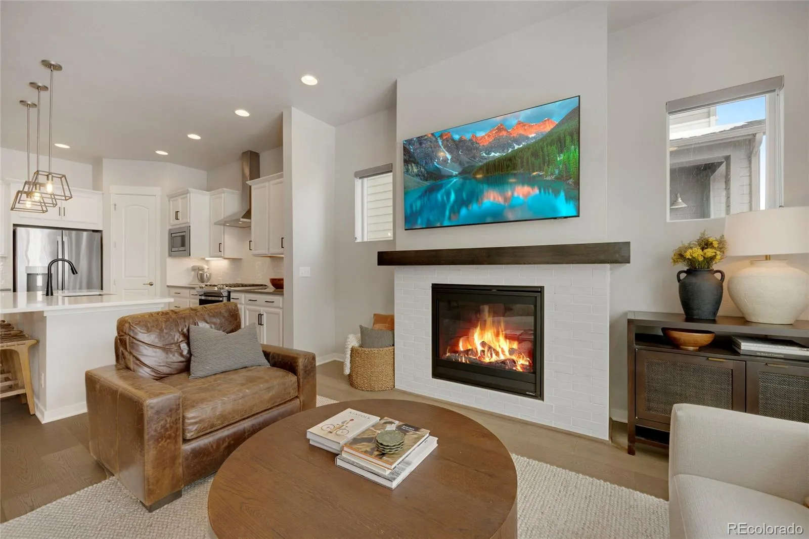 Welcome home to a thoughtfully layout with designer touches. Open layout with high ceilings with an abundant natural light make it a perfect home to come home to everyday! A cozy fireplace in the living room adds to the comforting ambiance, along with the warmth from the engineered brushed maple hardwood floors on this level. Enjoy entertaining in your beautiful kitchen with an abundance of high-end upgrades – 42” upper cabinetry with an additional wall of cabinets and all the extras options, quartz counters with a large island, a gas range with hood vent, stainless appliances, walk-in pantry, no lack of kitchen storage. 8′ doors on the main level along with a half bath for guest and mudroom-like area just inside the entrance of your attached two-car garage, set up to charge your electric vehicle. Upstairs you are greeted by a generous loft that separates the primary suite from the two secondary bedrooms with natural light. The primary is over-sized with natural light and has the luxury of having two large walk-in closets – one even has a window. The beautiful ensuite bathroom has quartz countertops, tile backsplash, pull out drawers and a roomy European style walk-in shower. The laundry room is conveniently located on the upper level, with cabinets and quartz counter to fold clothes on. This level includes upgraded carpet and pad, and a hall bath. Privacy custom roller shades have already been installed on every window. Situated on a greenbelt which is kept by the HOA, so you can spend your weekend enjoying Colorado. This is a fantastic home in Baseline with easily access to 45 acres of parks, open space, dining, shopping close by. Future Center Street District, an artful urban vibe meets small-town friendliness with specialty shops and restaurants, is sure to be convenient for residents. Easy access to Denver/Boulder,