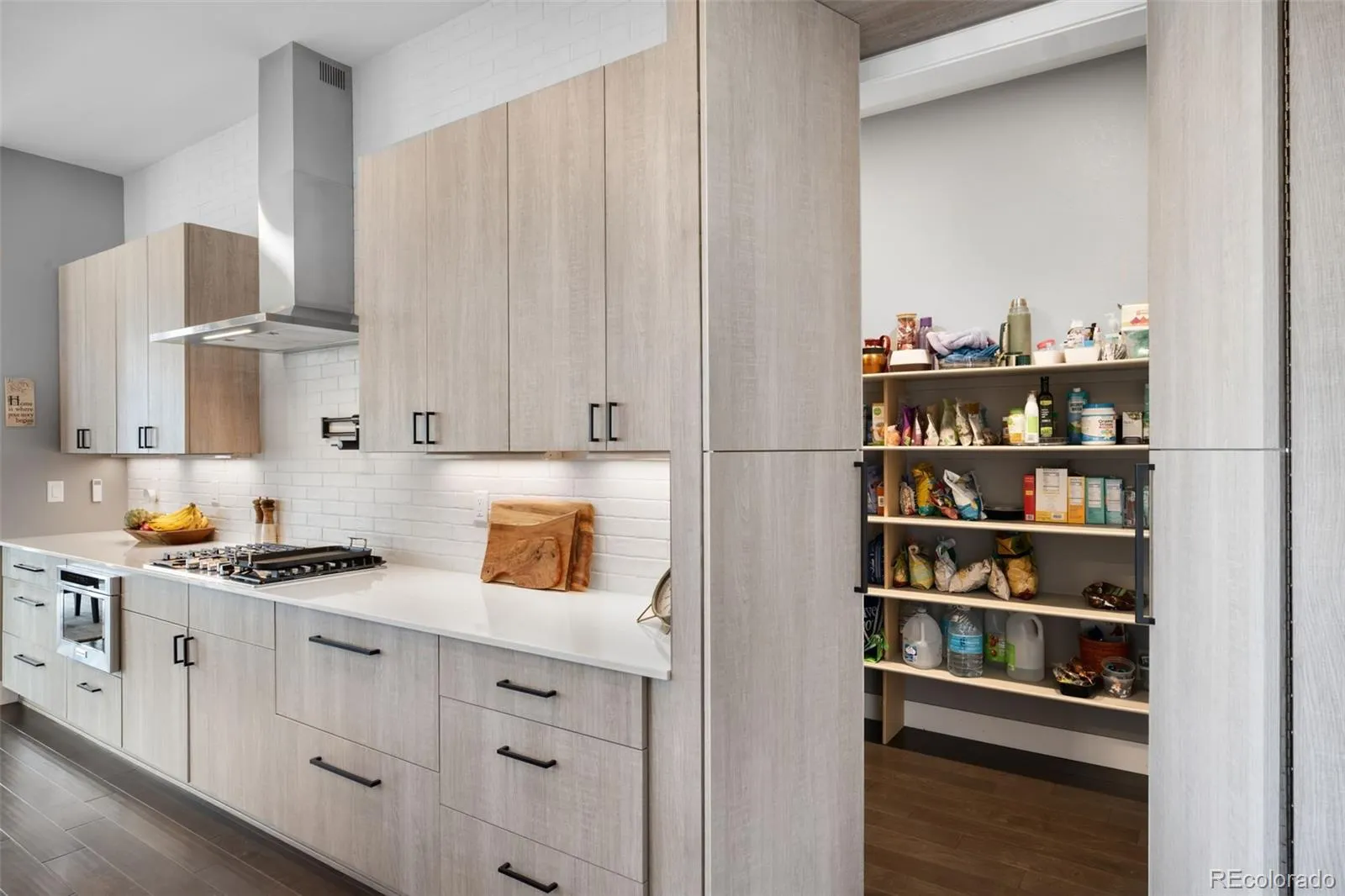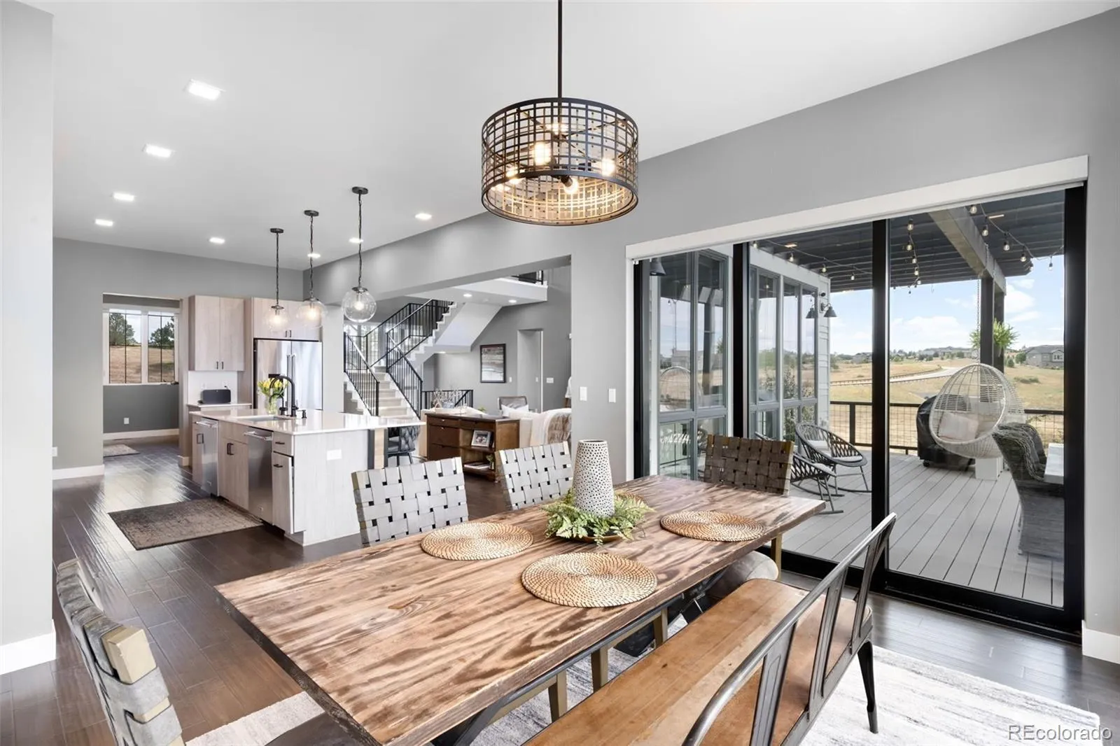 Welcome to 8203 Merryvale Trail – Set on a 1.51-acre, $150K professionally landscaped lot with 20+ new trees, two flagstone patios, and forever-protected open space to the South and West, this modern home offers the rare combination of panoramic mountain VIEWS and modern luxury intention. Inside, a wall of west-facing windows brings the outside in, showcasing sweeping views from EVERY LEVEL- even the basement. At the heart of the home, the chef’s kitchen dazzles with custom cabinetry, premium Brizo fixtures, pot filler, and double dishwashers/ovens. The prep kitchen adds a built-in desk/office, hidden walk-in pantry hid in the cabinets, and additional refrigeration drawers. Sliding glass doors open to a large covered deck with pergola and a gas grill connection.