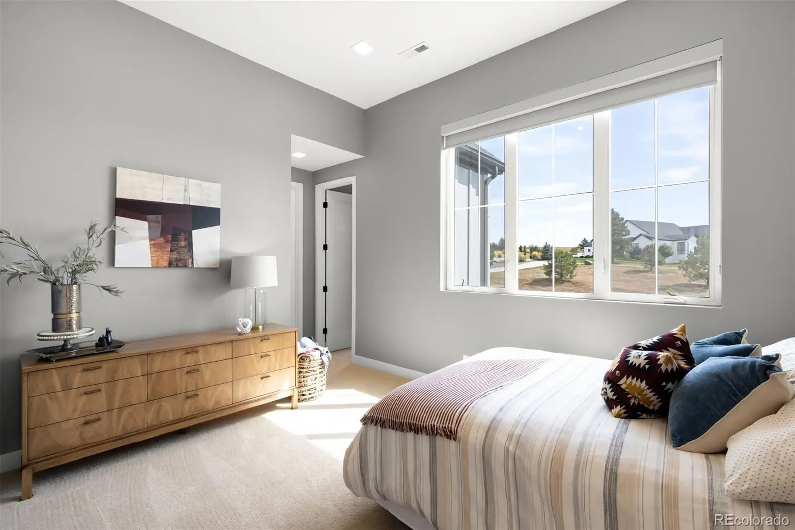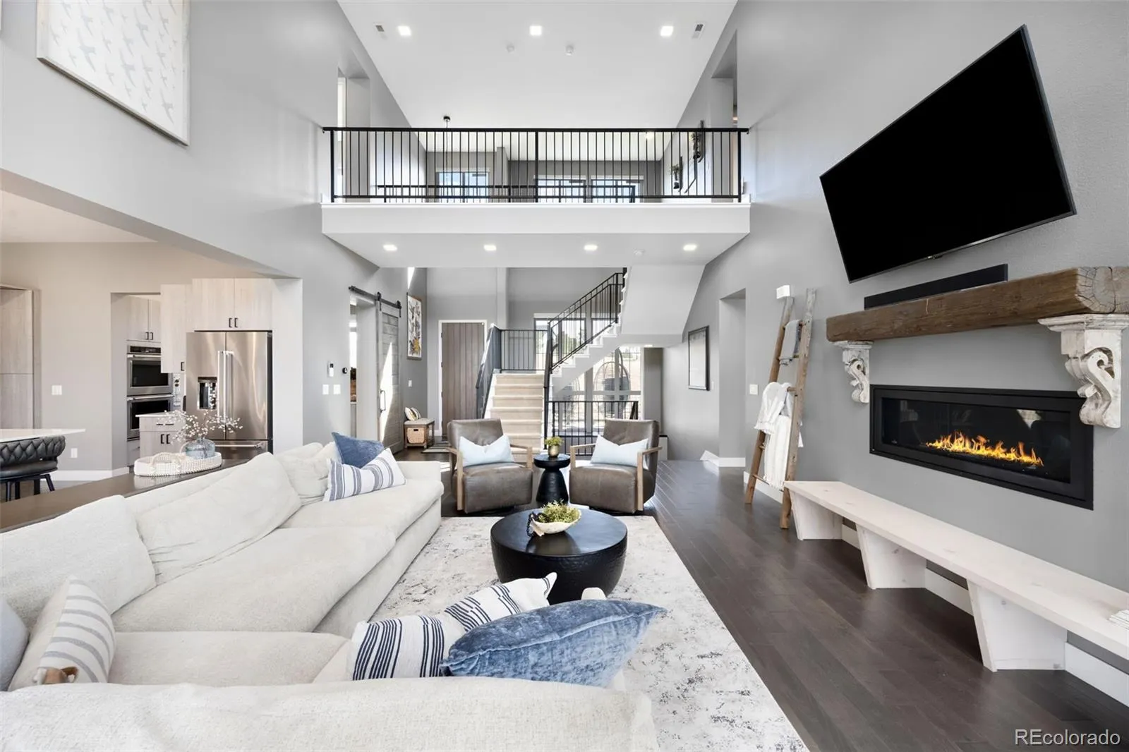 The main floor is designed for flexibility, featuring two bedrooms (one ensuite), a private office, and a transitional mudroom/bench space. Throughout the home, Restoration Hardware lighting, reclaimed wood barn doors, floating shelves, and a custom mantle with vintage corbels add elevated, mindful touches. Upstairs, the primary suite is a retreat with vaulted ceilings, a private patio, automated solar-charged blinds, a spa bath with floating cabinetry, under-cabinet lighting, and a steam shower with dual heads and wands, plus a spacious walk-in closet. The $200K FINISHED BASEMENT IS AN ENTERTAINERS DREAM: a full custom wet bar with JennAir beverage fridge and refrigeration drawers, game room, gym/flex bedroom with built-ins, reclaimed wood shelving, and MOUNTAIN VIEWS. The spa-inspired bath features a luxurious steam shower, while dual storage rooms with built-in shelving ensure everything has its place. Every element of this home was designed with intention—where luxury meets functionality and Colorado’s natural beauty takes center stage. Additional highlights: 70K in Custom Window Treatments, EV Charger 3 Car Garage with Epoxy Floors, New Roof 2022, Dual furnaces/AC, whole house humidifier and more!