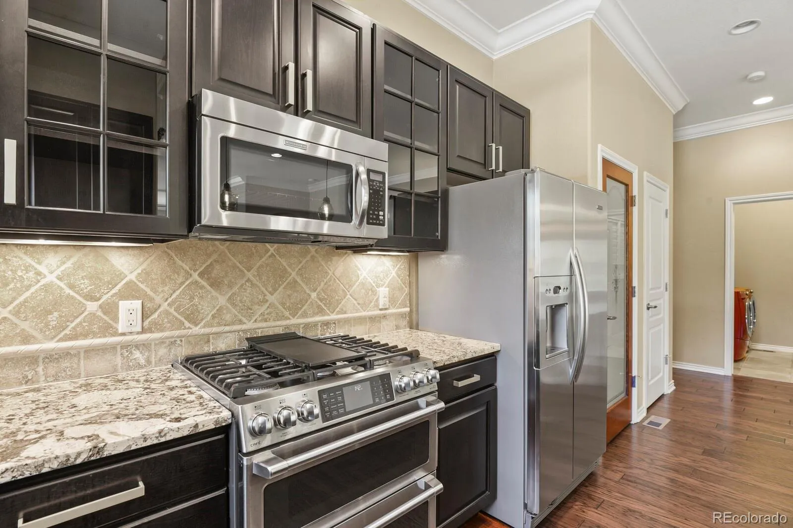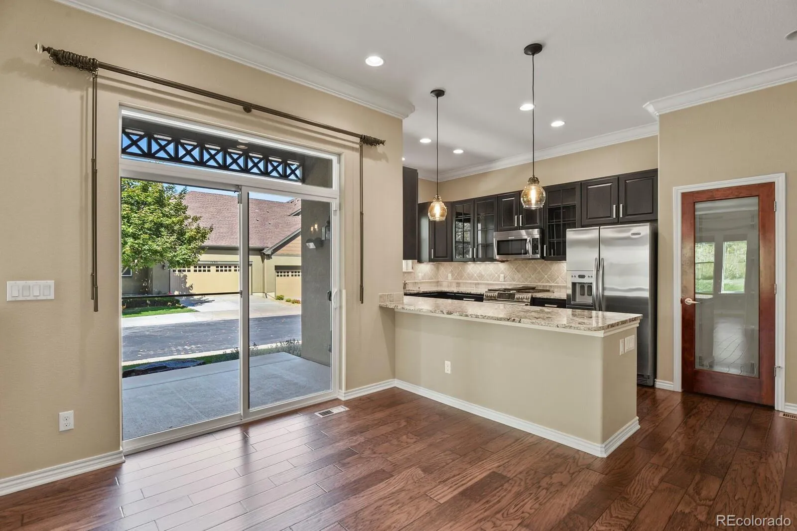 Gorgeous 3 bedroom townhome in Dancing Willows. End unit and backing to open space. Finished basement, too. This home is a must see with hardwood floors, large kitchen with granite countertops and upgraded stainless steel appliances. 6 Burner gas range, double oven, Kitchen Aid side by side refrigerator. Under cabinet lighting and separate pantry. Main floor laundry includes Maytag front load washer and dryer. Spacious primary bedroom with custom blackout window coverings and custom walk in closet. Master bath with new shower enclosure. Heated garage with storage cabinets and epoxy floor. Finished basement includes a 3rd bedroom, 3rd bath and great room with surround sound. Plus an additional bonus room can be used as you need. Wonderful neighborhood pool and clubhouse, lots of walking paths and greenbelts. Did I mention this is an end unit, on a cul de sac backing to open space? Doesn’t get much better than that! Hurry, these homes do not last long