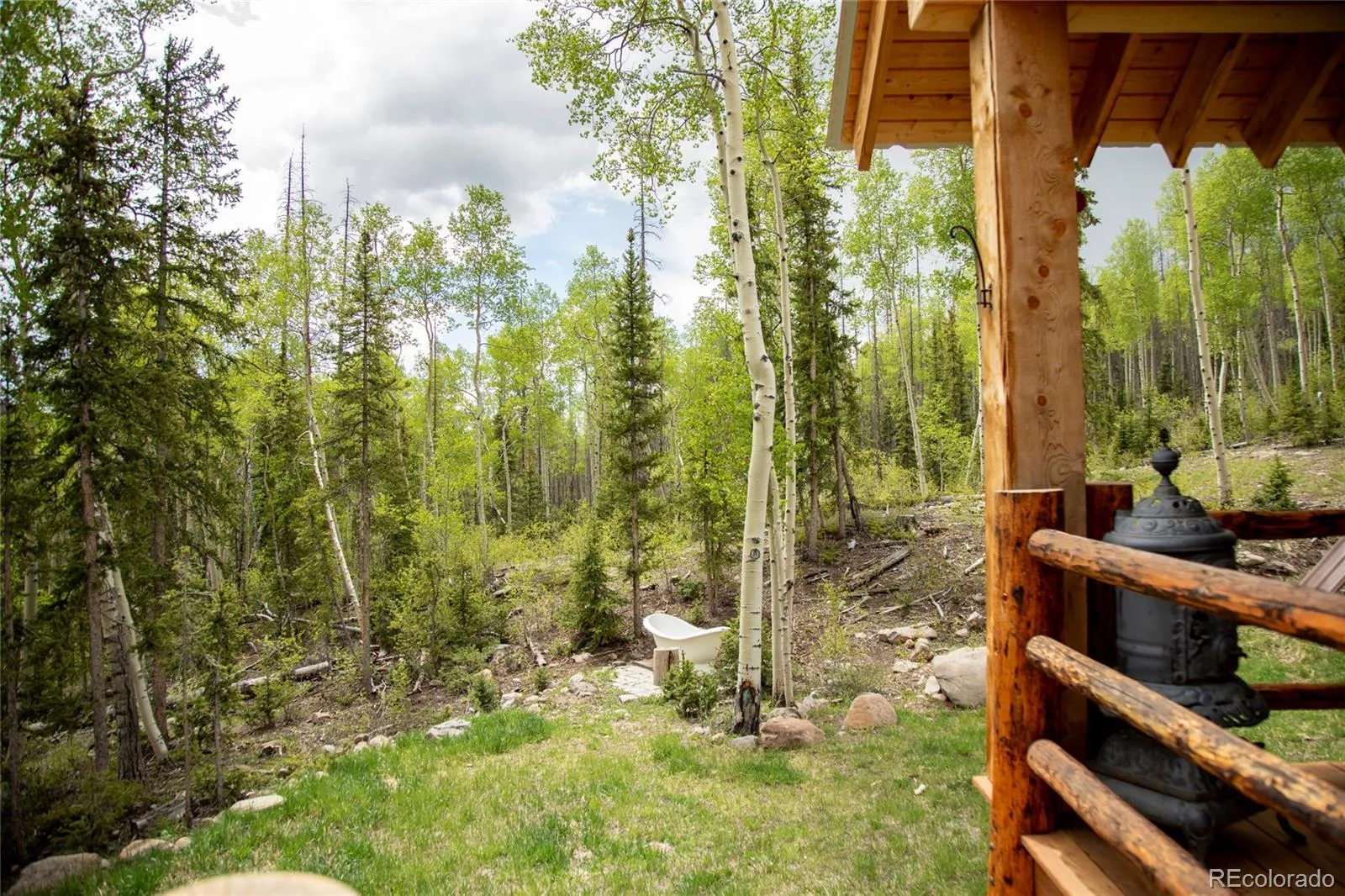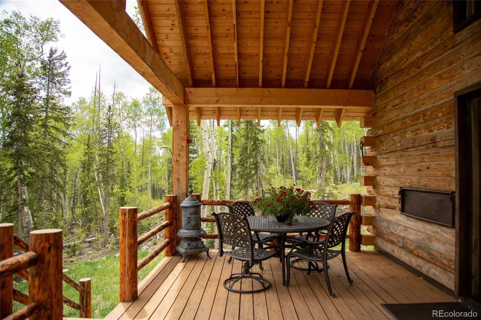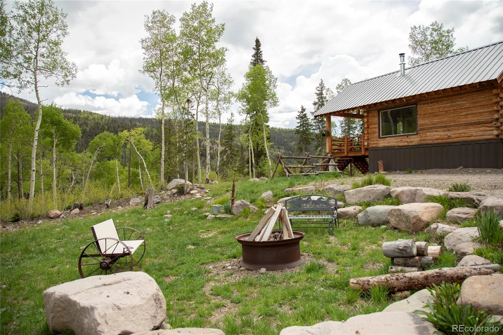 Built from 8” D logs harvested on and milled onsite, the cabin is as authentic as it is inviting. Every detail reflects true Colorado craftsmanship, from custom live-edge trim to Amish-built alder cabinets and double-pane Low-E windows. The space carries a timeless quality that feels both rugged and refined. Modern off-grid comforts blend seamlessly with the rustic character. A permitted spring feeds UV-filtered water to the cabin, solar power is supported by a 14kW Kohler generator, and propane provides heat and instant hot water. These thoughtful systems make the home fully self-sufficient without sacrificing convenience.