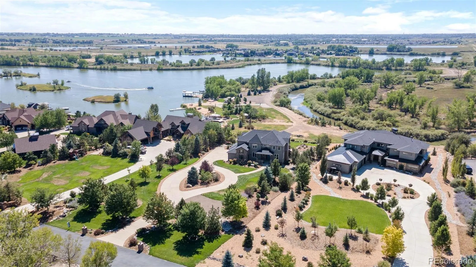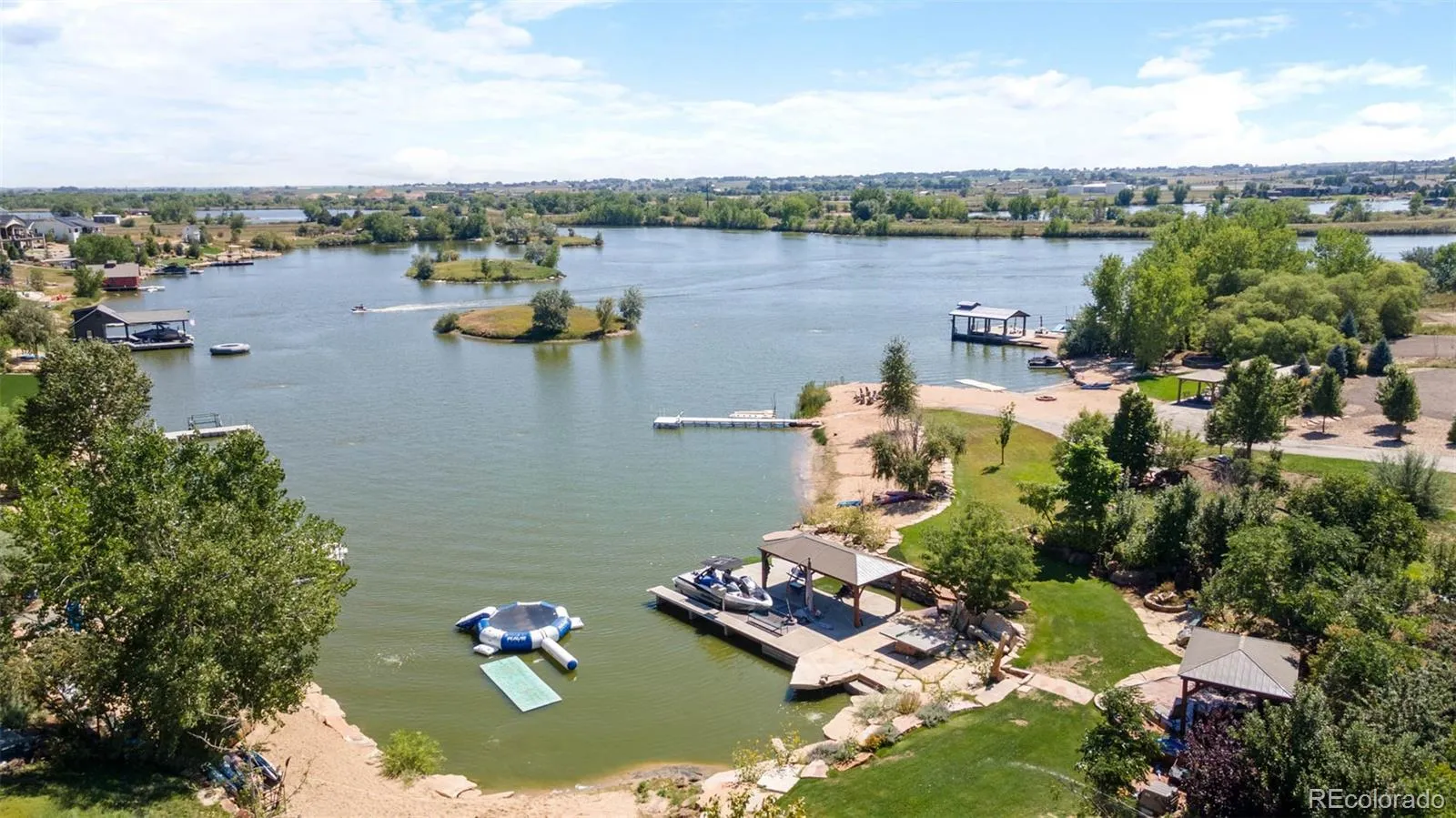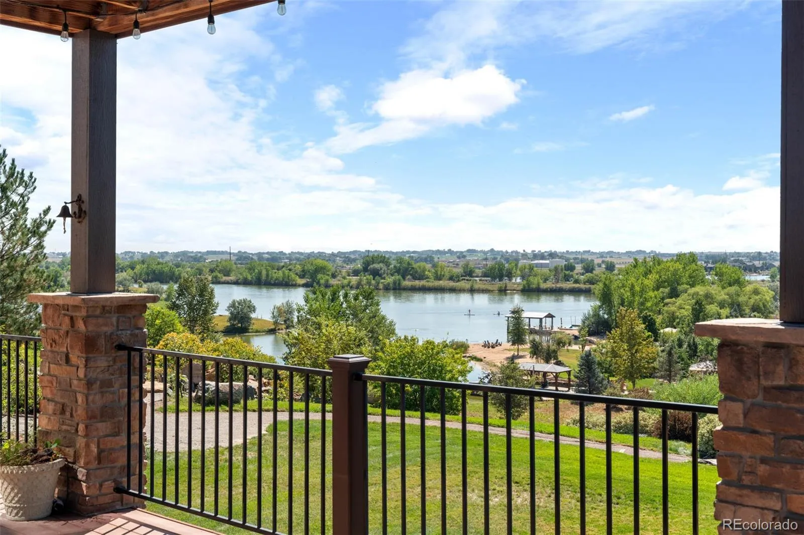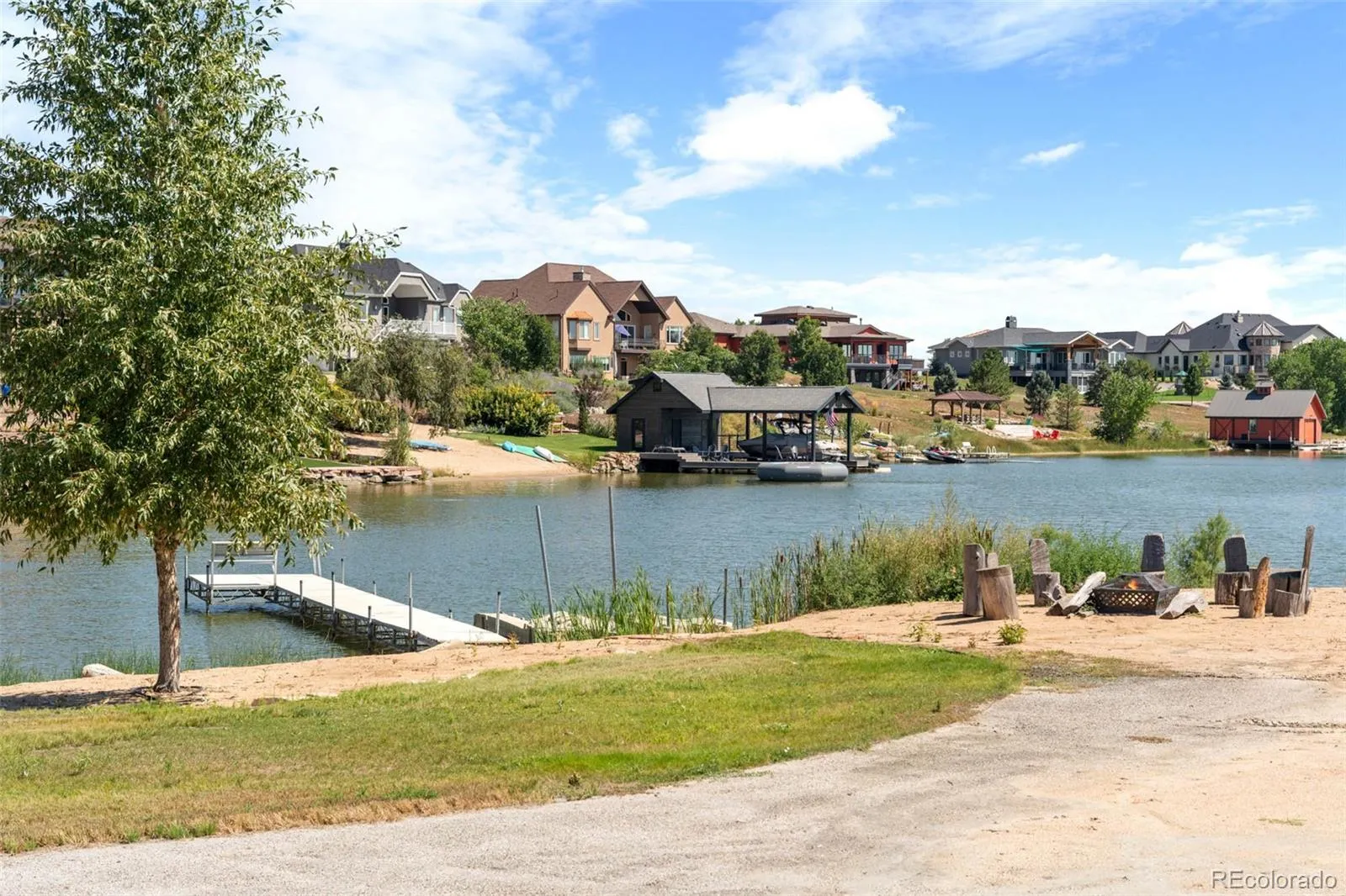 MOTIVATED SELLERS! Experience the ultimate in luxury lakeside living in this custom-built home, nestled in the prestigious gated community of Pelican Shores North sitting in Firestone. Easy access to I-25, 30 minutes to Denver + Ft Collins, and easy access to businesses like Target + Chick-Fil-A (coming soon)! Set against the backdrop of a 100-acre preserve, this residence features its own private lake-your personal playground for water skiing, wakeboarding, and jet skiing. Imagine endless days of adventure on the water, all just outside your door, w/ panoramic views of the mountains, lake + river. Plus, enjoy direct access to the St. Vrain River for tubing, kayaking, and fishing. A grand circular driveway leads to a charming porch, welcoming you inside to the main level, where hickory wood flooring flows throughout. The expansive great room features soaring vaulted ceilings, a striking gas fireplace surrounded by 20″ stonework, and seamless access to the outdoor deck-perfect for entertaining. The gourmet kitchen is a chef’s dream, with custom cabinetry, granite counters, a walk-in pantry, and top-of-the-line stainless steel appliances. The main floor also includes a private office, 3/4 bath, mudroom, and laundry room for convenience. Upstairs, the luxurious primary suite offers a 5-piece bath, spacious walk-in closet, and a private deck with stunning views. The walkout basement is fully finished, featuring a cozy fireplace, an additional office, a gym and unfinished space that would be perfect for a movie theatre. Step outside to your own personal paradise in the backyard, complete with two firepit areas and a private beach with a gazebo for relaxing evenings by the water. The community amenities include a heated pool + a 1.5-mile walking trail that circles the lake. Enjoy community events such as the annual 4th of July celebration, featuring a professional fireworks display, food trucks, and plenty of fun! Seller offering to pay for 1 year of HOA dues at closing!