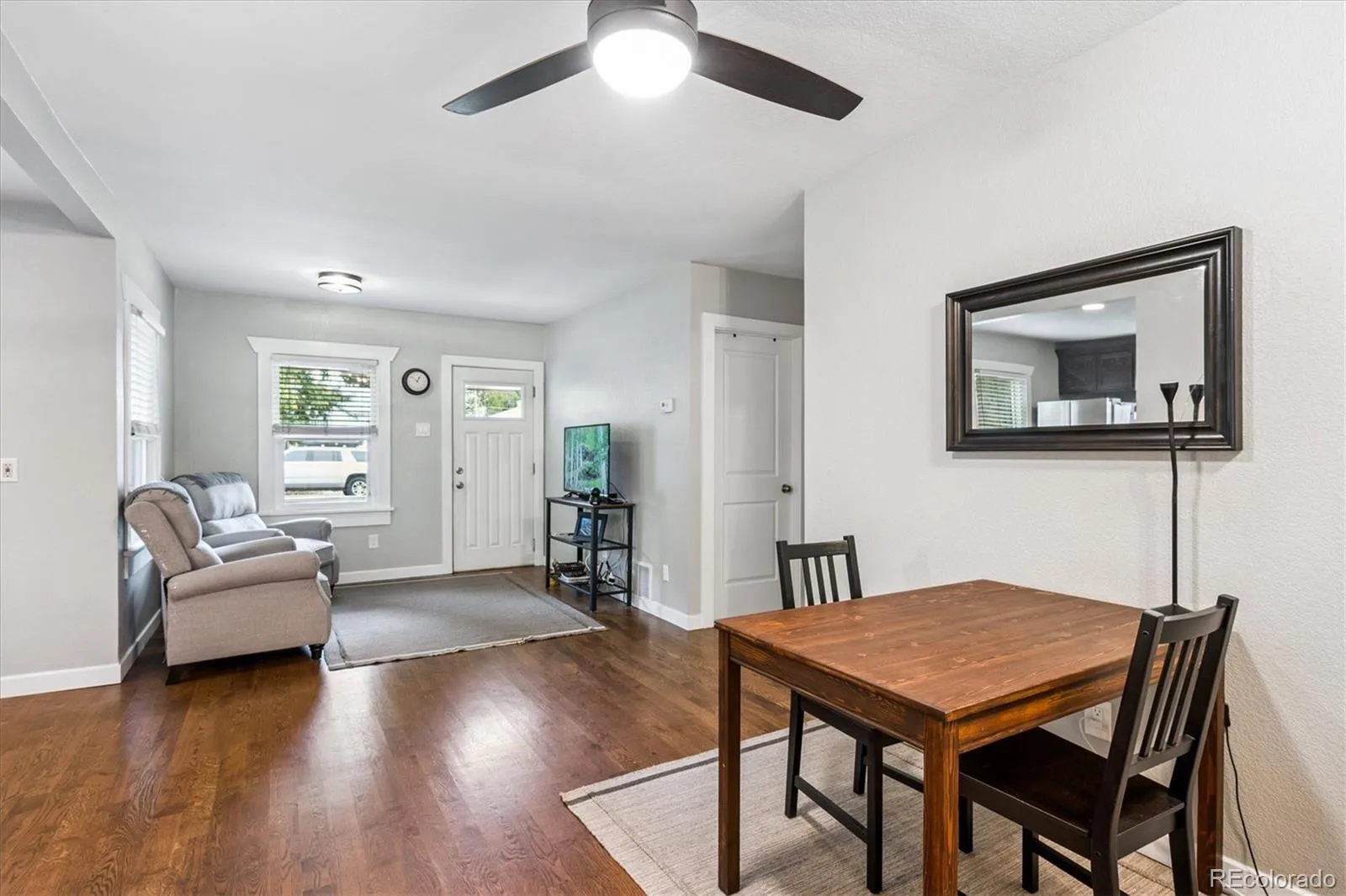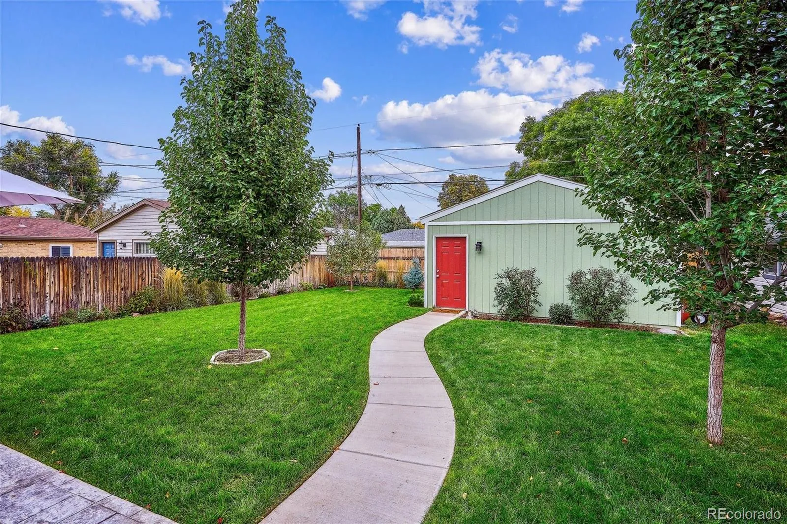 Beautifully updated home on a great block in Englewood. Lots of new updates throughout including newer 2 1/2 inch wide oak hardwood floors (2020), new paint inside & out (2021), 2022 furnace, 2025 water heater & newer sidewalk. 2 bedrooms on the main level + full spacious bath with double sinks. Updated kitchen with granite counters & stainless appliances including new refrigerator (2025). Basement features family room, bedroom with egress window & walk-in closet + full updated bath, & laundry area with new washer & dryer (2023). All ceiling light fixtures were replaced in 2021. All light switches were replaced with rocker switches (2021) and basement bedroom has newer dimmer switches. Gorgeous backyard has garden area with drip system and 2021 stamped concrete patio. 2 car detached garage with newer overhead door (2020), has lots of storage, large fan & a/c unit which is perfect for wood working or car projects in the summer months. Additonal space next to the garage or use the new driveway in front for those extra vehicles. Radon mitigation system already in place. Lot of perennial flowers & a maple and plum tree out front. Central a/c serviced last year + ducts were cleaned 2022. Added attic insulation in 2022. Meticulously cared for home! Nothing to do here but move right in! Walk to the shops & restaurants on South Broadway & just 20 minutes to downtown.