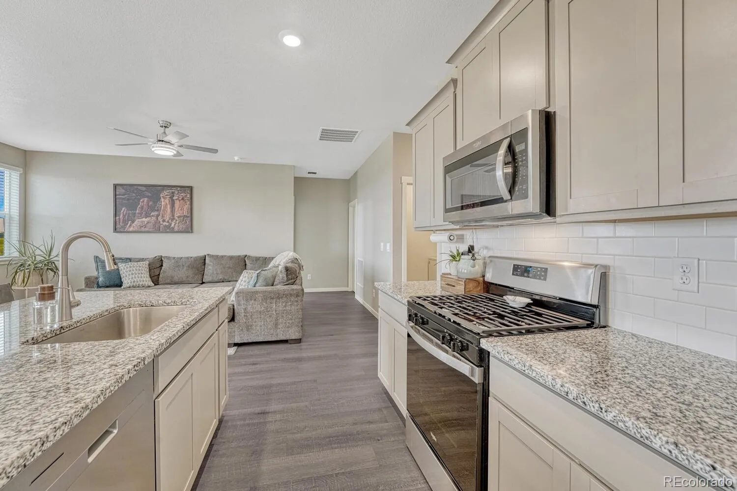 Backs to Open Space! This quality-built 3 bed/2bath ranch is the perfect place to call home, it offers all the perks of new construction plus upgrades you won’t find from the builder. The open great room, kitchen with a walk-in pantry, and dining nook create an easy, inviting flow for everyday living. Recently painted throughout, the home features soothing décor with gray cabinets and crown molding, granite countertops, subway tile backsplash, and 9′ ceilings create an open feel and ambiance to the home – all giving you that warm “welcome home” feel. Step outside and enjoy a large, extended patio with a cement walkway connecting the front and back, a fenced yard, and even a vegetable garden with its own irrigation system—ideal for outdoor living and entertaining. Inside, you’ll appreciate the stainless-steel gas range, microwave, dishwasher, top load washer and dryer and Smart Home technology with keyless entry, video doorbell, garage door control, lighting and thermostat. Ceiling fans with remote control, and cordless window blinds throughout. This beautiful home is in the prestigious Douglas County School District! With its modern finishes and move-in ready condition, this home is elevated beyond similar new builds–offering style, comfort, convenience, and instant outdoor enjoyment. Contact the co-lister Tana with questions; 303-834-5855.