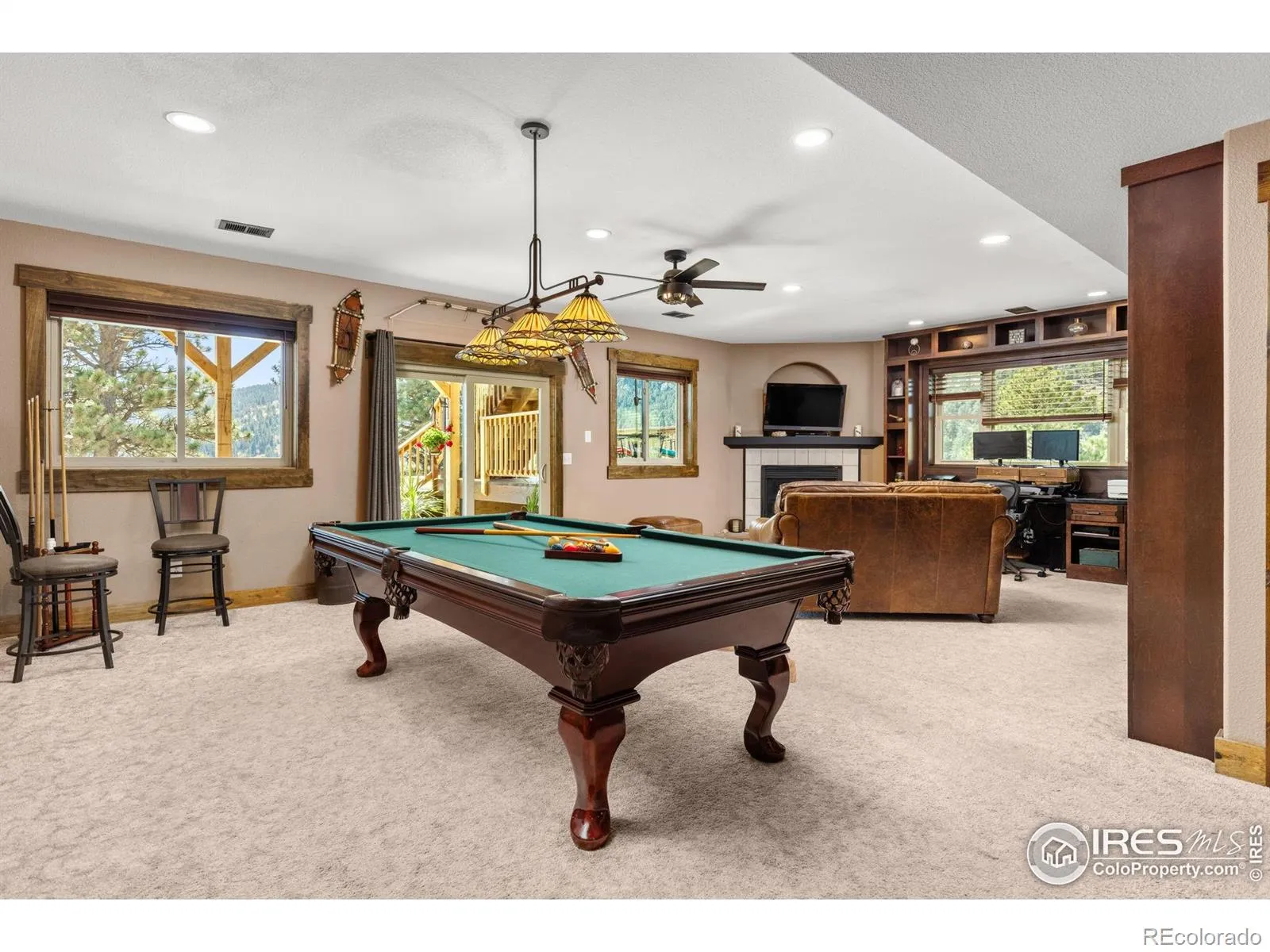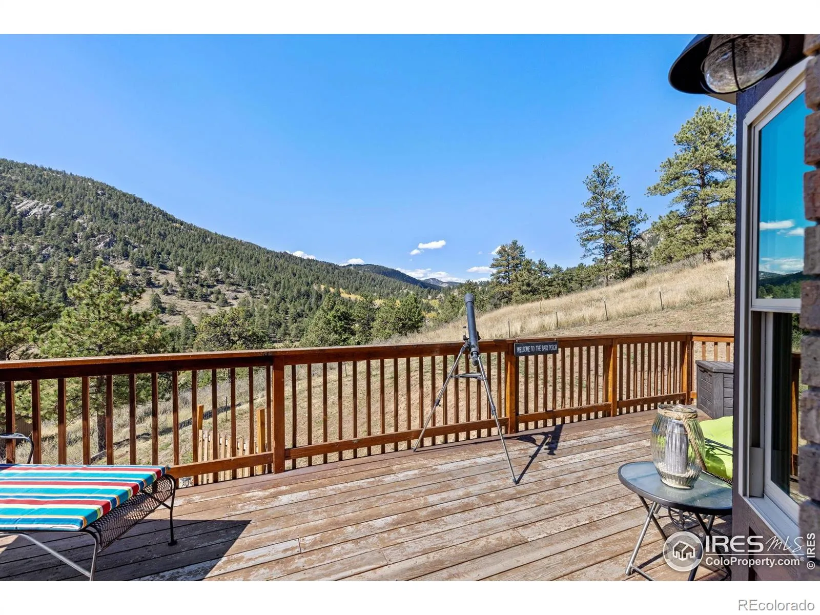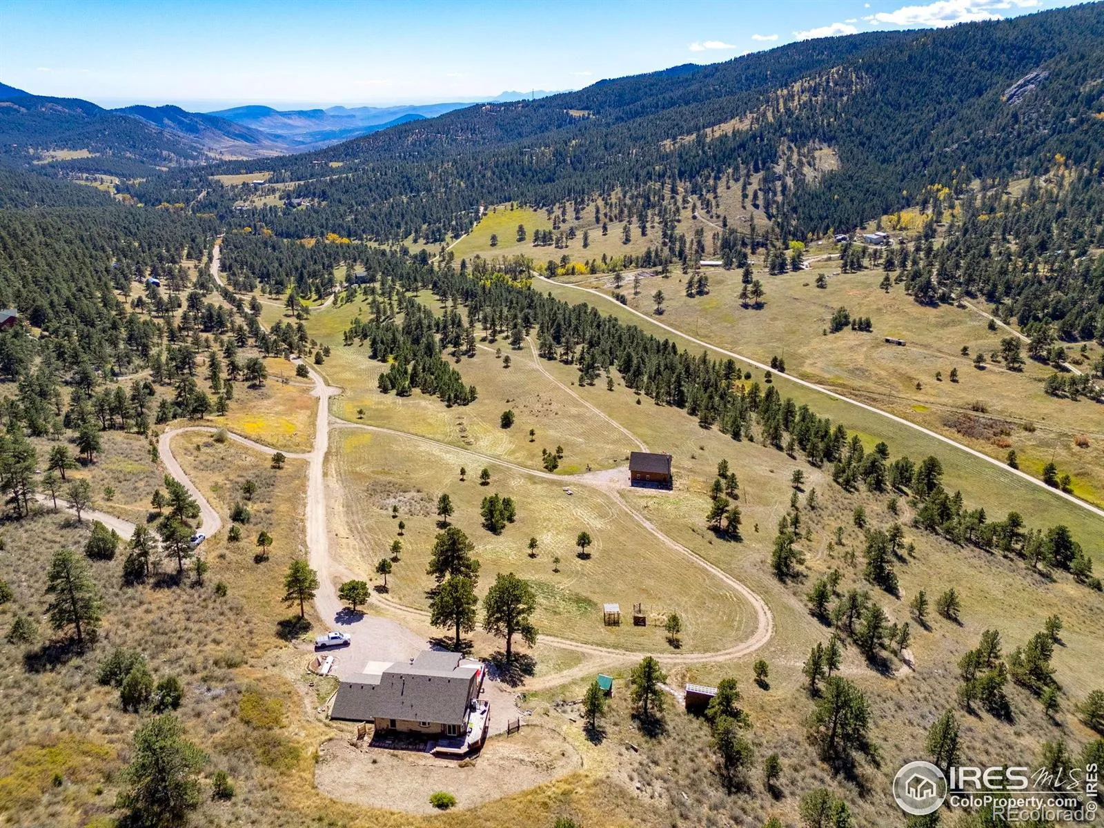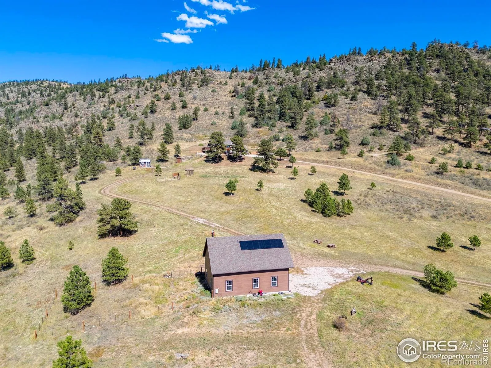 Experience true Colorado living on this 35-acre foothills retreat offering end-of-road privacy, modern updates, and direct access to nature. Located in the Quillan Gulch subdivision just 40 minutes from Downtown Loveland, this beautifully maintained 3,194 sq ft raised ranch combines comfort, functionality, and unmatched scenery. The property borders Roosevelt National Forest on the corner and features a seasonal pond that draws abundant wildlife, including deer, elk, turkey, bear, and bobcat. The home’s thoughtful upgrades are evident throughout, with new solid-core alder doors, white pine trim, newer windows, and real wood Levelor blinds. The kitchen has been tastefully remodeled with stainless steel Whirlpool appliances, quartz countertops, and an Italian-tile backsplash. Multiple wood decks-including a newly redesigned and rebuilt front deck-invite outdoor living, while the covered patio provides the perfect shaded retreat. Additional highlights include a two-car attached garage, whole-house backup generator, and a brand-new roof just installed in the spring of 2025. A 1,200 sq ft outbuilding with solar power offers tremendous versatility, complete with an office and wood stove-ideal for a workshop, studio, or home-based business. The property also features a solar-powered greenhouse for year-round growing. Surrounded by the natural beauty of the Loveland foothills and just minutes from Pinewood, Carter, Flatiron, and the upcoming Chimney Hollow Reservoir, this is the perfect place to enjoy the serenity of the mountains without sacrificing convenience.