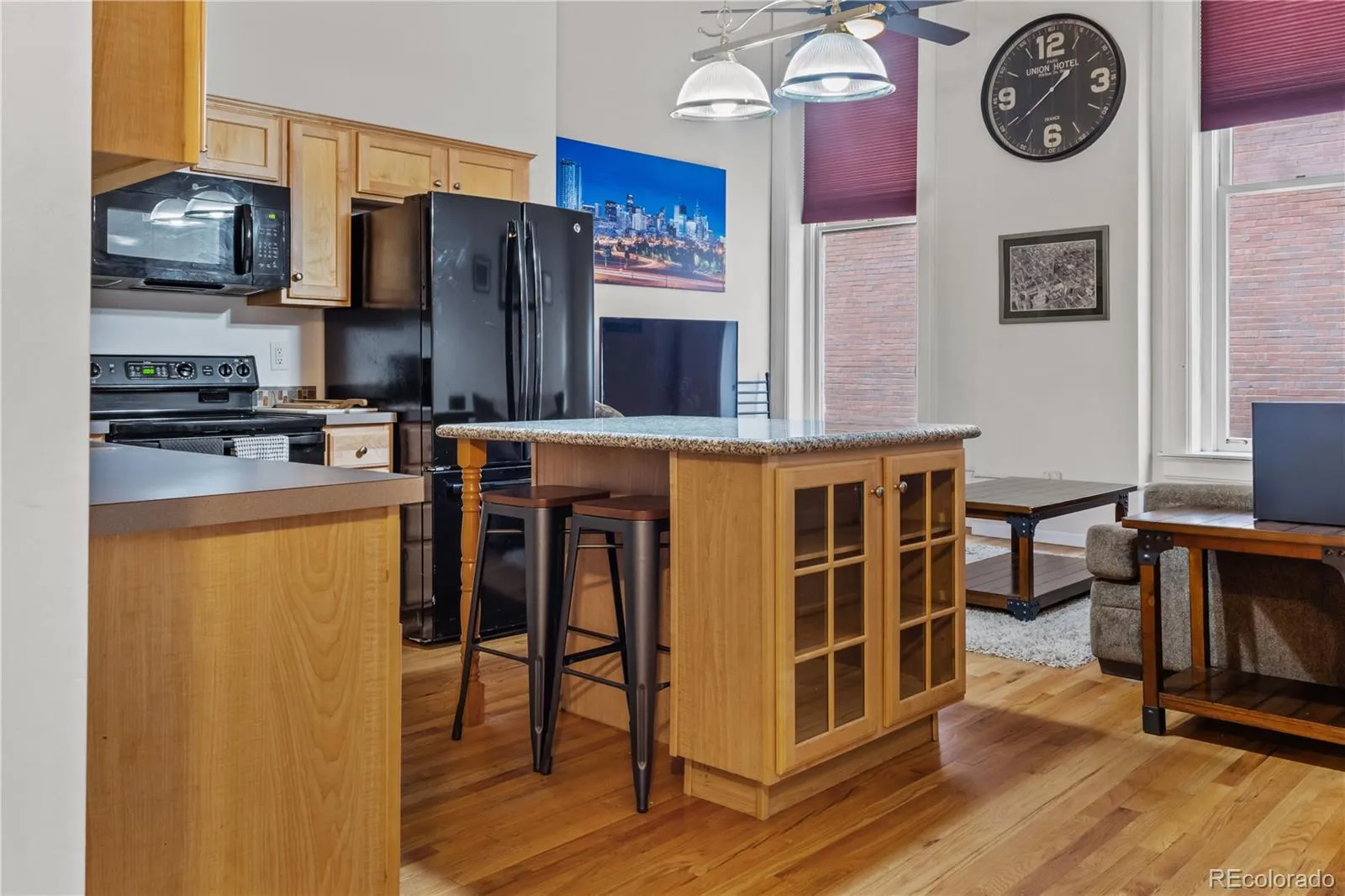 Experience urban living at its finest in this beautifully updated 1-bedroom, 1-bathroom condo at the historic Denver Dry Lofts, once the largest department store in the West. With high ceilings, abundant natural light, and an open-concept layout, the kitchen boasts granite countertops and ample prep space. The loft-style bedroom includes a spacious walk-in closet, while the newly remodeled bathroom adds a touch of sophistication. The current owner rents it month-to-month on Airbnb, and the furniture is negotiable, making it a turnkey investment or residence. Enjoy on-site amenities like the gym and easy access to downtown’s best, including the 16th Street Mall, Convention Center, and Performing Arts Center. Preferred lender incentive with lender credit or rate buy down included. Parking spot in a covered garage on the other side of 16th street mall included with the sale. Special assessment already paid in this unit while some for sale in this building have not paid them saving your Buyer over 30K in costs.
