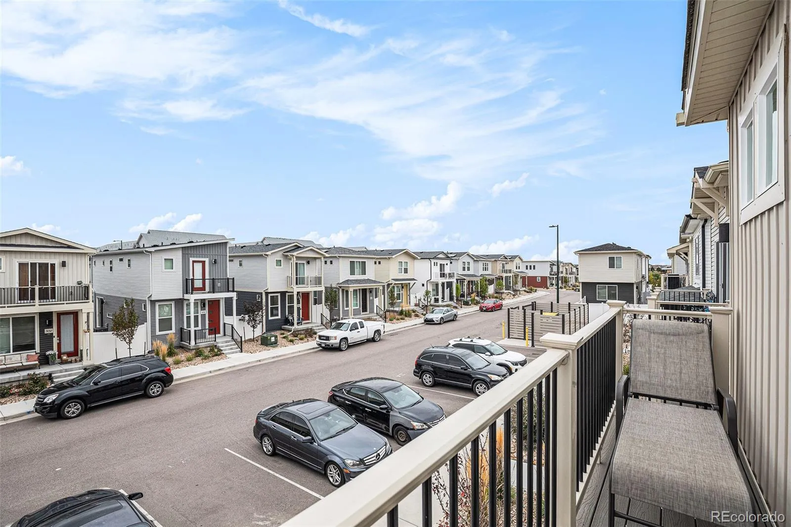 Modern, stylish, like new single family home in super cute neighborhood has open layout with lots of windows, high ceilings, luxury laminate wood flooring. Walk in to a spacious great room overlooking the eat-in kitchen with quartz countertops, pantry, kitchen island and plenty of room for seating. Includes stainless appliances and opens up to good sized fenced yard. Main floor also includes a half bath and convenient laundry area. Upstairs features a large primary suite with its own bath annd a secondary suite with private bath. Includes a separate linen closet plus a space for desk or work area. Great location close to dog park, shopping, restaurants, I-70, E-470, DIA, and light rail.