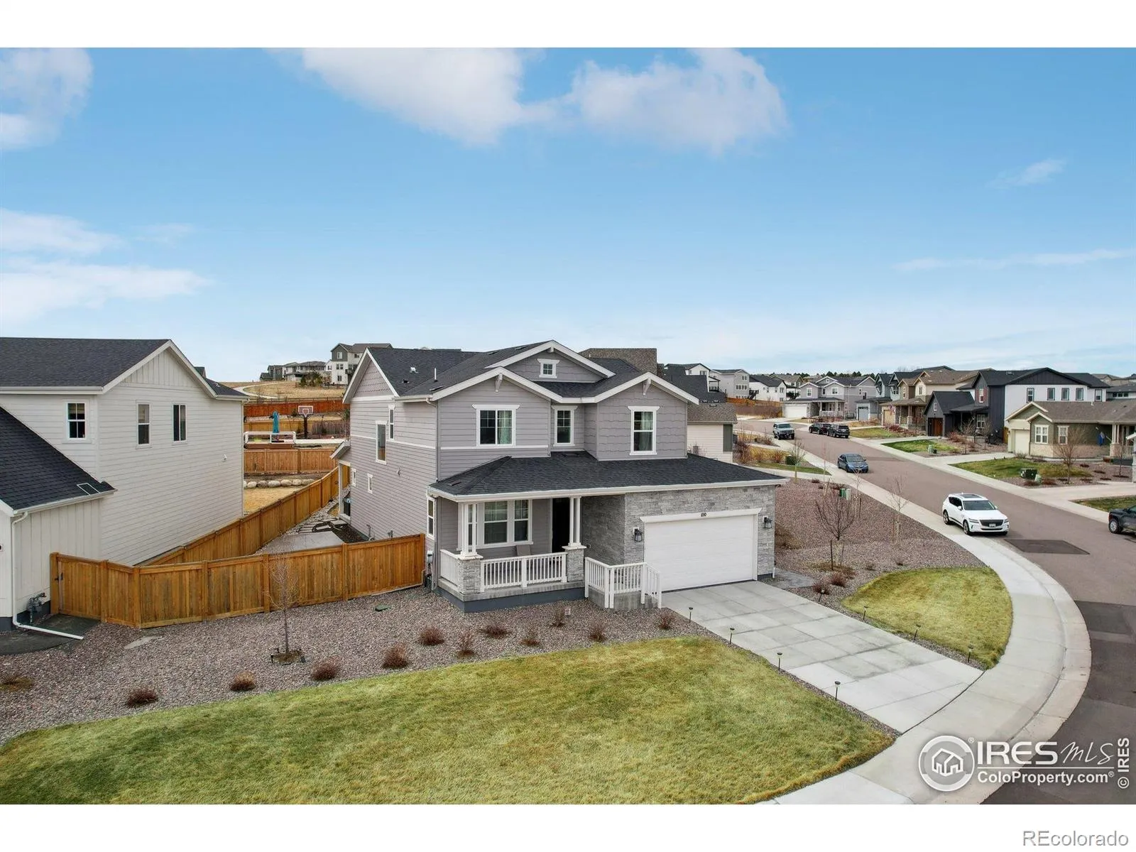 Beautiful 5 Bed, 4 Bath 2 Story with an attached 3 Car Garage ideally situated on a Large 0.3 acre corner lot on a Quiet interior Cul-de-Sac across from Open Space. Just steps from Trails lead to Parks through Open Space. Desirable Castle Pines Town Center community offers the beauty of nature & convenience of amenities right around the corner. Wonderful Curb Appeal & a Covered Front Porch welcomes you to a Stunning Bright home with an Open Concept Floorplan. Living room boasts a Cathedral Ceiling with 2 story Windows & open to an informal Dining area spacious enough for all your guests. Step through Sliding Glass doors to a Covered Patio & Large Backyard with Privacy Fencing; perfect for relaxing & summertime BBQ’s. Gourmet Kitchen is a Chef’s delight boasting an Island with a sink, Solid Granite counters, SS appliances, plenty of storage in the Cabinetry & Walk-in Pantry. There’s Breakfast Bar seating & a Sun-filled Breakfast Nook surrounded with Windows, also ideal as a sitting room. Upstairs is a generous sized Primary Suite with an adjoining 4-Piece Primary Bath, complete with a large frameless Shower & Rain shower head, Double Vanities, Tile Flooring. You’ll love the Storage space in the Walk-in Closet with all of the Built-in cabinetry & drawers. 3 more upper level Beds, Full Bath with Double Vanities & a conveniently located Laundry room has Tile Flooring & shelf. Main level includes 5th Bed Suite with a Private en Suite 3/4 Bath, Powder room & Mud room area off of the Garage. Enjoy Beautiful Wood-look LVT flooring on Main level, there’s a Tankless Water Heater, Keyless Entry, Solar Panels, A/C, Ceiling Fans in all Bedrooms. Plenty of Space for Expansion & Extra Storage in the unfinished 977 SqFt Basement. Finished 600 SqFt tandem Garage has Exterior Access door and a Smart Garage Door. Watch the wildlife meander through the Open Space from your Front Porch. No HOA fees. Close to Shopping, Dining, Schools. Quick, easy access to I-25. See Virtual 3-D Tour.