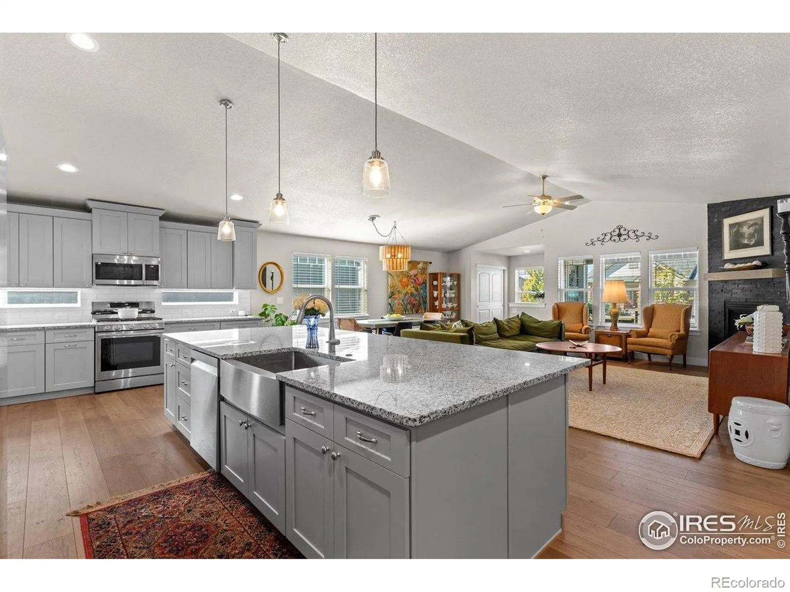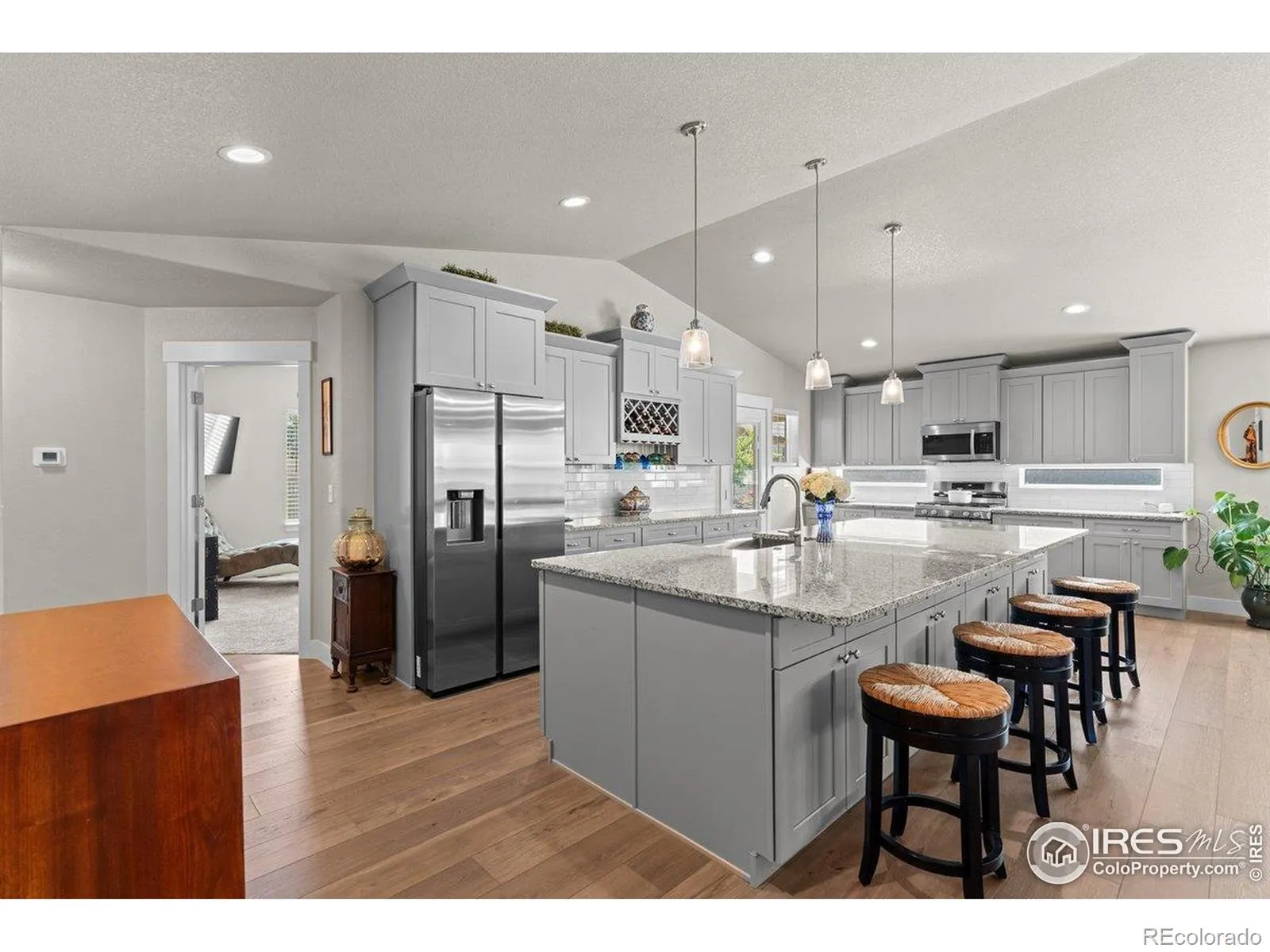 Enjoy all the wonderful perks of the Saddleback Golf Course community with a huge bonus- NO HOA. This is one of three homes built in the community by a higher end builder, and they are not a part of the HOA that the rest of the community is subject to! The perks don’t stop there either, with impressive craftsmanship, including a class 4 roof with major impact resistance. This home was built to be enjoyed and shows beautifully. You’ll be blown away by the massive, oversized kitchen island, with a farmhouse style sink and fabulous appliances. Between the incredible number of cabinets and the huge pantry, you’ll have plenty of kitchen storage! The Primary Suite is an oasis of its own with vaulted ceilings and an oversized luxurious shower. With its close proximity to Saddleback Golf Course and the Saddleback clubhouse, you’ll be living the high life- and the location also offers closeness to the Bella Rosa Golf Course, parks, restaurants, schools, and easy access to I-25 and 119! This is a unique gem that is as rare as it is gorgeous, and you won’t want to miss it!