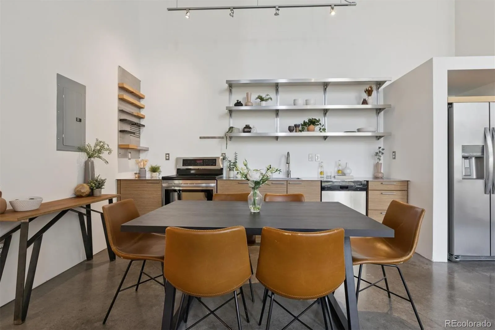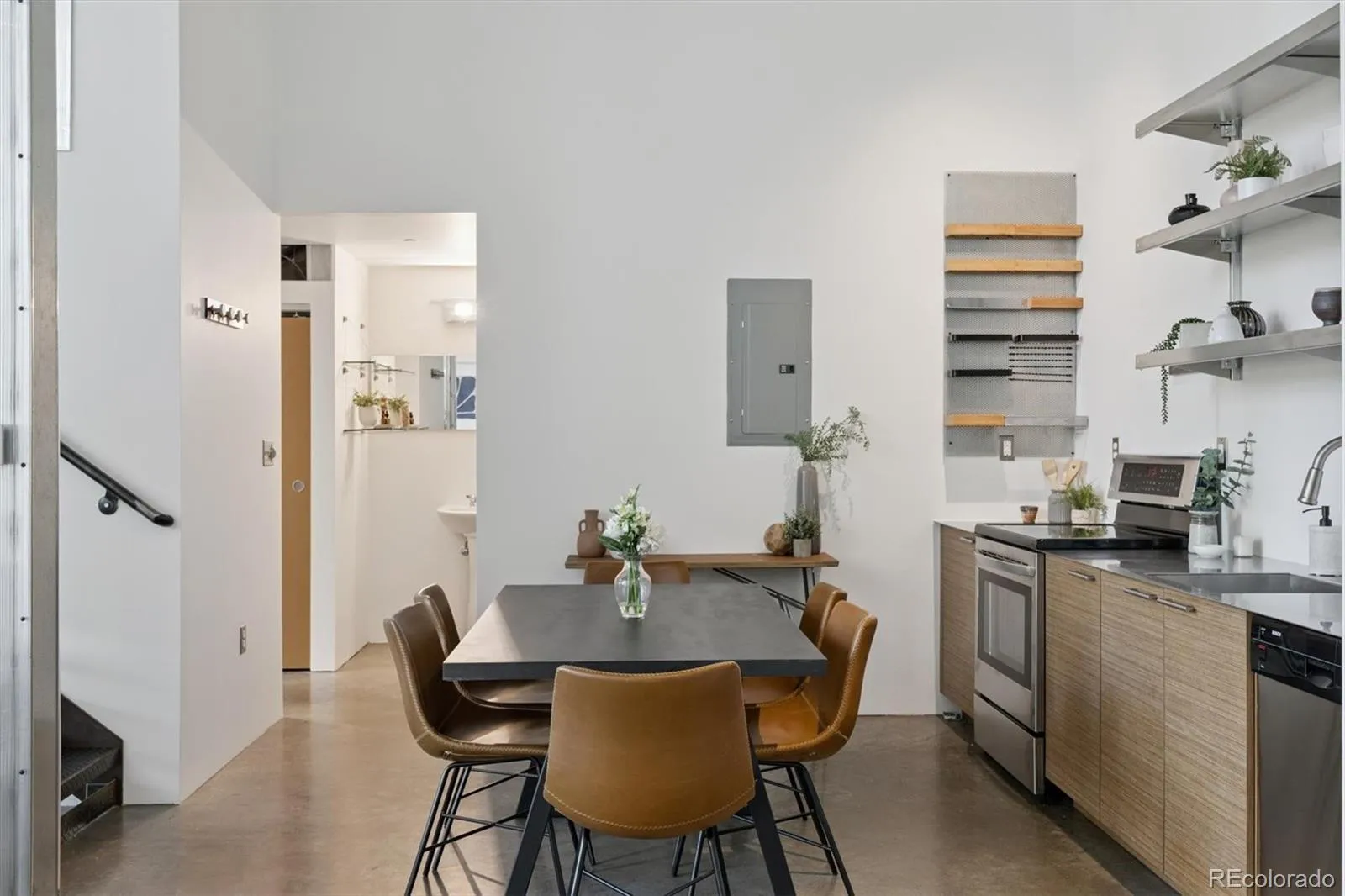 Open and airy modern industrial live/work space located within the multi-award winning TAXI community. This top floor loft boasts unique architectural features such as a 25′ high ceiling, polished concrete floors and large custom picture view windows. This west facing unit has abundant natural light and includes views of the front range’s iconic peaks and colorful sunsets. This open concept dwelling has 2 large bedroom spaces, which have been meticulously designed for multi-use functionality. There are 2 full ammenity bathrooms, featuring one with a deep soaker tub. The Live/Work building and property has been meticulously maintained and includes a full suite of appliances including washer and dryer. Walk out your front door and take advantage of all that the RiNo Art District and TAXI community has to offer. The community is located across from the South Platte River Bicycle Trail System, the new RiNo Art Park and a short walking distance to the A Line Light Rail with quick access to Union Station and DIA. The community itself is a mixed-use community of creative residents, innovators, entrepreneurs and businesses collaborating to shape industries such as sustainability, tech, design, architecture, social enterprise and the arts. As an owner at the TAXI community, you will have access to an amazing array of amenities, including Zero Hour Coffee Shop & Restaurant, co-working space, galleries, picnic/BBQ area, skateboard park, community garden and bike maintenance station. The TAXI community also has ongoing parties, events, and lectures. Additional Community Pool and Gym access available too. Please reach out to the listing agent for a full list of updates and to learn more about the home and community. This loft can be used for a residence, business, or live/work. Other similar units available. Please reach out to Listing agents for current details.