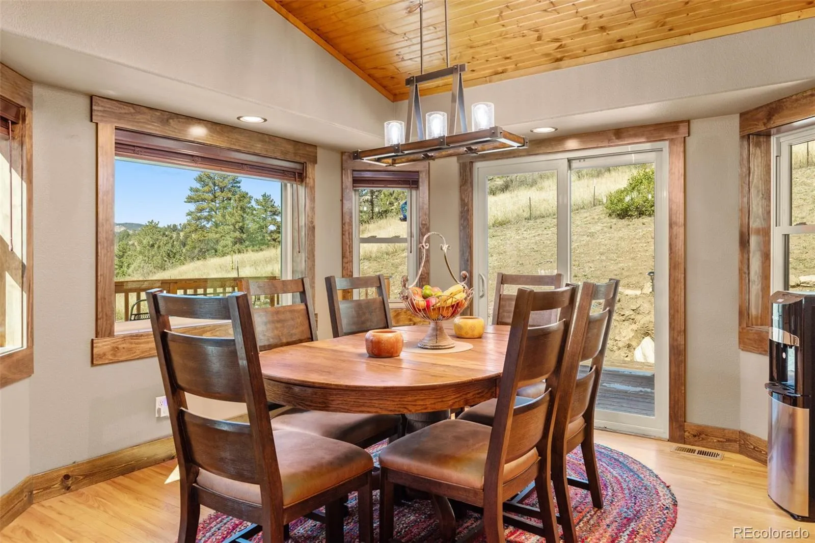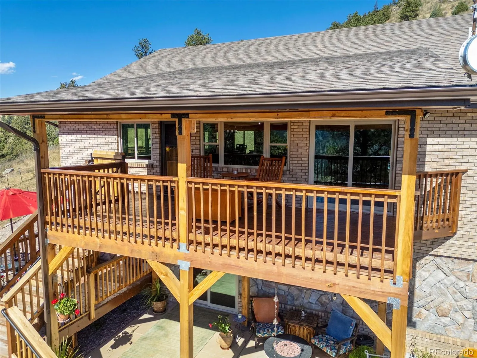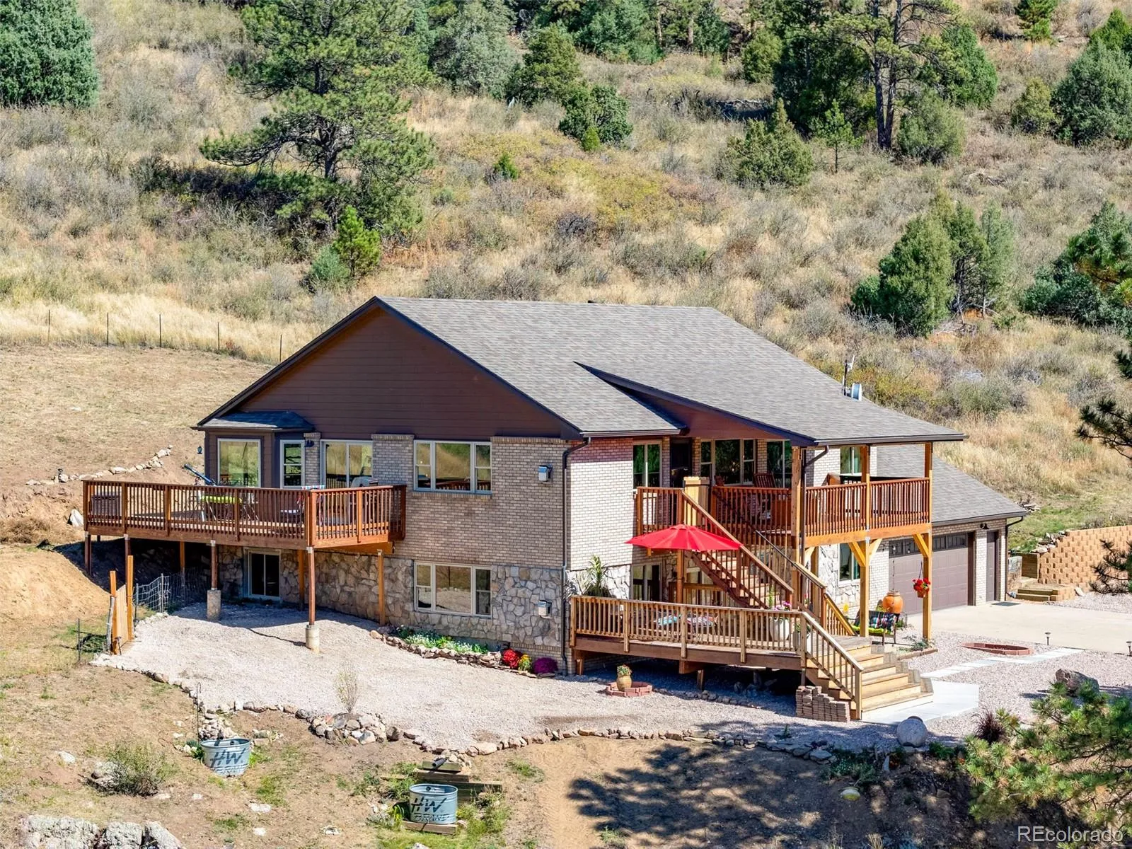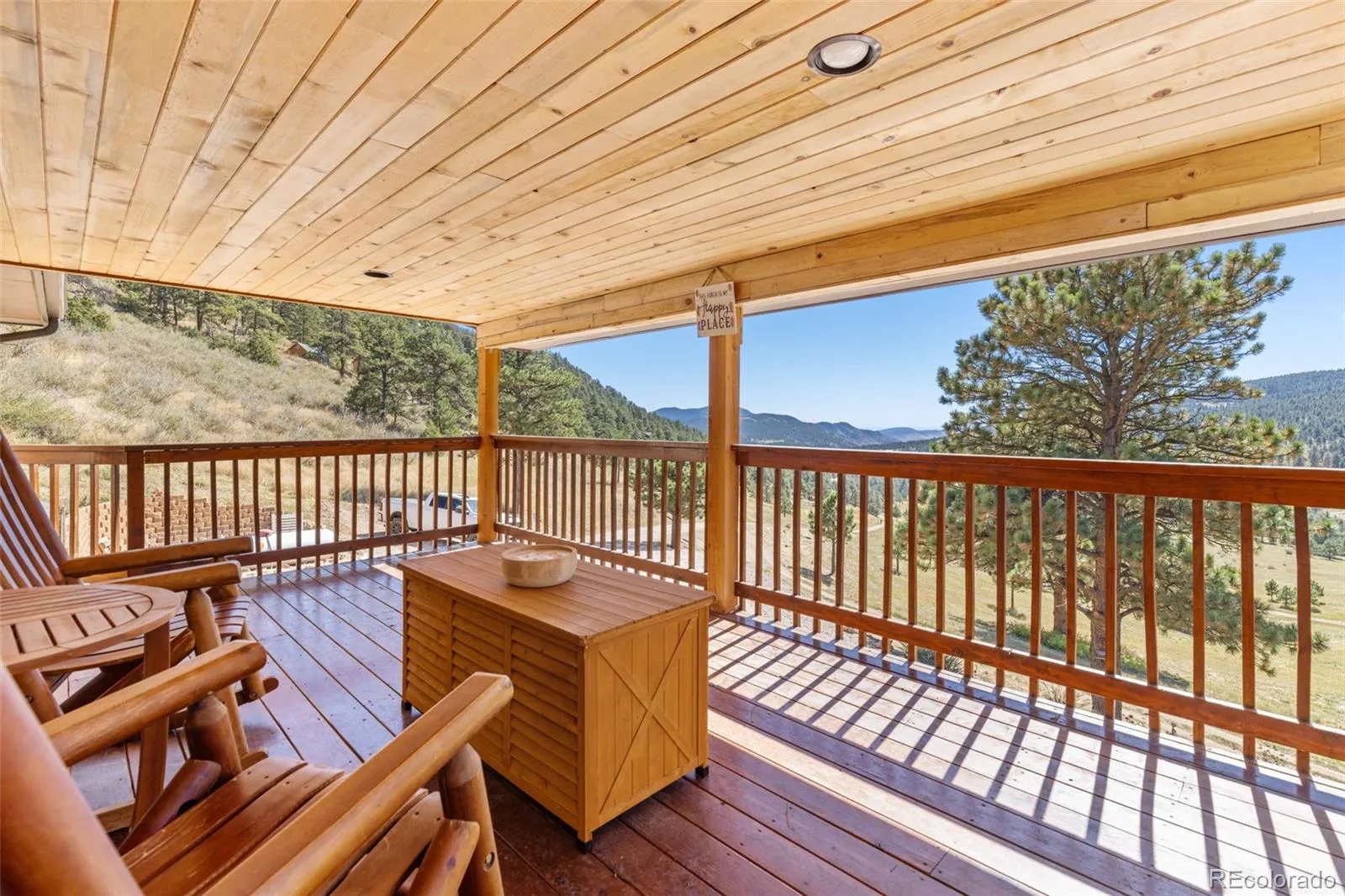 Experience true Colorado living on this 35-acre foothills retreat offering end-of-road privacy, modern updates, and direct access to nature. Located in the Quillan Gulch subdivision just 40 minutes from Downtown Loveland, this beautifully maintained 3,194 sq ft raised ranch combines comfort, functionality, and unmatched scenery. The property borders Roosevelt National Forest on the corner and features a seasonal pond that draws abundant wildlife, including deer, elk, turkey, bear, and bobcat. The home’s thoughtful upgrades are evident throughout, with new solid-core alder doors, white pine trim, newer windows, and real wood Levelor blinds. The kitchen has been tastefully remodeled with stainless steel Whirlpool appliances, quartz countertops, and an Italian-tile backsplash. Multiple wood decks-including a newly redesigned and rebuilt front deck-invite outdoor living, while the covered patio provides the perfect shaded retreat. Additional highlights include a two-car attached garage, whole-house backup generator, and a brand-new roof just installed in the spring of 2025. A 1,200 sq ft outbuilding with solar power offers tremendous versatility, complete with an office and wood stove-ideal for a workshop, studio, or home-based business. The property also features a solar-powered greenhouse for year-round growing. Surrounded by the natural beauty of the Loveland foothills and just minutes from Pinewood, Carter, Flatiron, and the upcoming Chimney Hollow Reservoir, this is the perfect place to enjoy the serenity of the mountains without sacrificing convenience.