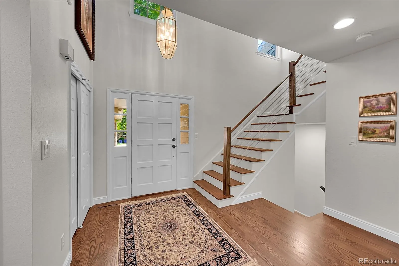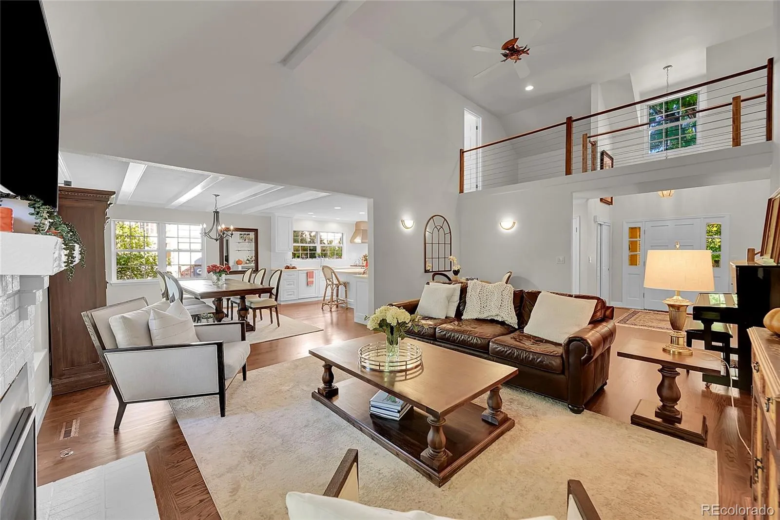 Welcome to this completely renovated and beautifully upgraded home in the serene Homestead Village I community. Spanning 3,804 square feet, this exceptional residence offers 3 spacious bedrooms, 2 full bathrooms, and 1 half bathroom, and is one of only seven units in the neighborhood featuring a main-floor primary suite. From the moment you arrive, the stunning curb appeal sets the tone for the impressive updates inside. The interior is flooded with natural light and designed for both comfort and style, highlighted by the seamless flow between the dining and living rooms, complete with a white brick fireplace and custom decorative beams. The chef’s kitchen boasts new white modern cabinetry, quartz countertops, high-end stainless steel appliances, a built-in Miele coffee machine, and a wine cooler. The main-level primary suite offers a spacious retreat with a fully updated en-suite bathroom featuring dual modern vanities, stylish tile, stackable washer and dryer, and a generous walk-in closet. Upstairs, you’ll find two large bedrooms, one with private deck access and dual walk-in closets, along with a fully upgraded bathroom with a modern vanity, tiled shower, and tub. The full basement provides a finished flex space perfect for an office, additional storage, and room to expand as needed. Outdoor living is equally inviting with access to the community walking path from both the primary suite and dining room. Additional highlights include a two-car garage, new hardwood floors throughout (including stairs), new stair railing, fresh interior paint, and a new AC compressor (2024). The HOA covers exterior painting and siding, roof repairs, gutter cleaning, snow and leaf removal, lawn care, trash and recycling, tree and shrub maintenance, plus access to the clubhouse and pool. Social events, including weekly summer happy hours with food trucks, make this a vibrant and welcoming neighborhood. Enjoy a low-maintenance, lock-and-leave lifestyle in this one-of-a-kind home.