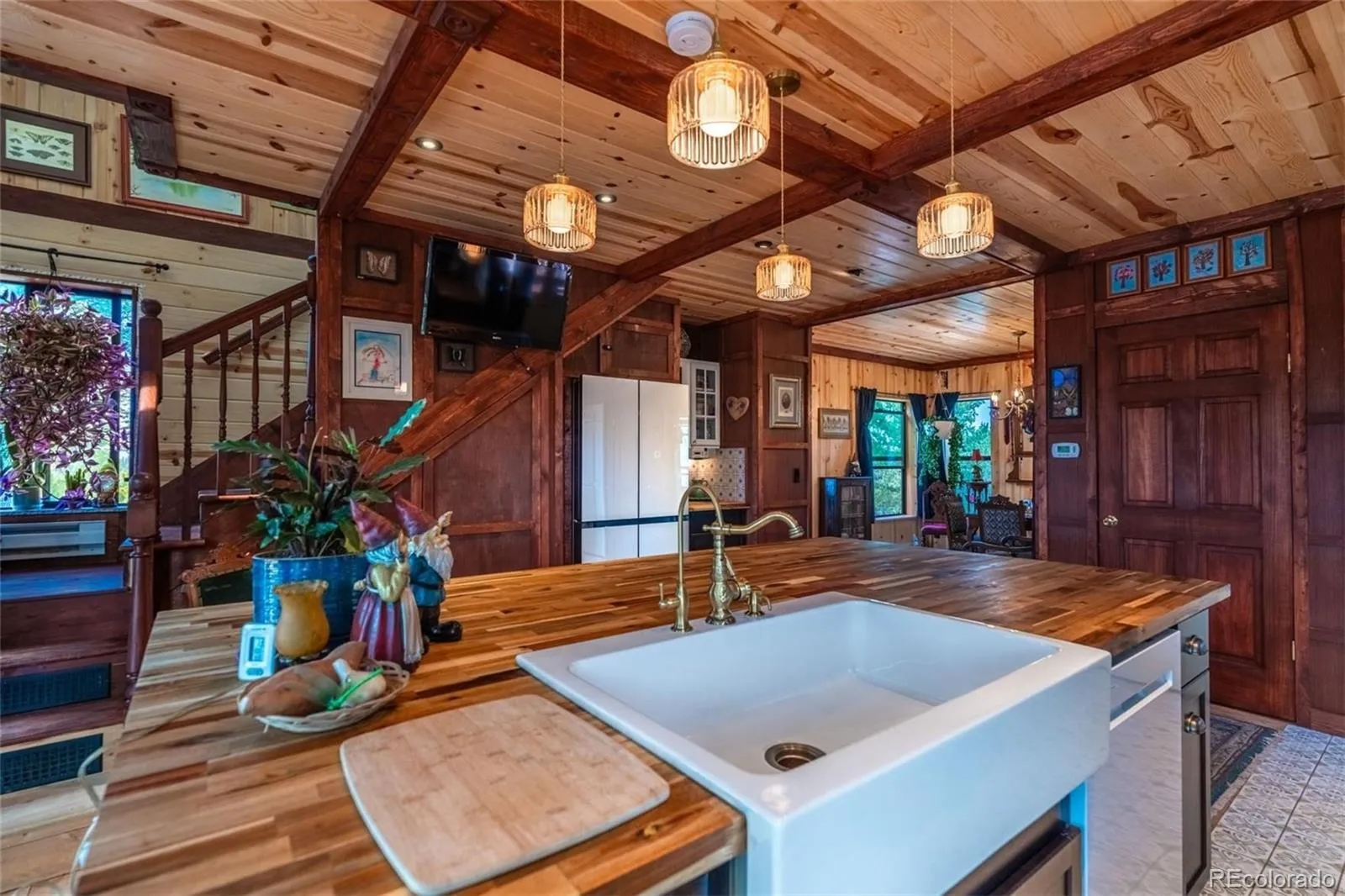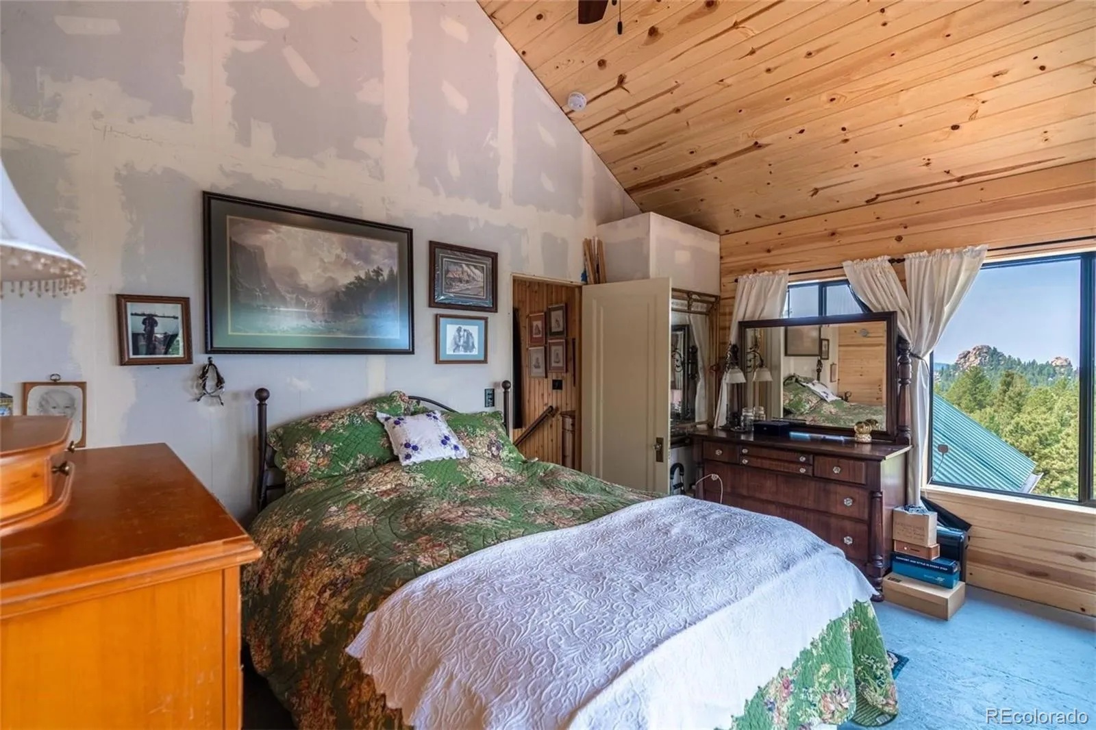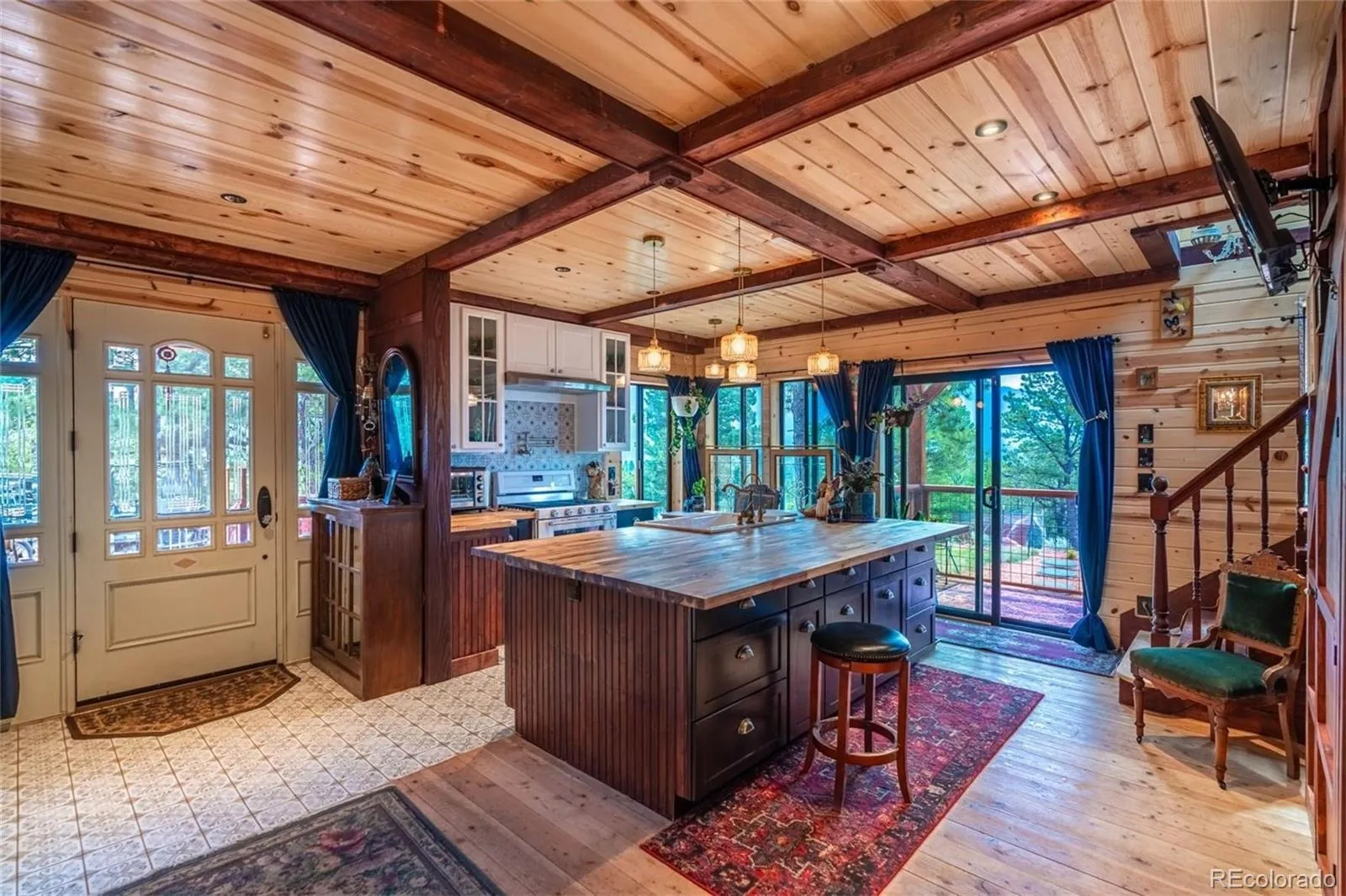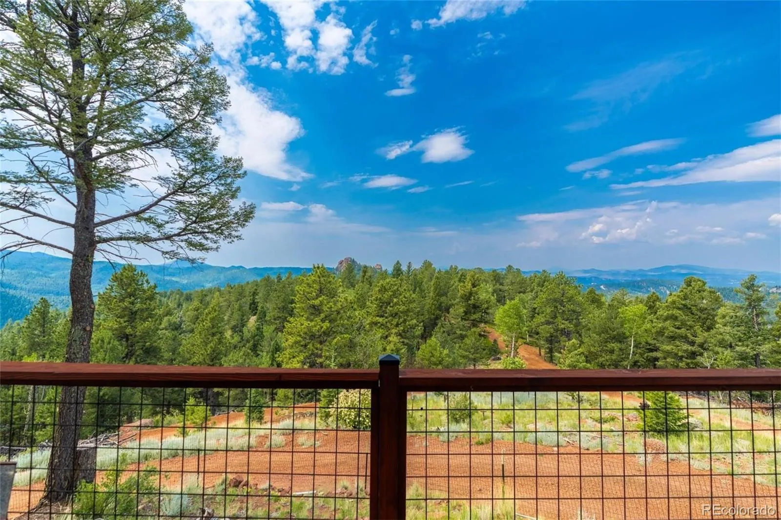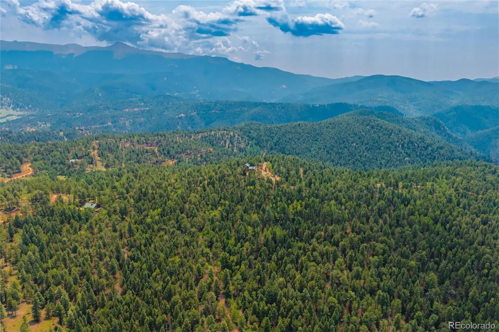 If you’re looking for a one-of-a-kind property with privacy, this is it! It is not 100% finished, but it only requires a few minor adjustments to be completed. This custom-built cabin is here to live in while you build your dream home! YES! You can have 2 homes on this property! Walking up to the spacious front porch, you may be greeted by a deer or 2. The living room features vaulted ceilings and floor-to-ceiling windows that open out to a large deck with an exceptional view to the west of the Sangre de Cristos. The large kitchen features a 98 x 58-inch island, a farm sink, a KitchenAid dual five-burner range, a pot filler, high-performance Italian-style tile, butcher block counters, a pantry, and ample storage. A coffee station, too! This walks out to a deck with views of Mount Pisgah. The main level features a large dining room and bathroom with a lovely claw-foot tub. On the upper level, you will find the vaulted master bedroom with a private deck and the second bedroom (no closet) with a private deck, both with beautiful views. There is also a full bathroom on the upper level with a walk-in shower. All closets are cedar-lined. A beautiful soapstone wood burner can heat a space of up to 2000 sq. ft., a tankless water heater, and a fully heated mechanical room in the basement, with ample space for all your treasures. The property itself is 40 pristine acres with stunning 360-degree views of Pikes Peak and much more. The entire southern boundary borders the Dome Wilderness area, where wildlife is abundant and surrounded by many beautiful trees and wildflowers. There is a perfect building site for a future home that has undergone a soil test. Four outside sheds to store all your belongings. These 40 acres are not a part of the Woodrock subdivision, so there are no covenants to restrict your needs. The possibilities to turn this into your dream are endless! All this and so much more!